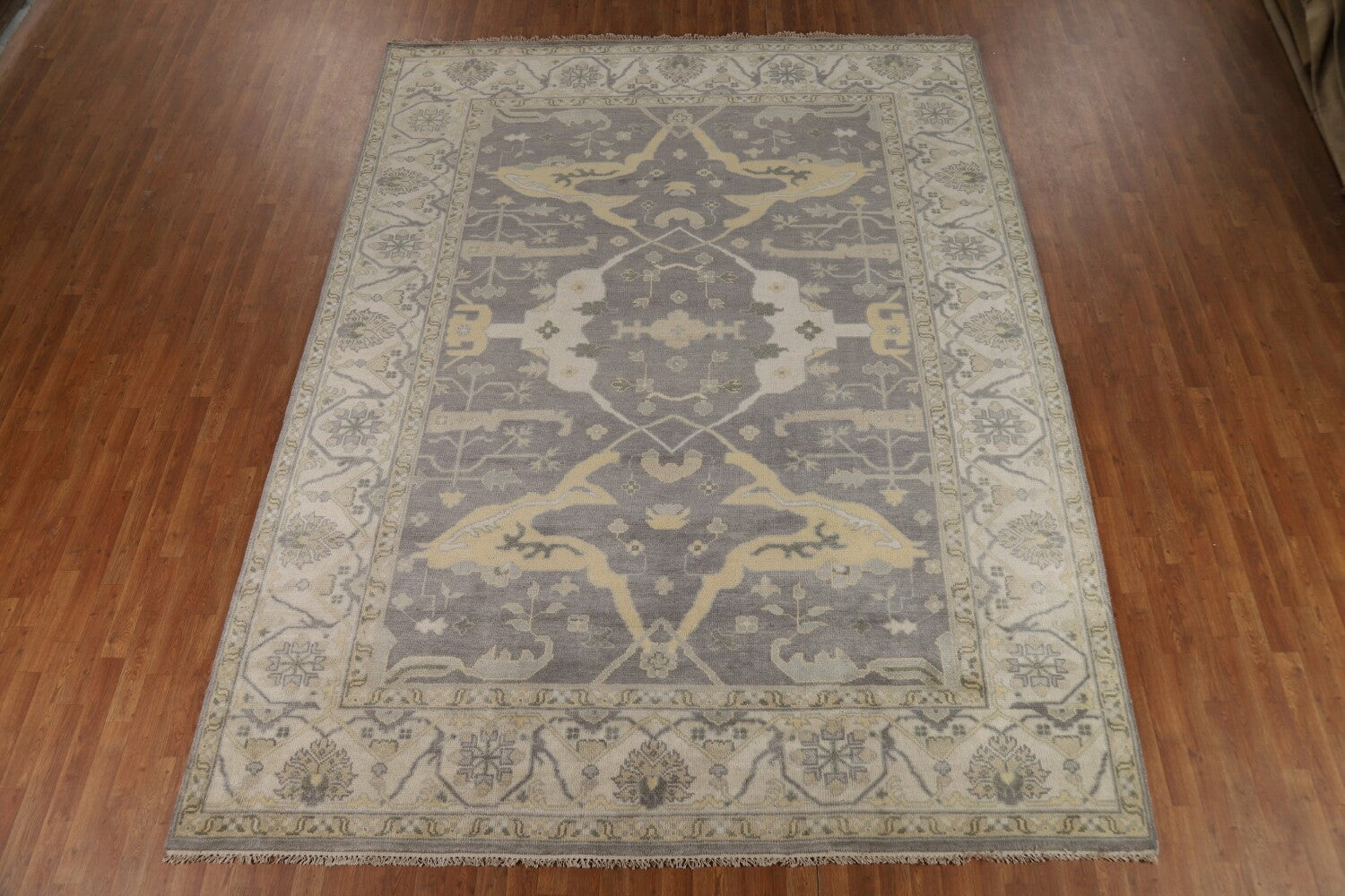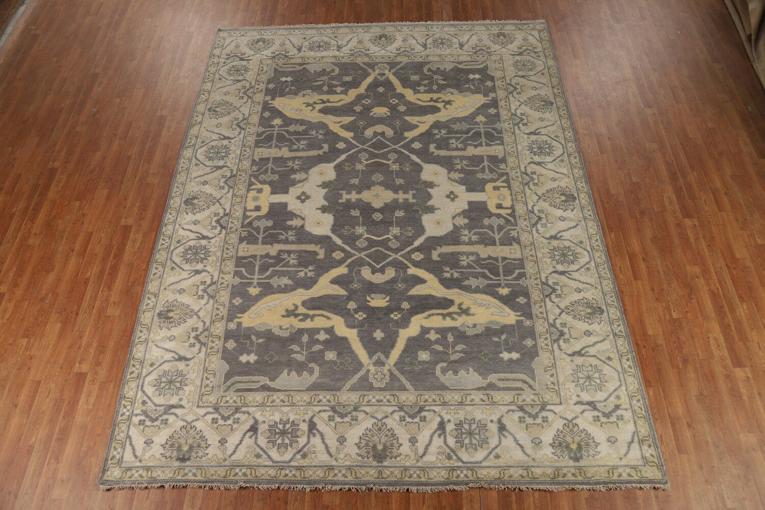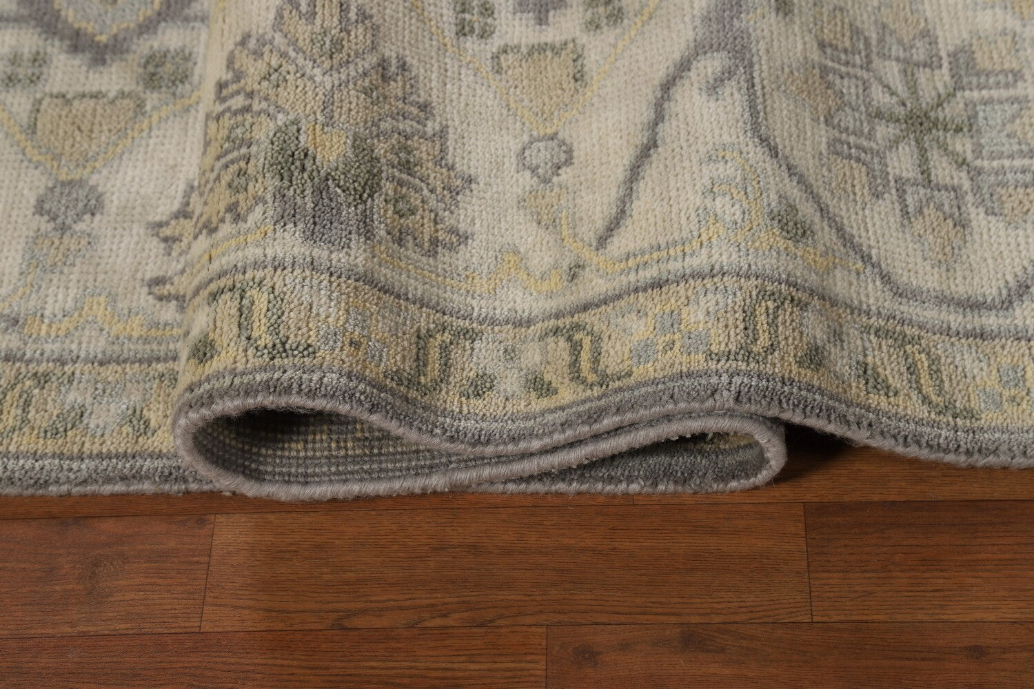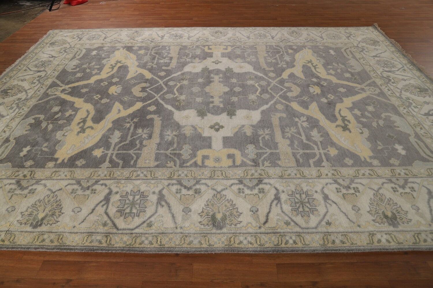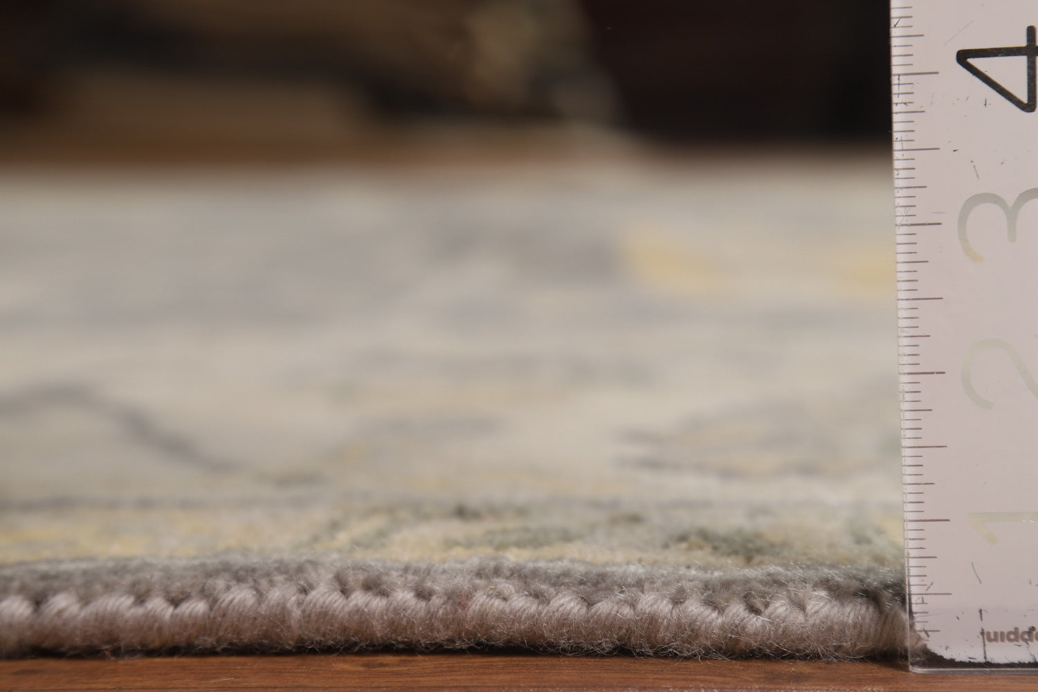A Beautiful Genuine India Oushak rug is Hand Knotted by skillful weavers in India with 100% Wool Material. This rug is in New, First Quality condition. dimensions are 11' 10'' X 9' 1'' in foot and 361 X 277 in centimeter. the primary color is Greys & Charcoal.