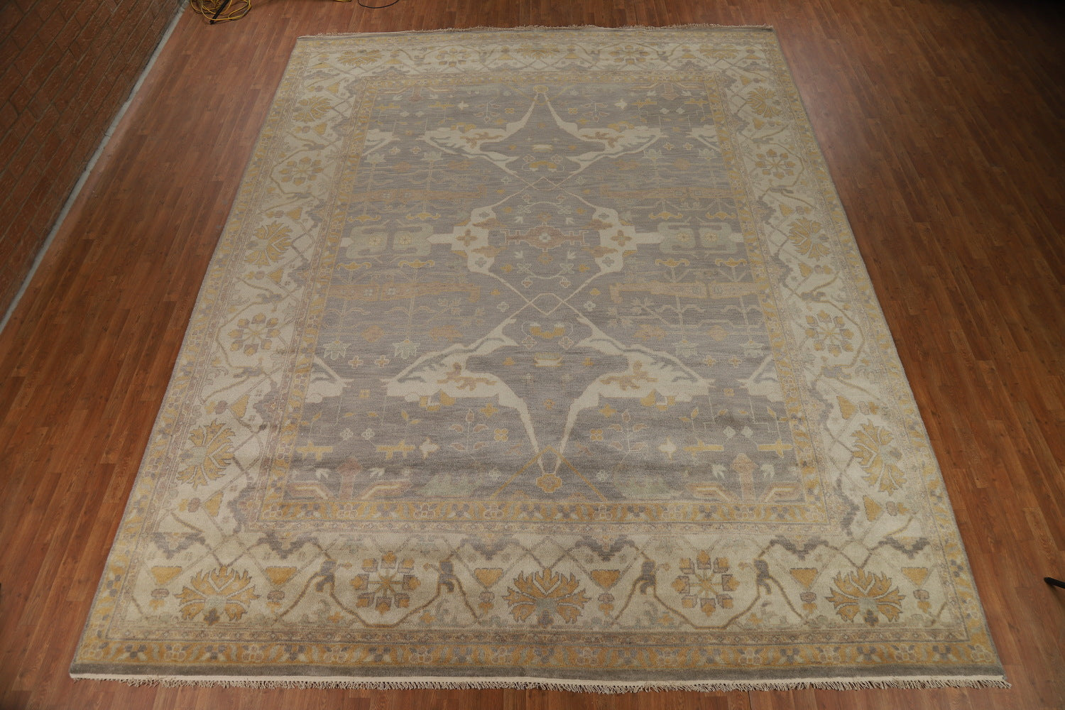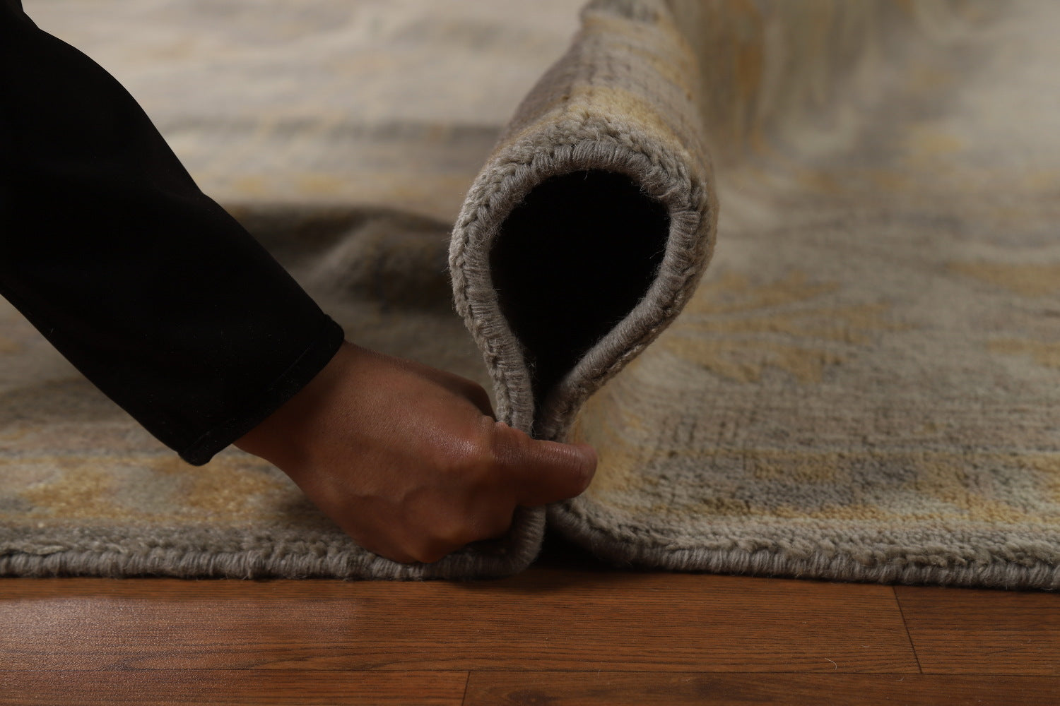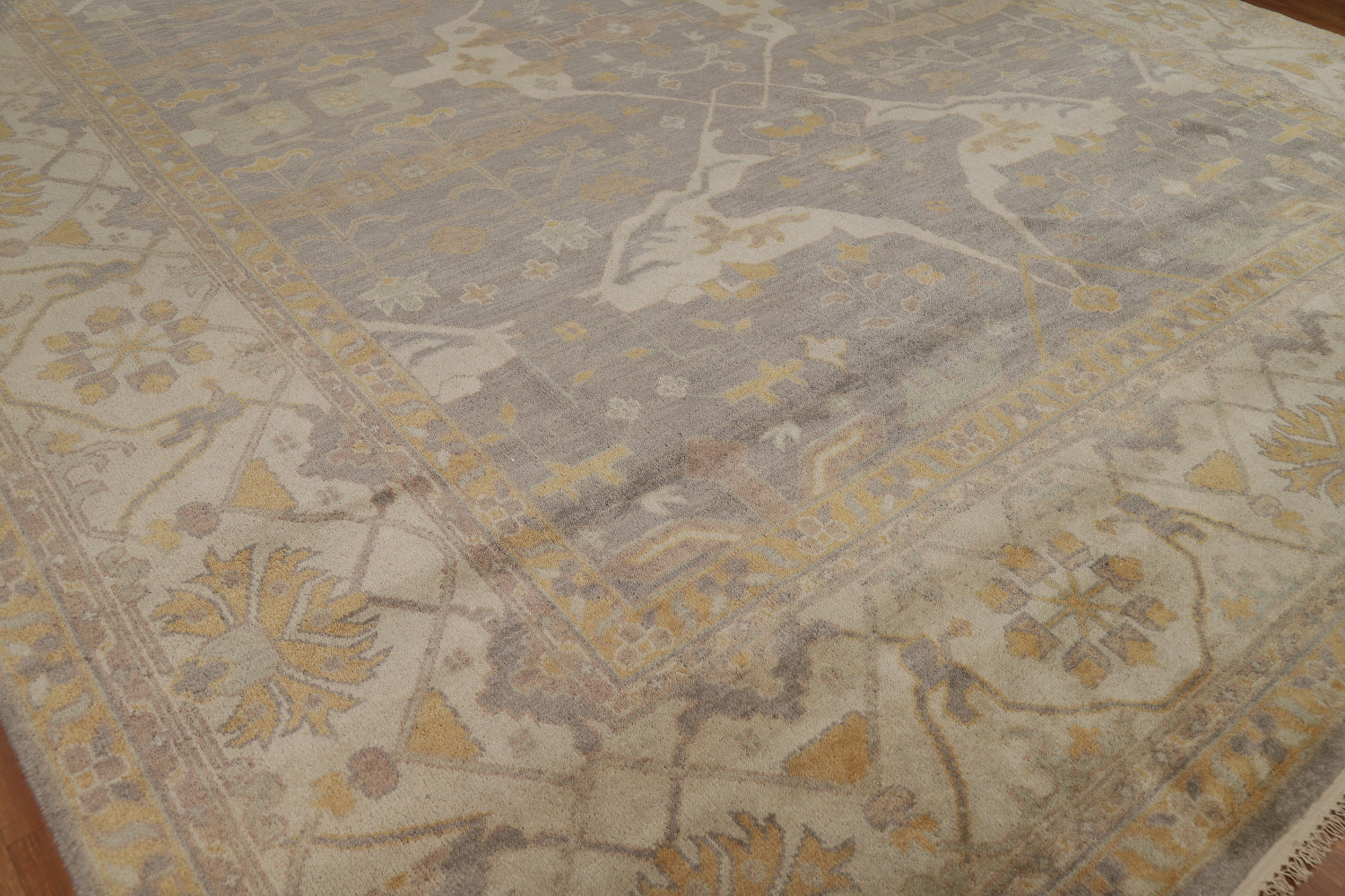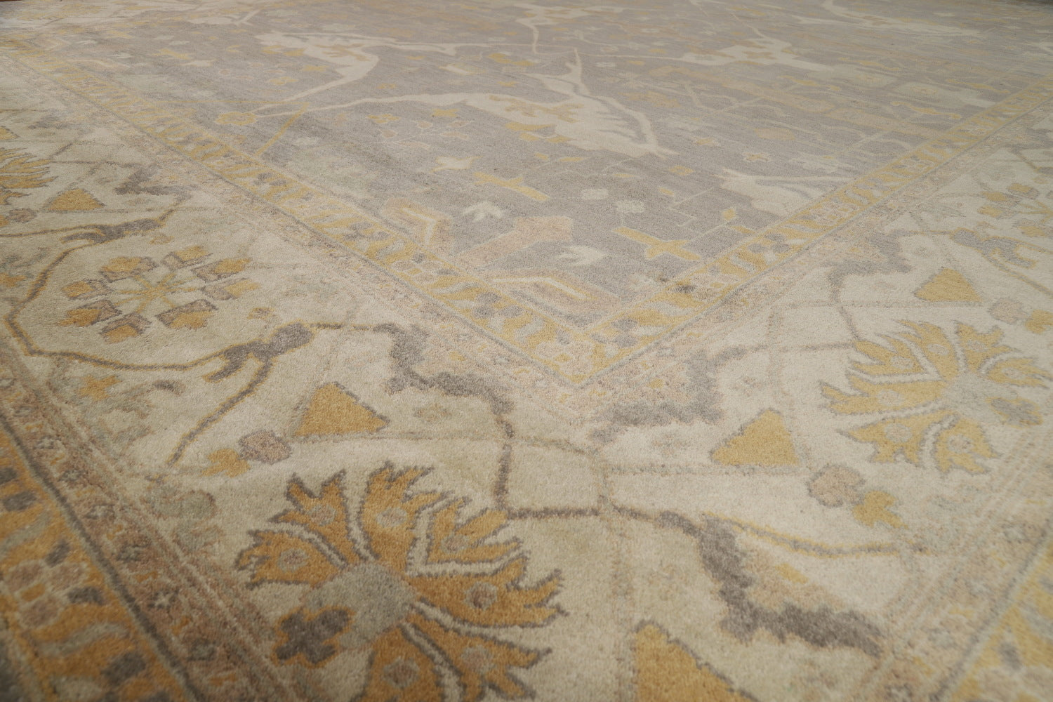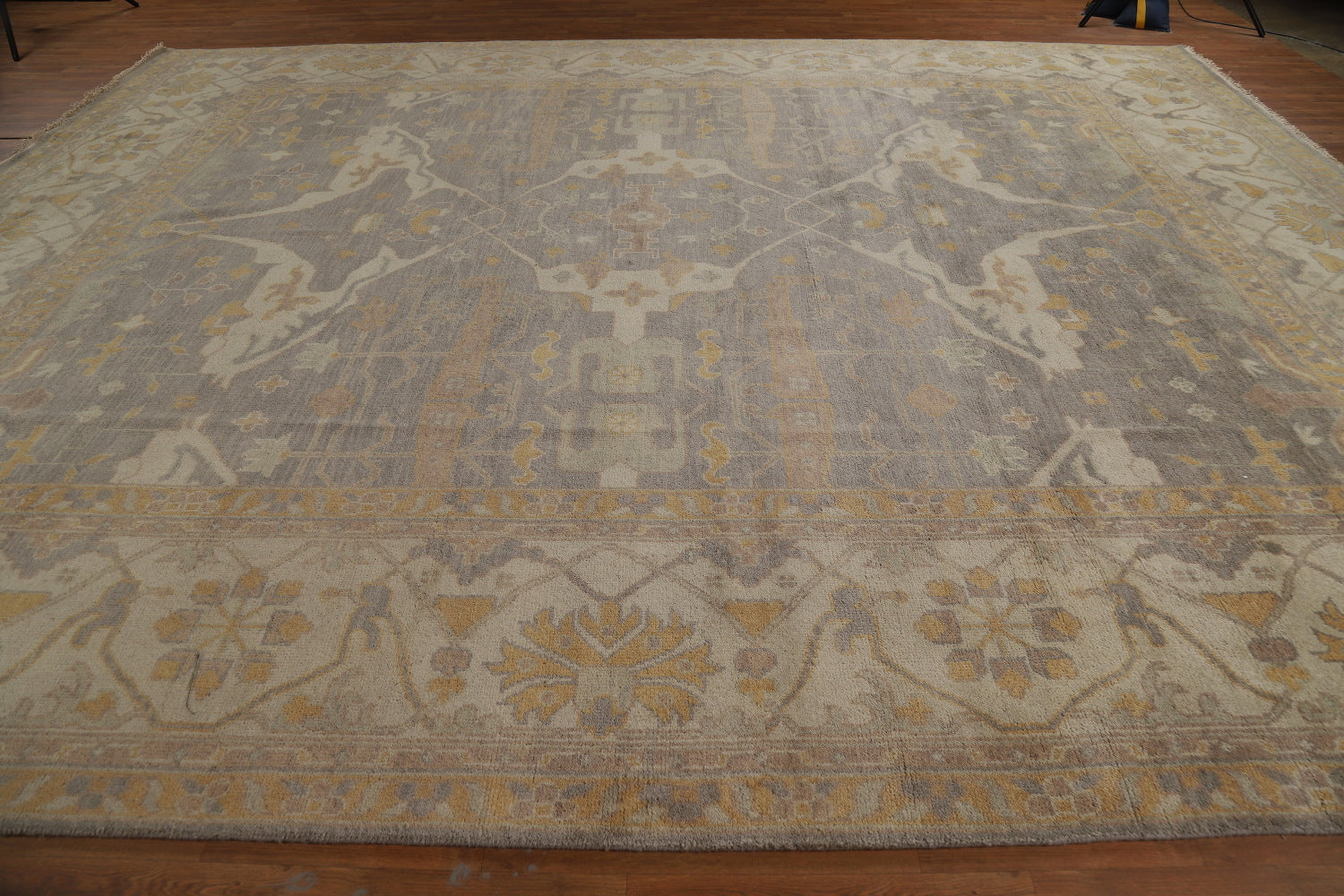 A Beautiful Genuine India Oushak rug is Hand Knotted by skillful weavers in India with 100% Wool Material. This rug is in New, First Quality condition. dimensions are 15' 1'' X 12' 0'' in foot and 460 X 366 in centimeter. the primary color is Greys & Charcoal.