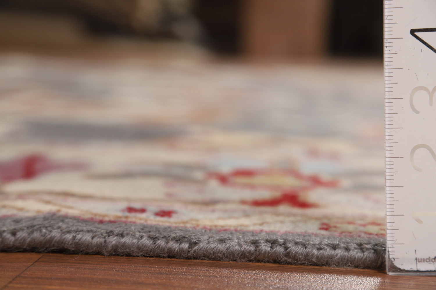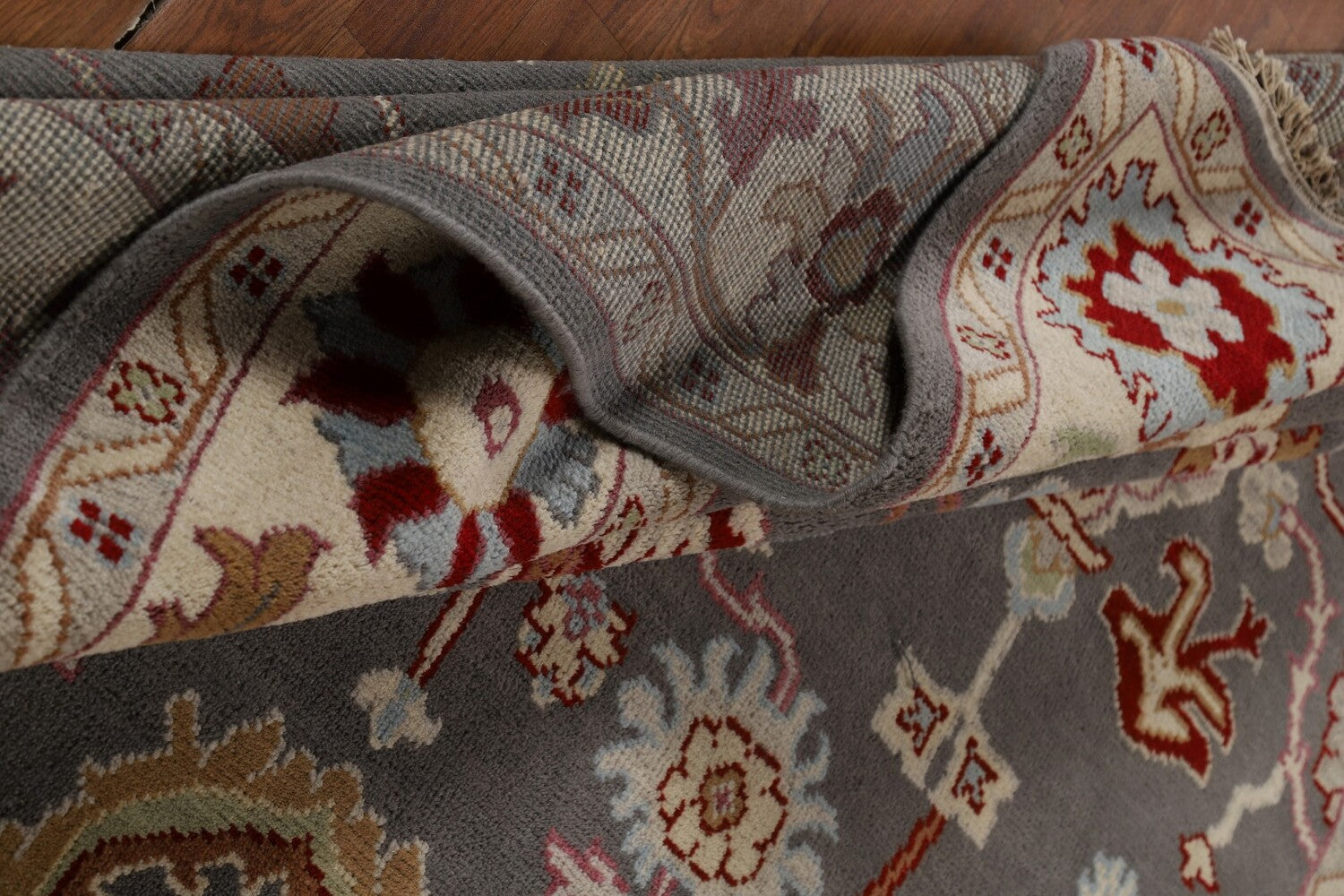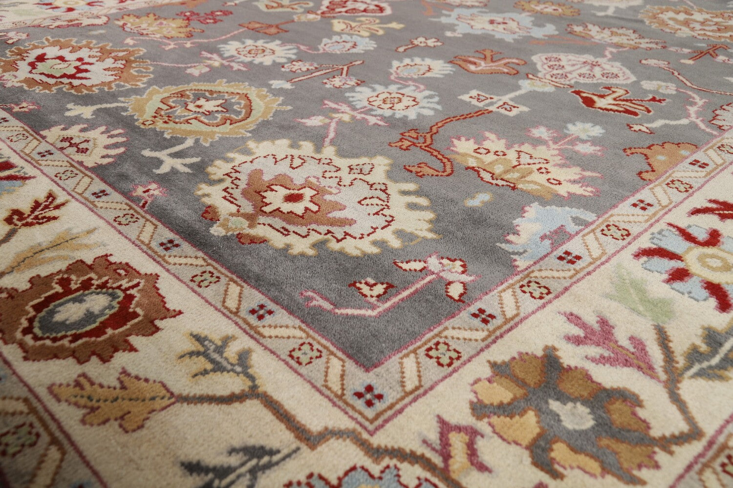 A Beautiful Genuine India Oushak rug is Hand Knotted by skillful weavers in India with 100% Wool Material. This rug is in New, First Quality condition. dimensions are 9' 9'' X 8' 0'' in foot and 297 X 244 in centimeter. the primary color is Greys & Charcoal.