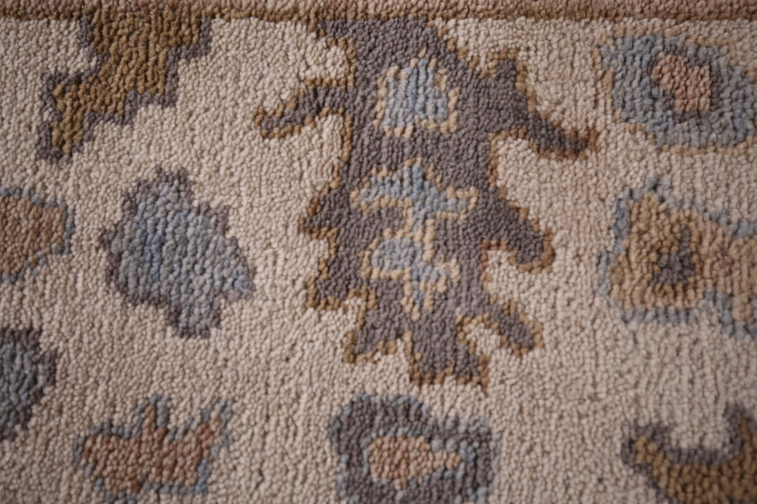 A Beautiful Genuine India Oushak rug is Hand Knotted by skillful weavers in India with 100% Wool Material. This rug is in New, First Quality condition. dimensions are 11' 9'' X 9' 2'' in foot and 358 X 279 in centimeter. the primary color is Greys & Charcoal.
