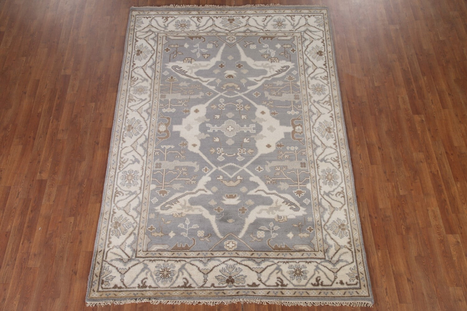 Handmade Gray Oushak Wool Area Rug 6x9