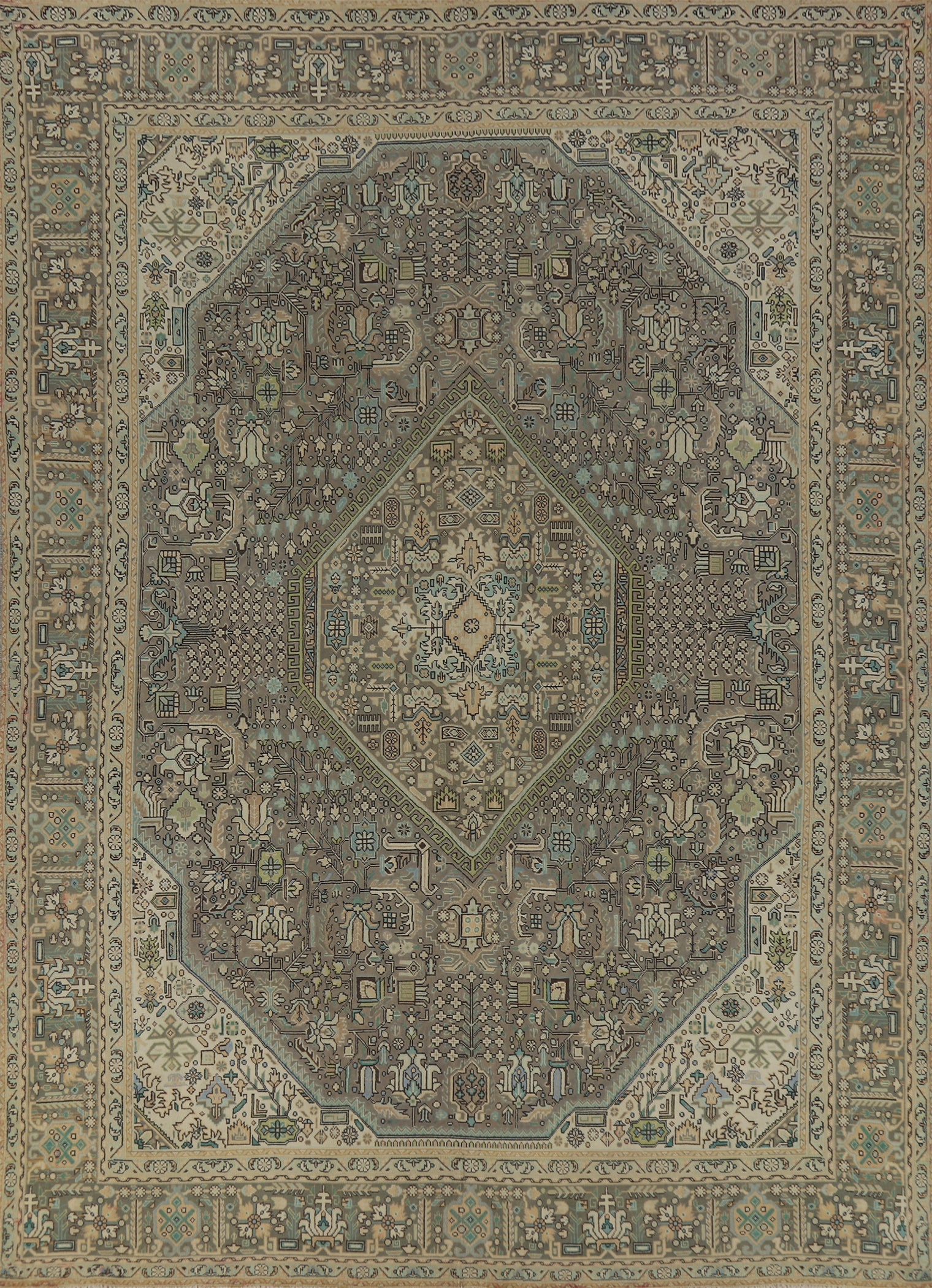 Handmade Gray Tabriz Persian Area Rug 10x13