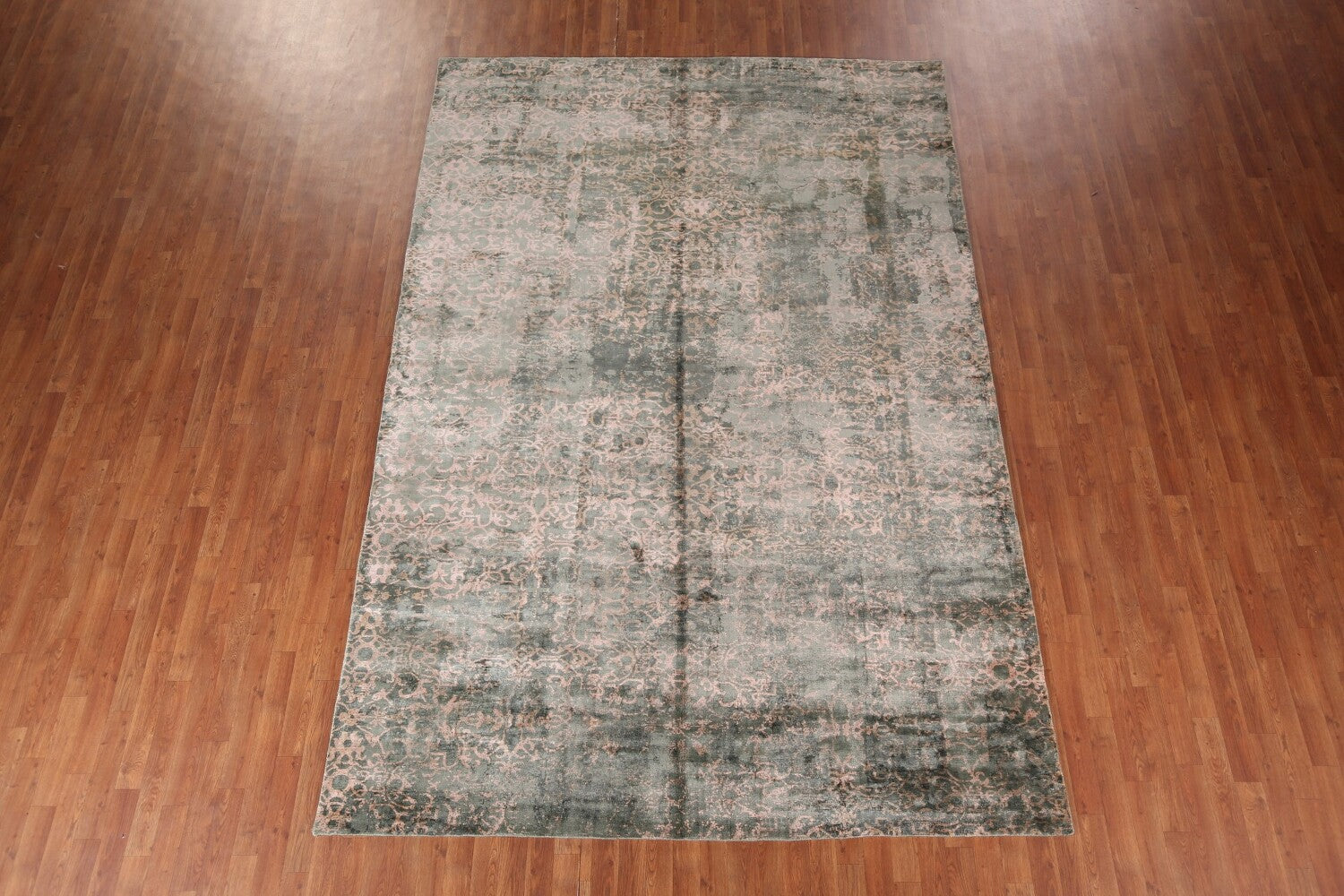 A Beautiful Genuine India Abstract rug is Hand Knotted by skillful weavers in India with 100% Wool Material. This rug is in New, First Quality condition. dimensions are 11' 5'' X 7' 8'' in foot and 348 X 234 in centimeter. the primary color is Green.