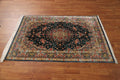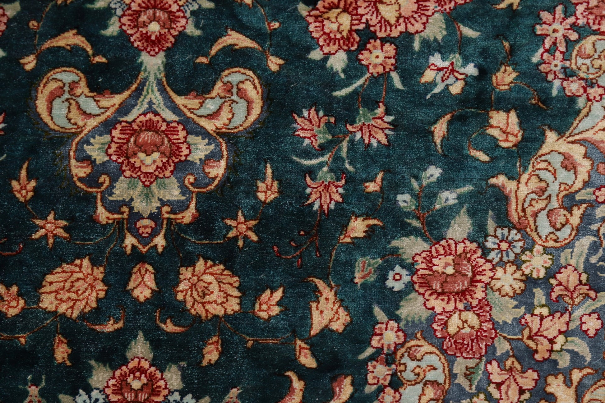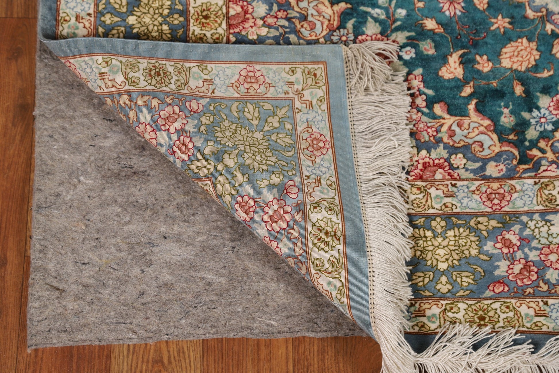 Handmade Green Floral Silk Qum Persian Rug 3x5