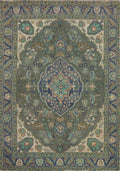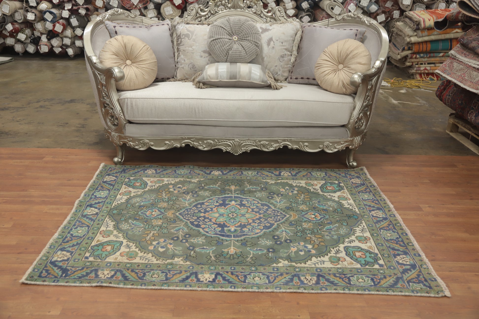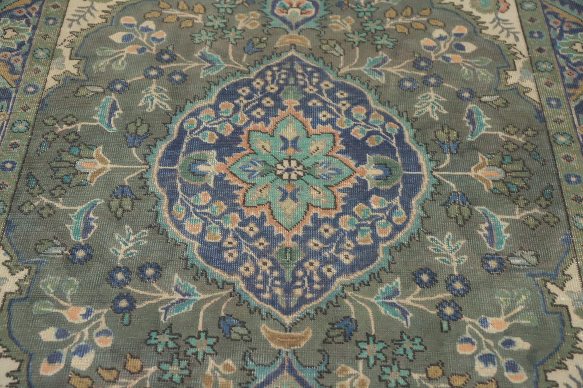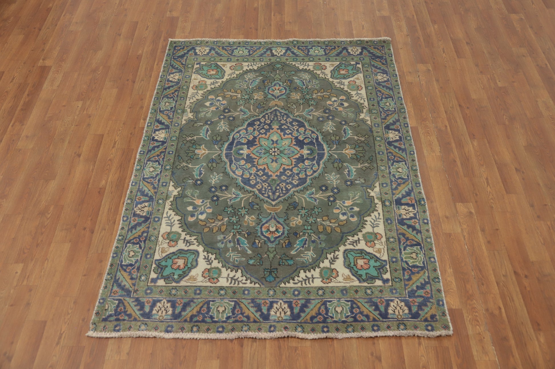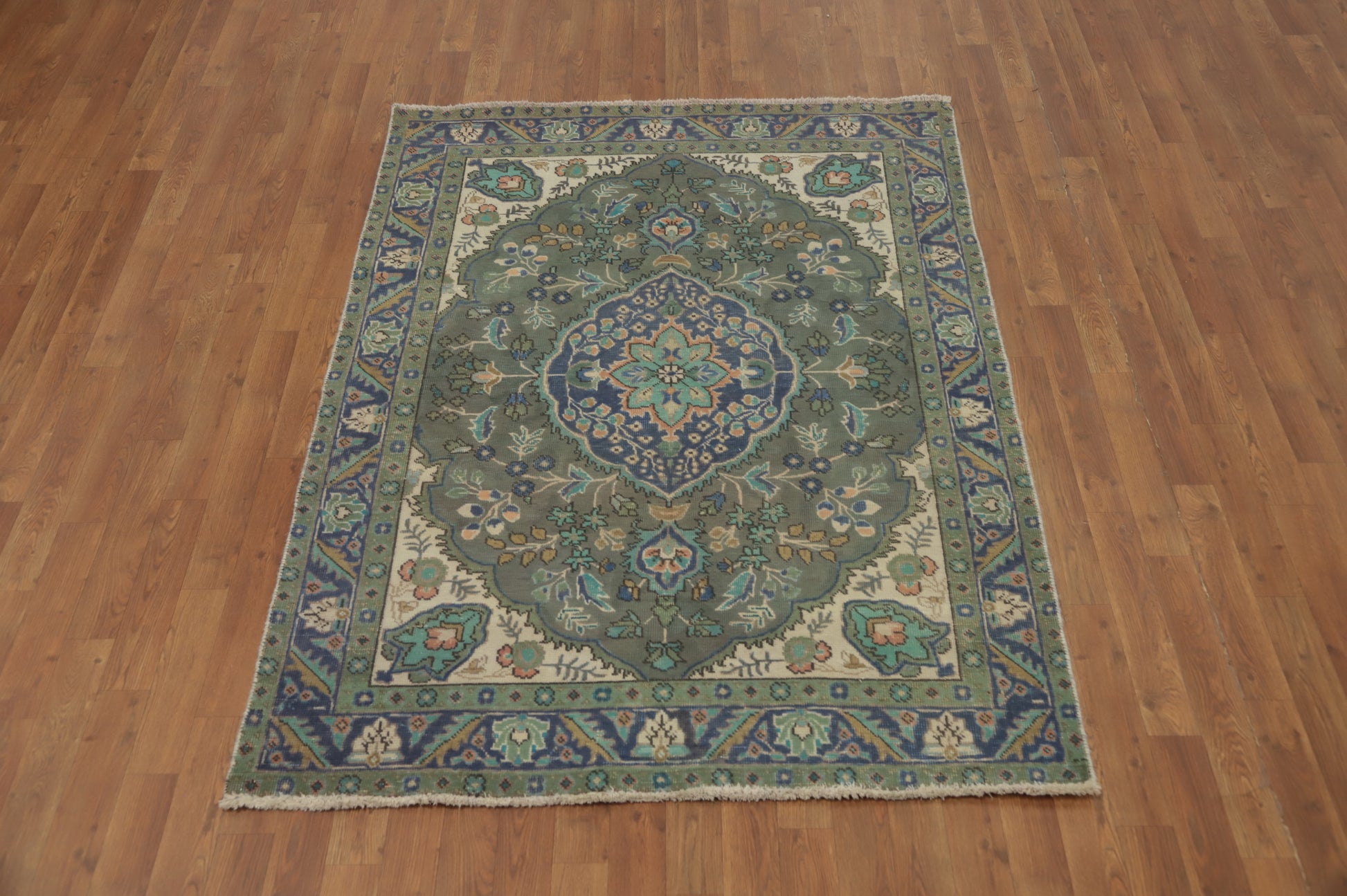 Handmade Green Floral Tabriz Persian Rug 5x6
