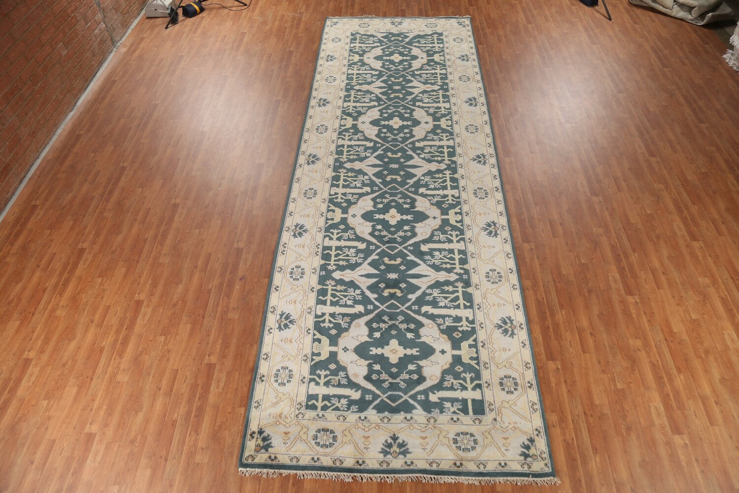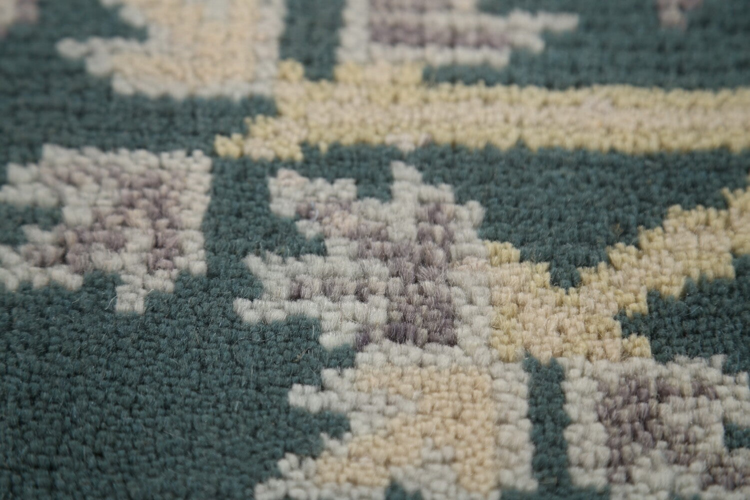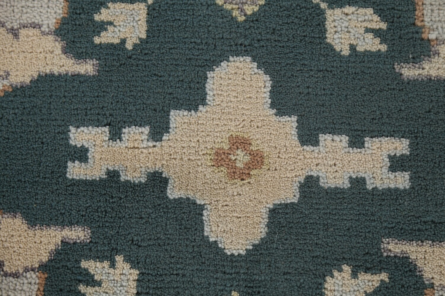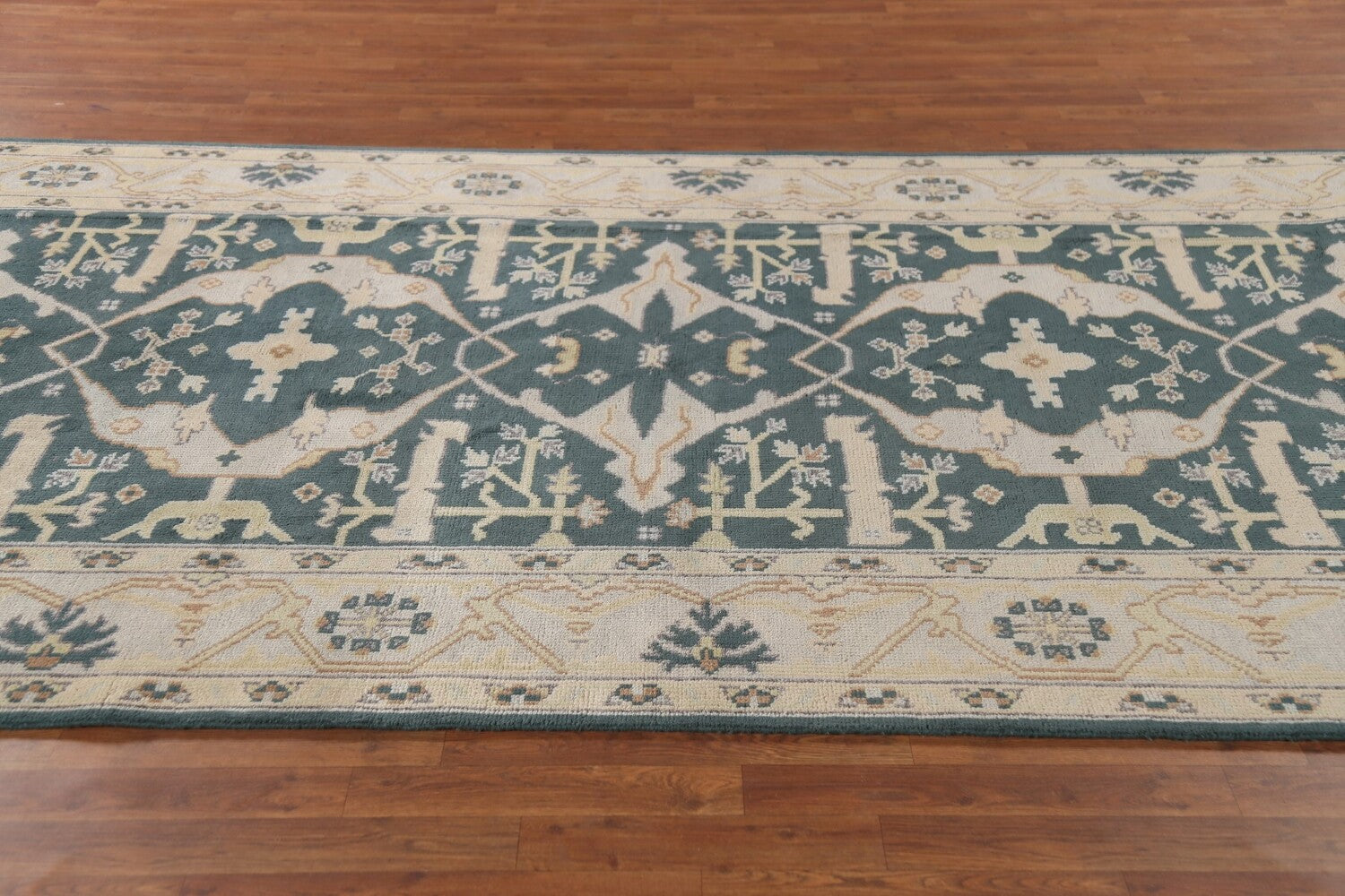 A Beautiful Genuine India Oushak rug is Hand Knotted by skillful weavers in India with 100% Wool Material. This rug is in New, First Quality condition. dimensions are 17' 9'' X 6' 0'' in foot and 541 X 183 in centimeter. the primary color is Green.