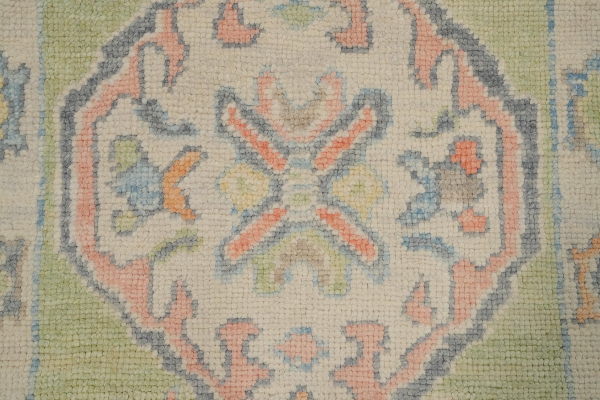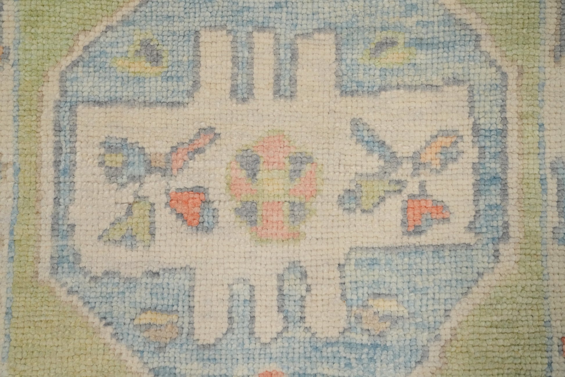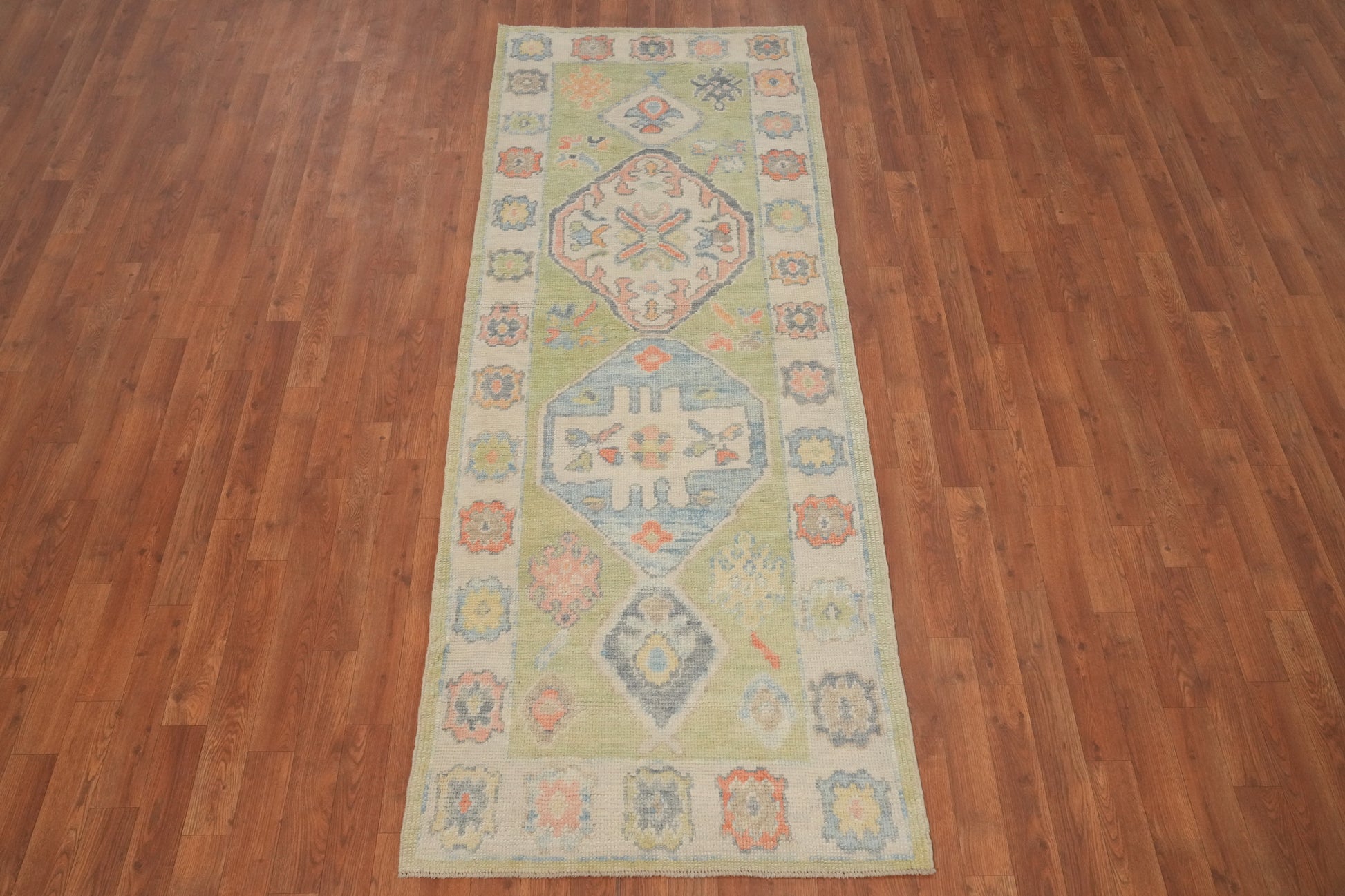 Handmade Green Oushak Vegetable Dye Runner Rug 3x8