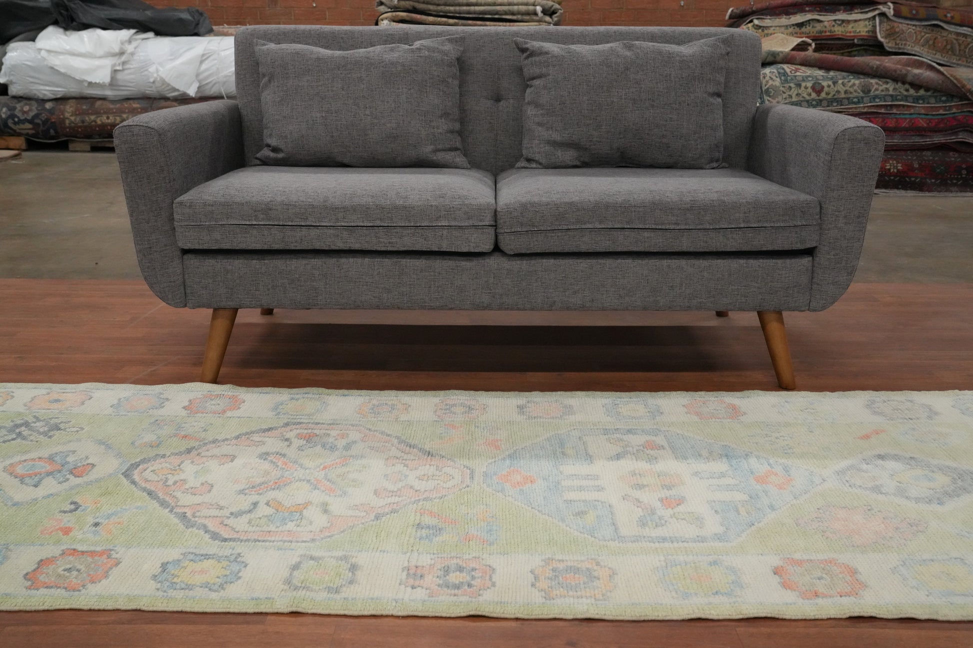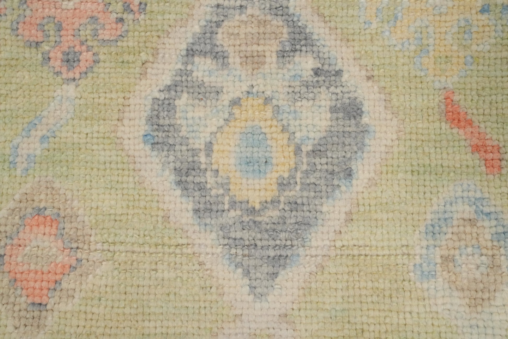 A Beautiful Genuine Turkey Oushak rug is Hand Knotted by skillful weavers in Turkey with 100% Wool Material. This rug is in New, First Quality condition. dimensions are 7' 11'' X 3' 0'' in foot and 241 X 91 in centimeter. the primary color is Green.