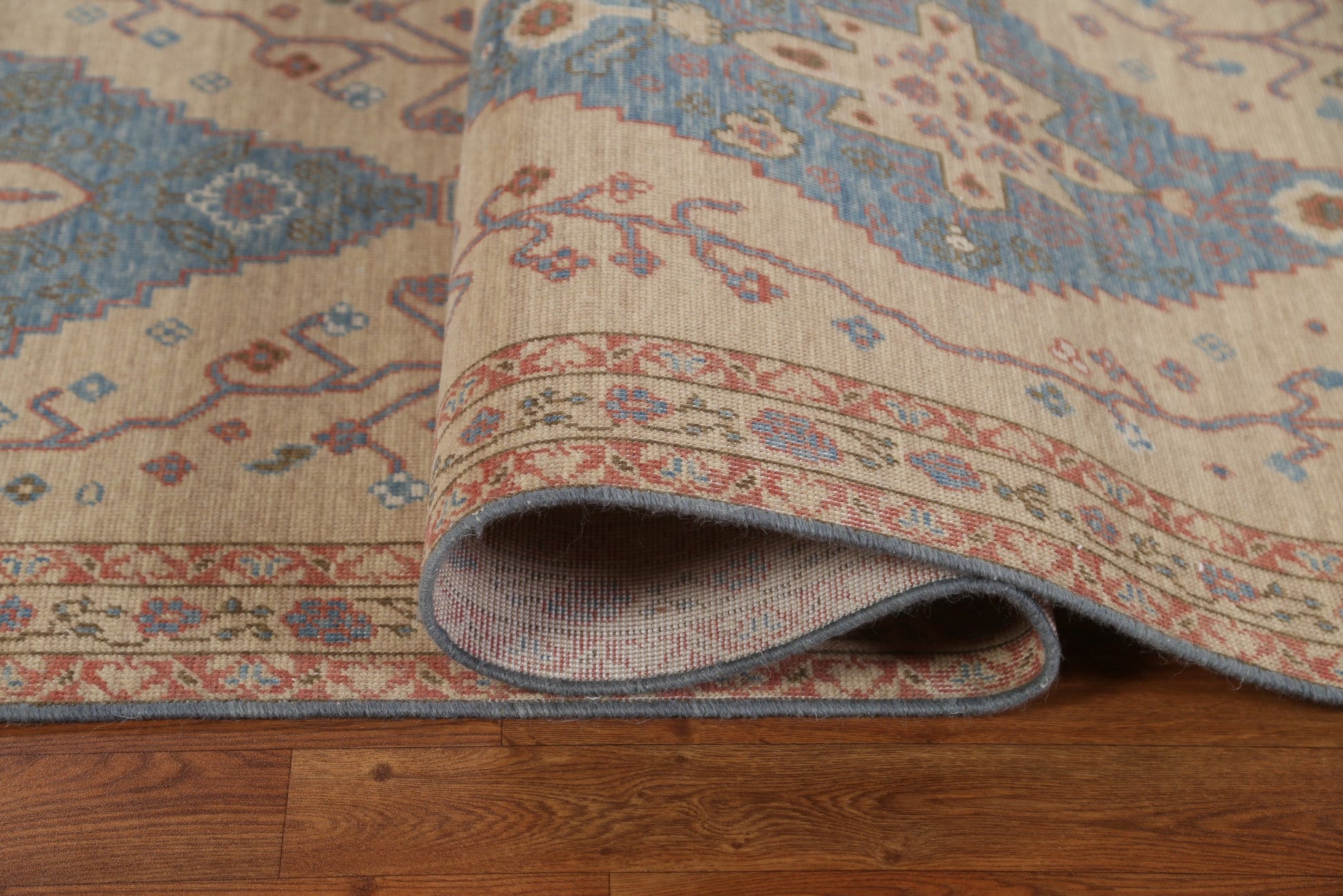 A Beautiful Genuine Turkey Heriz (serapi) rug is Hand Knotted by skillful weavers in Turkey with 100% Wool Material. This rug is in New, First Quality condition. dimensions are 9' 9'' X 2' 11'' in foot and 297 X 89 in centimeter. the primary color is Beige & Ivories.