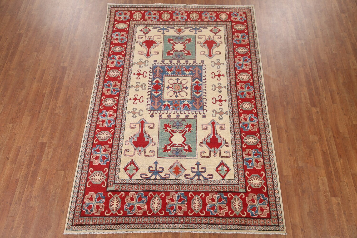 Handmade Ivory Kazak Wool Area Rug 7x10
