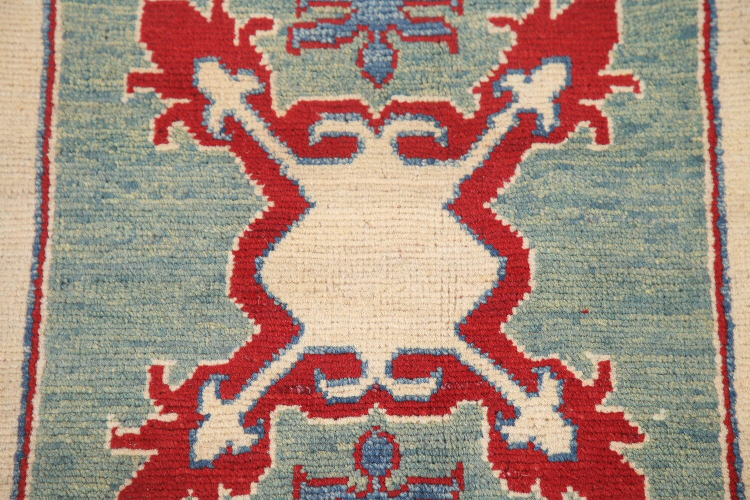 A Beautiful Genuine Pakistan Kazak rug is Hand Knotted by skillful weavers in Pakistan with 100% Wool Material. This rug is in New, First Quality condition. dimensions are 9' 8'' X 6' 6'' in foot and 295 X 198 in centimeter. the primary color is Beige & Ivories.