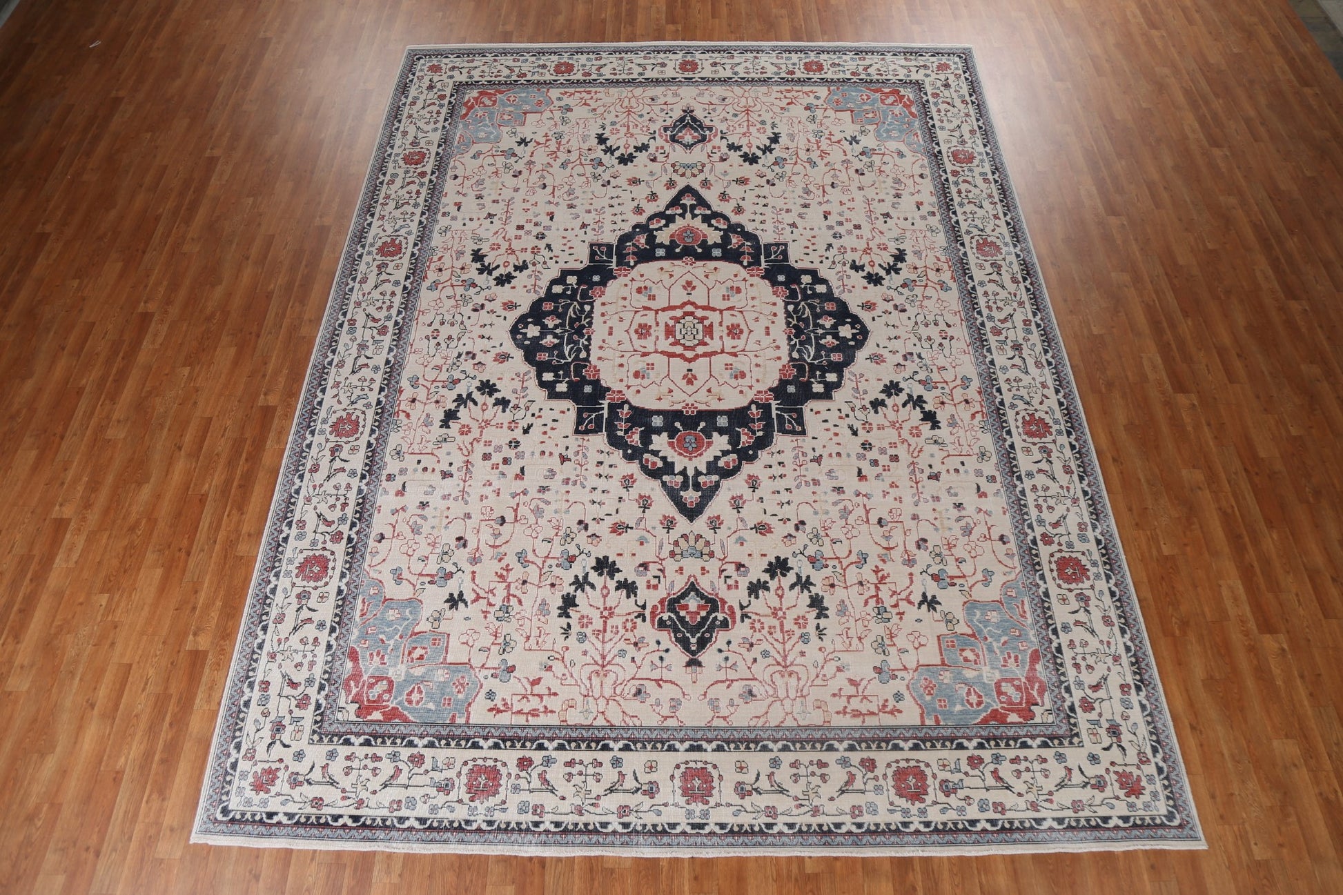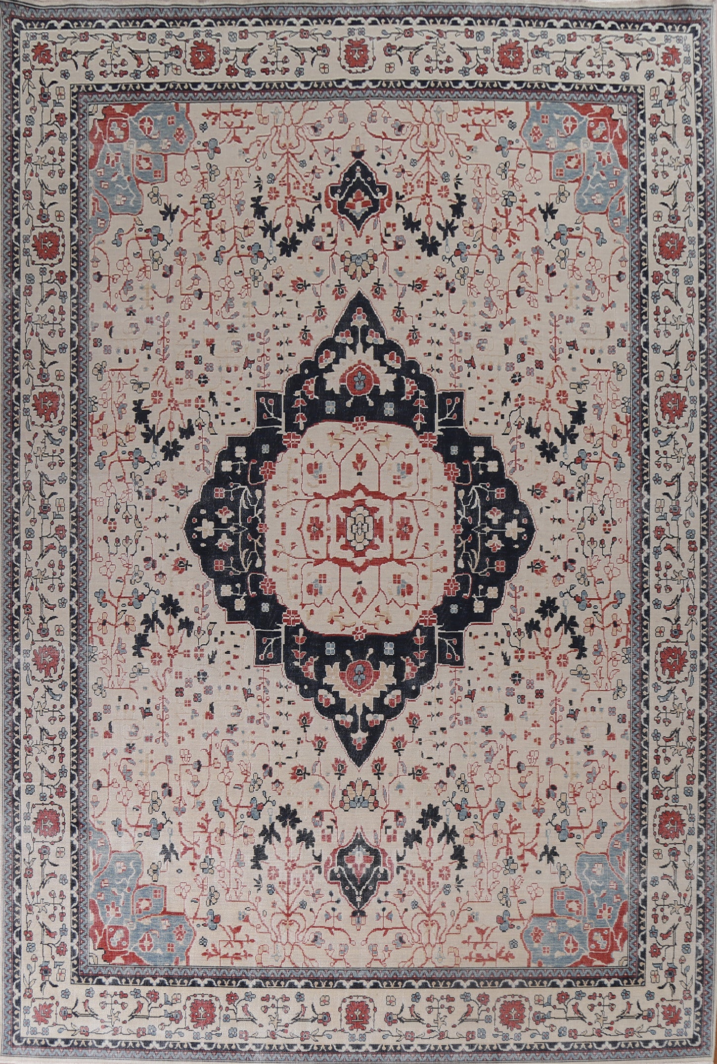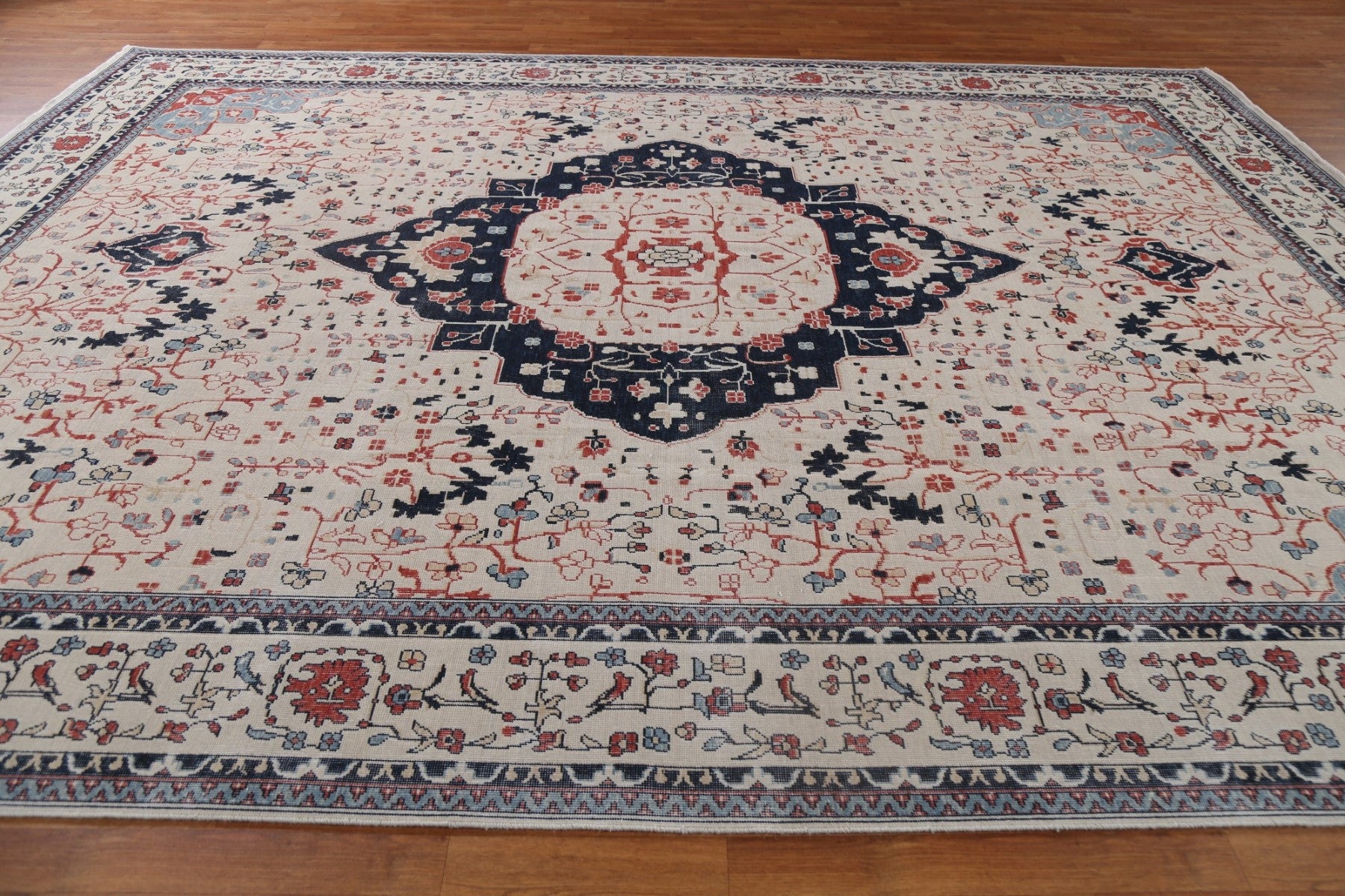 A Beautiful Genuine Turkey Kashan (Mohtasham) rug is Hand Knotted by skillful weavers in Turkey with 100% Wool Material. This rug is in New, First Quality condition. dimensions are 12' 9'' X 9' 10'' in foot and 389 X 300 in centimeter. the primary color is Beige & Ivories.
