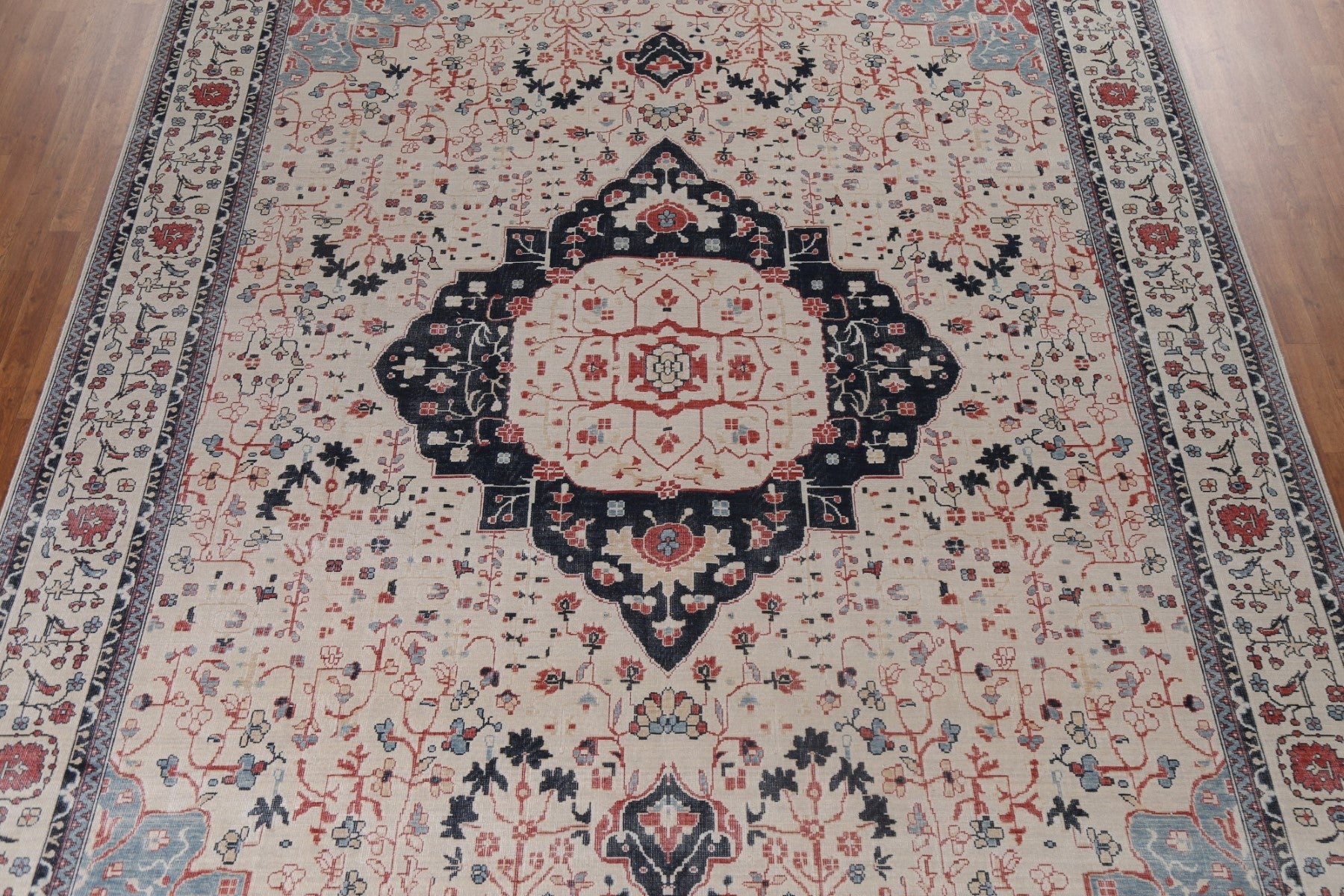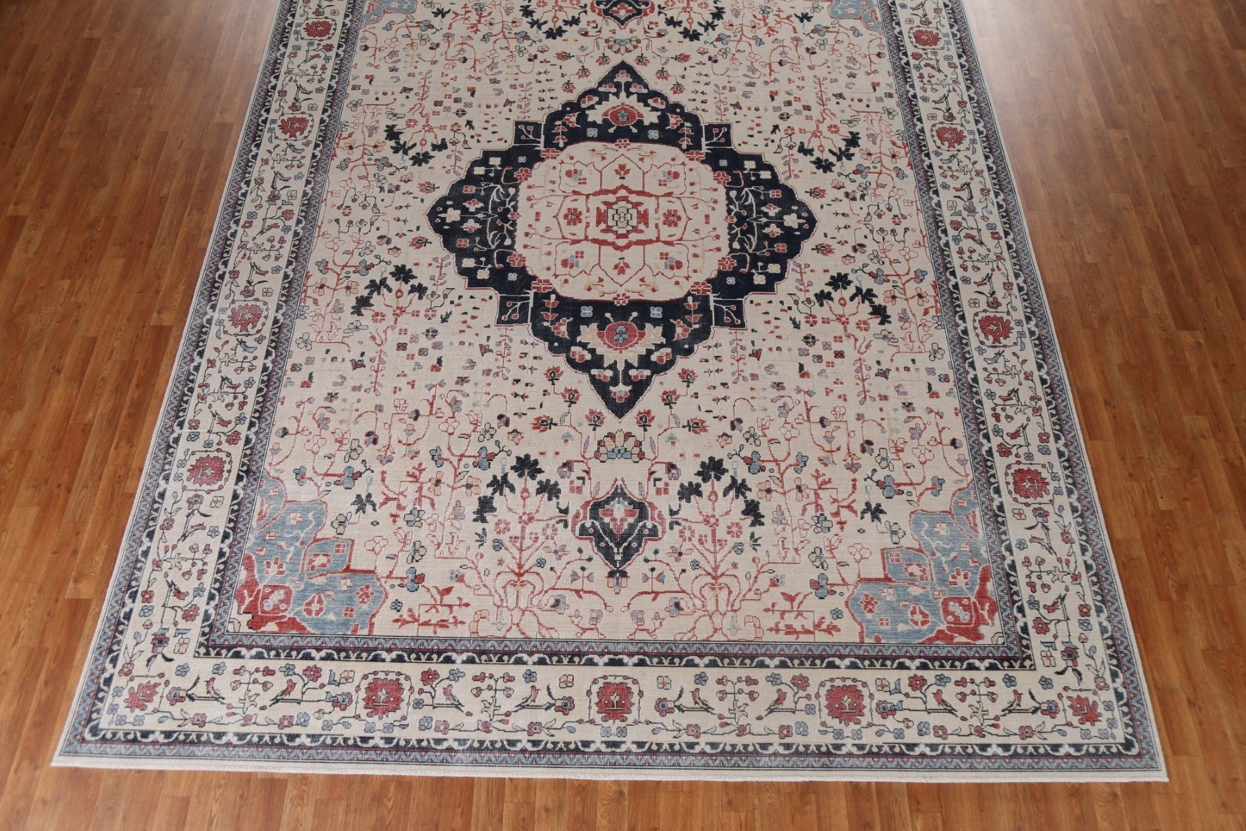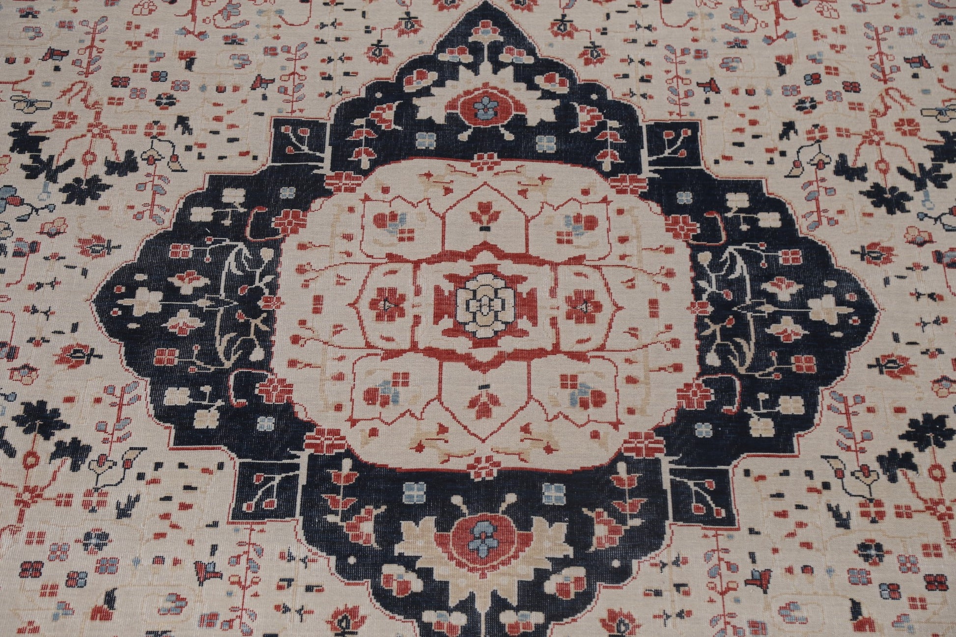 A Beautiful Genuine Turkey Kashan (Mohtasham) rug is Hand Knotted by skillful weavers in Turkey with 100% Wool Material. This rug is in New, First Quality condition. dimensions are 12' 9'' X 9' 10'' in foot and 389 X 300 in centimeter. the primary color is Beige & Ivories.