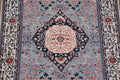A Beautiful Genuine Turkey Kashan (Mohtasham) rug is Hand Knotted by skillful weavers in Turkey with 100% Wool Material. This rug is in New, First Quality condition. dimensions are 5' 10'' X 3' 11'' in foot and 178 X 119 in centimeter. the primary color is Navy Blue & Blues.