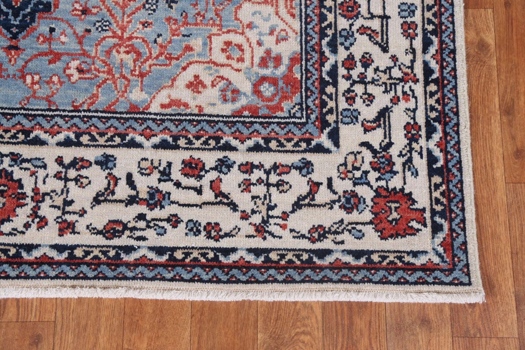 A Beautiful Genuine Turkey Kashan (Mohtasham) rug is Hand Knotted by skillful weavers in Turkey with 100% Wool Material. This rug is in New, First Quality condition. dimensions are 5' 10'' X 3' 11'' in foot and 178 X 119 in centimeter. the primary color is Navy Blue & Blues.