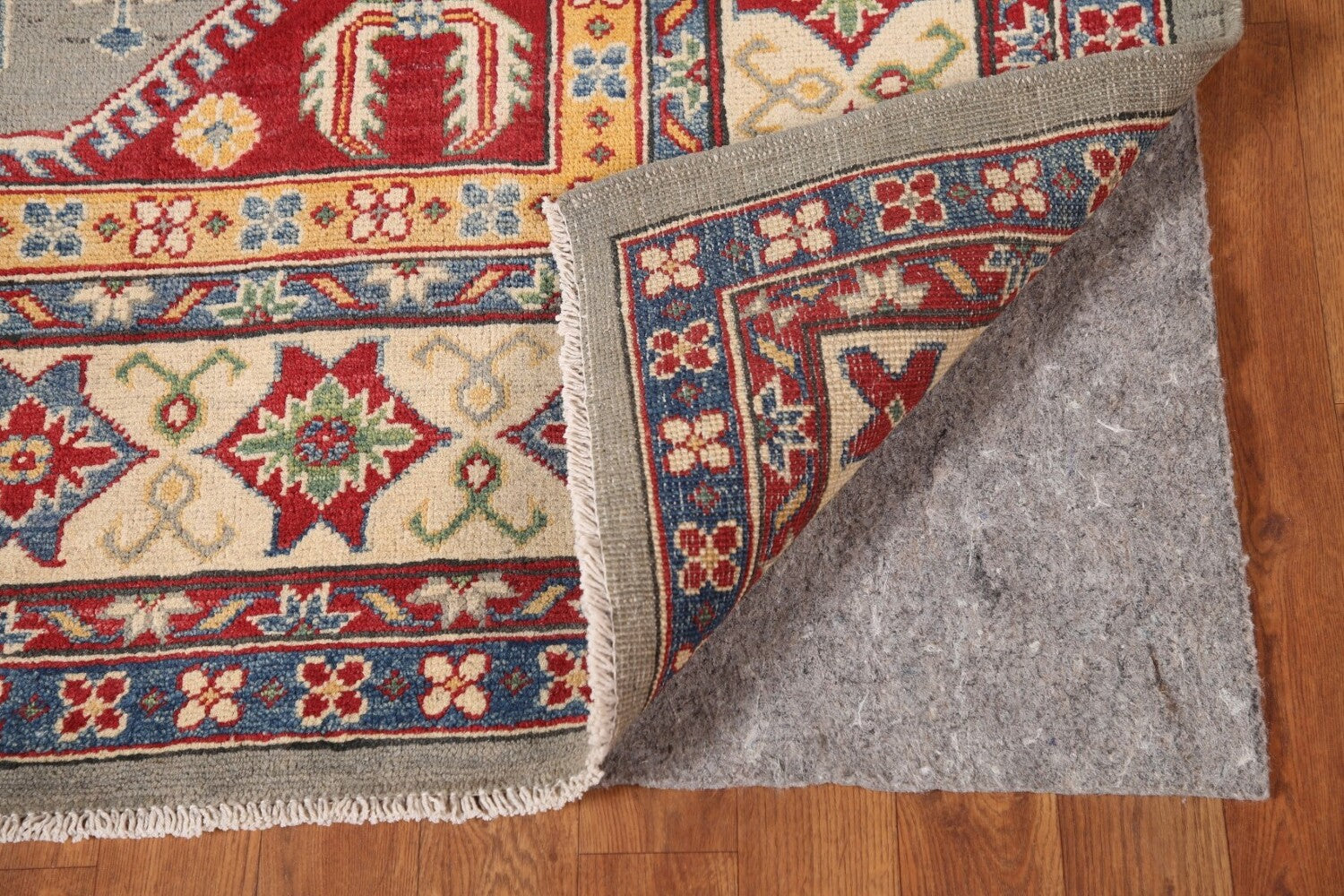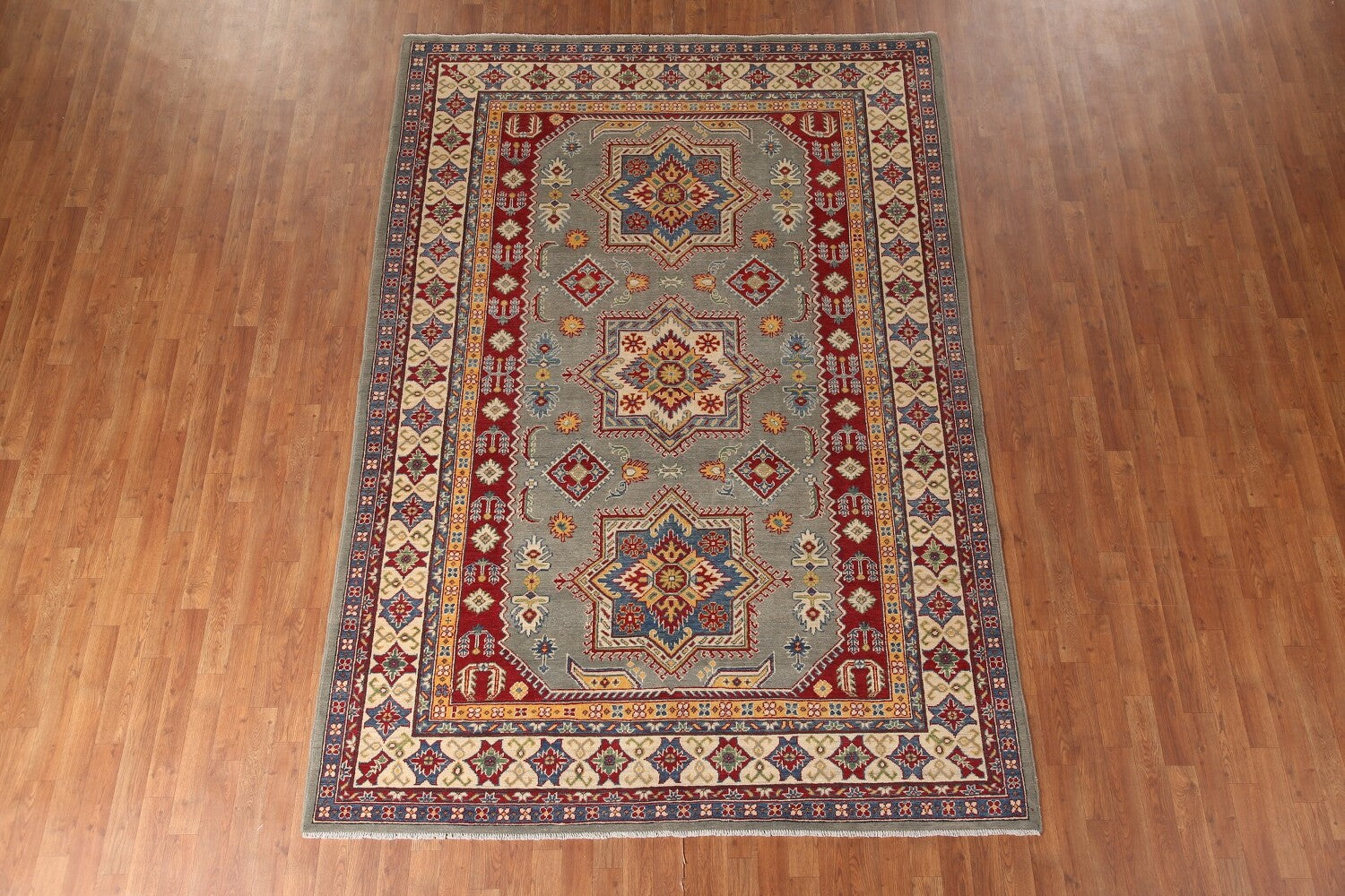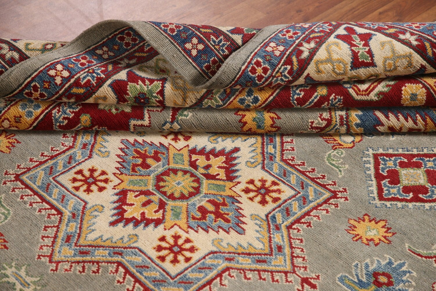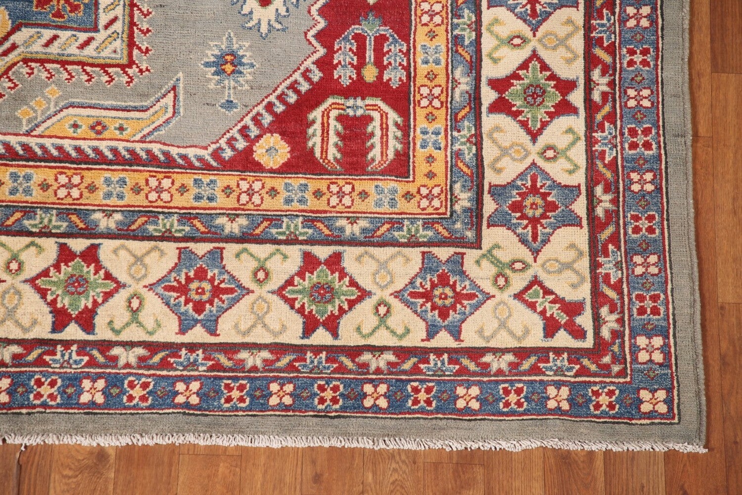 A Beautiful Genuine Pakistan Kazak rug is Hand Knotted by skillful weavers in Pakistan with 100% Wool Material. This rug is in New, First Quality condition. dimensions are 9' 8'' X 6' 9'' in foot and 295 X 206 in centimeter. the primary color is Greys & Charcoal.