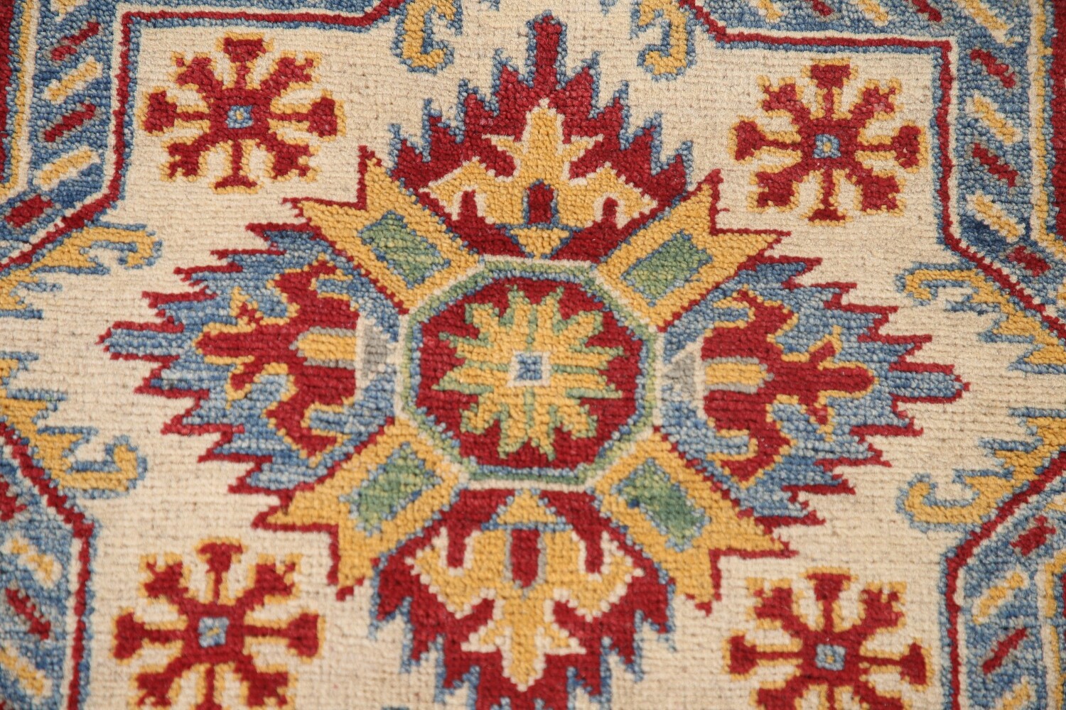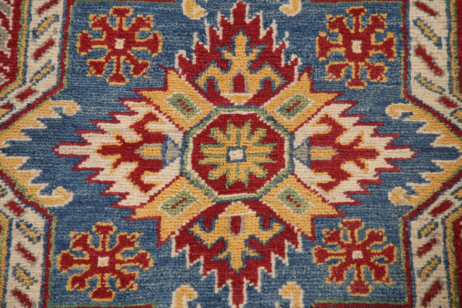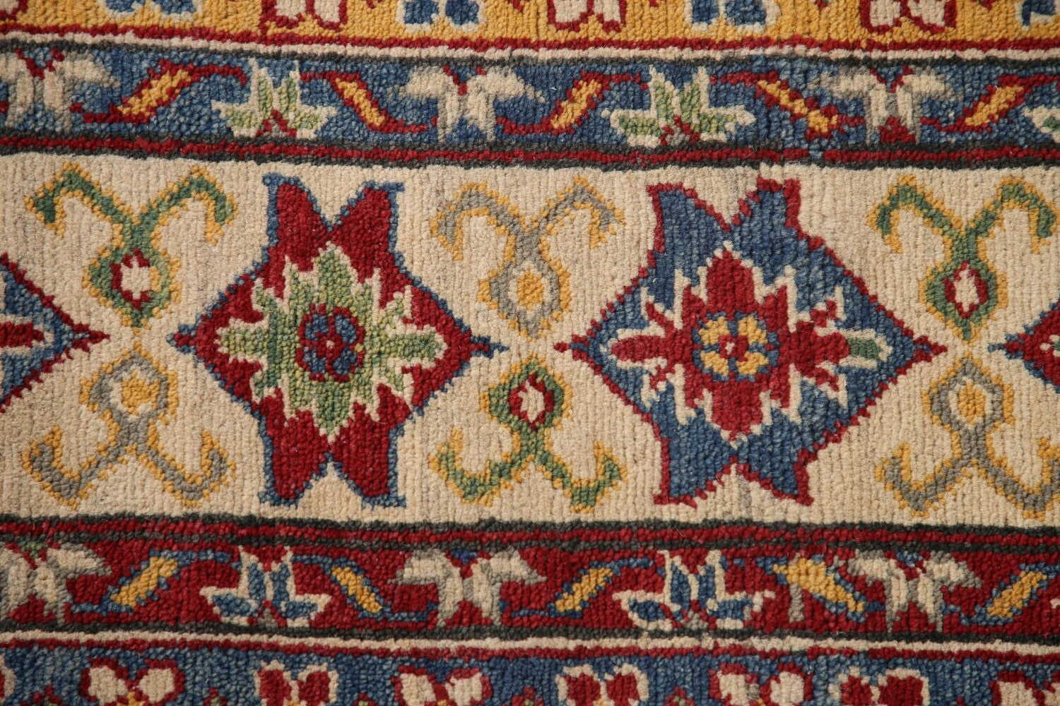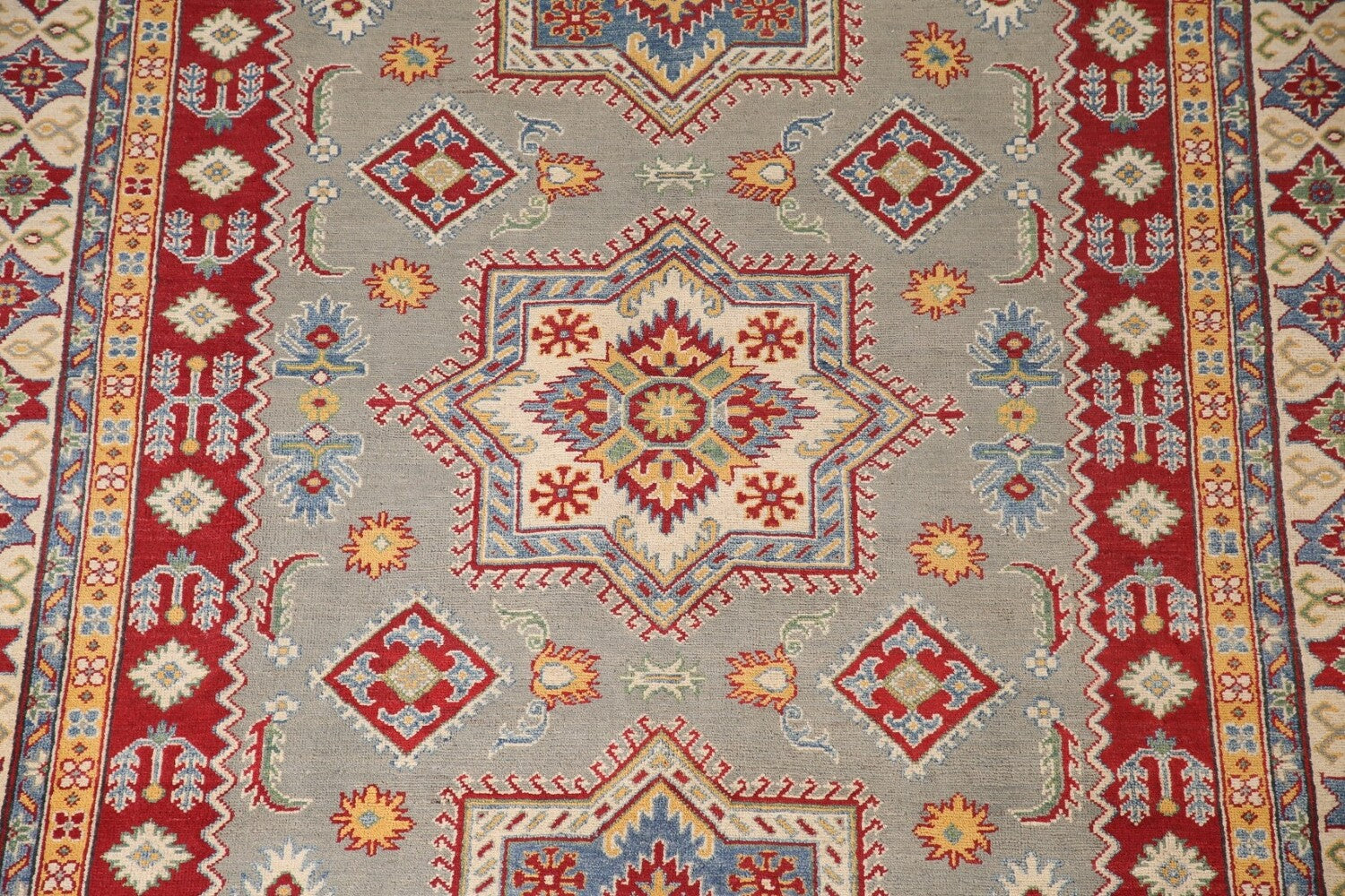 A Beautiful Genuine Pakistan Kazak rug is Hand Knotted by skillful weavers in Pakistan with 100% Wool Material. This rug is in New, First Quality condition. dimensions are 9' 8'' X 6' 9'' in foot and 295 X 206 in centimeter. the primary color is Greys & Charcoal.