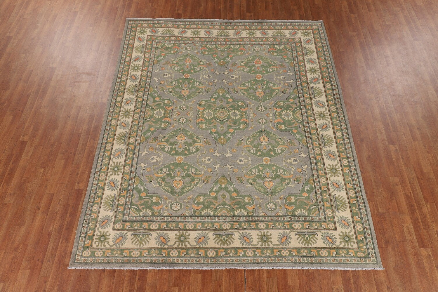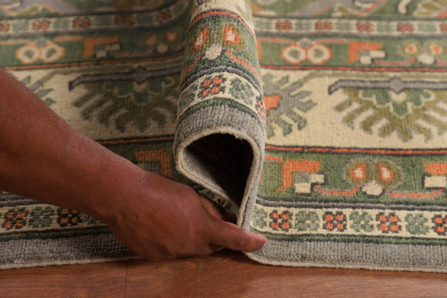 A Beautiful Genuine Pakistan Kazak rug is Hand Knotted by skillful weavers in Pakistan with 100% Wool Material. This rug is in New, First Quality condition. dimensions are 9' 10'' X 8' 2'' in foot and 300 X 249 in centimeter. the primary color is Greys & Charcoal.