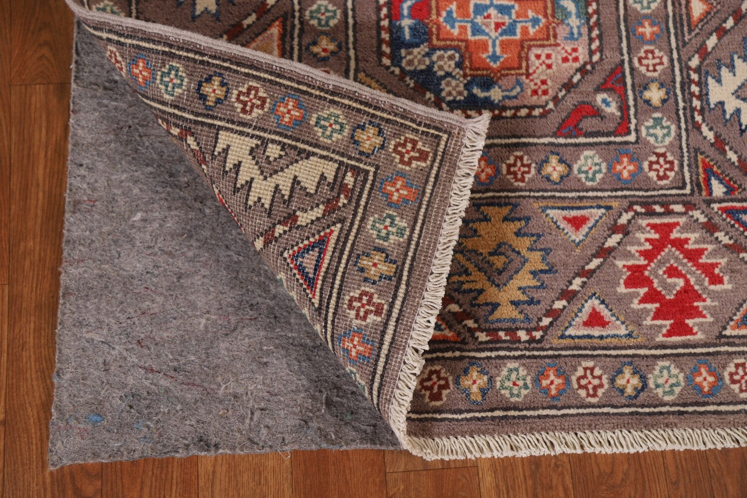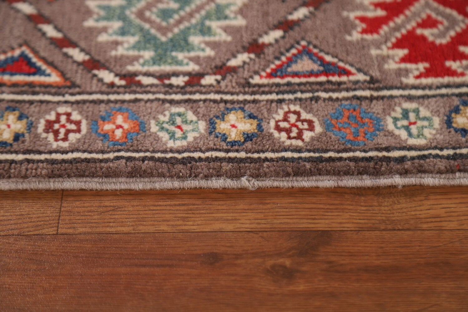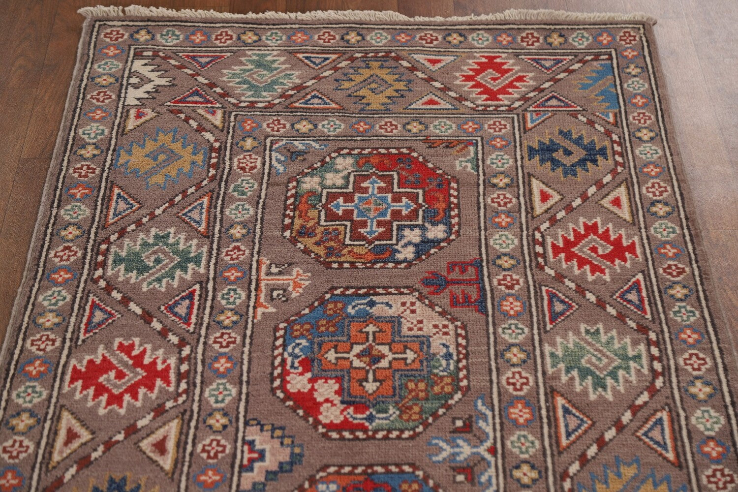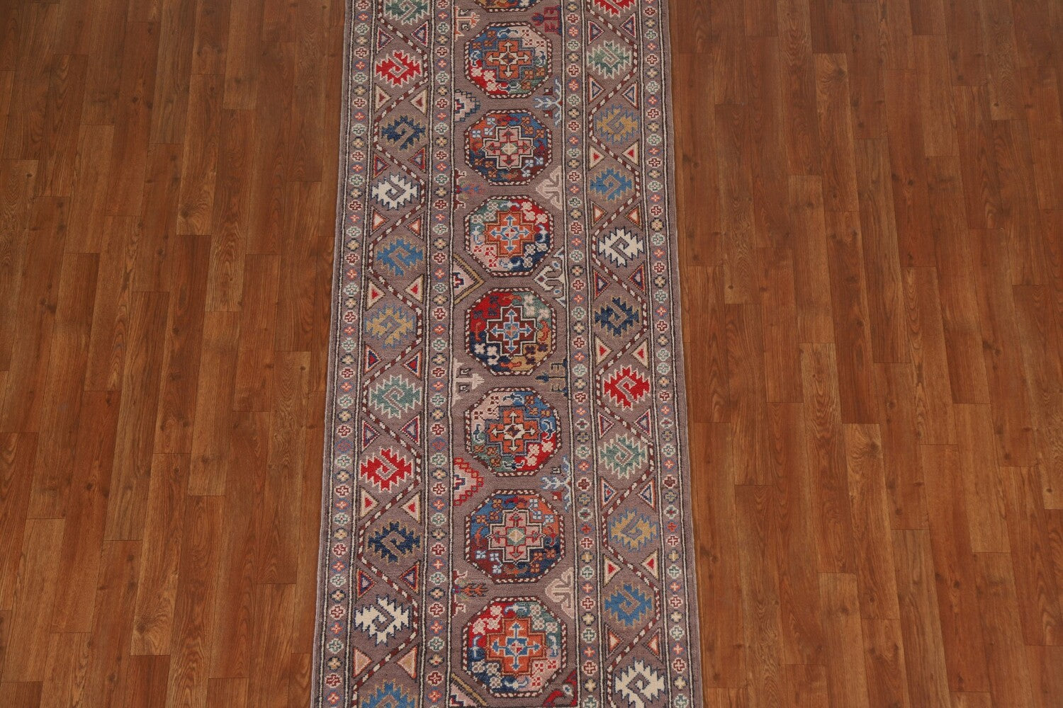 A Beautiful Genuine Pakistan Kazak rug is Hand Knotted by skillful weavers in Pakistan with 100% Wool Material. This rug is in New, First Quality condition. dimensions are 8' 5'' X 2' 8'' in foot and 257 X 81 in centimeter. the primary color is Brown.