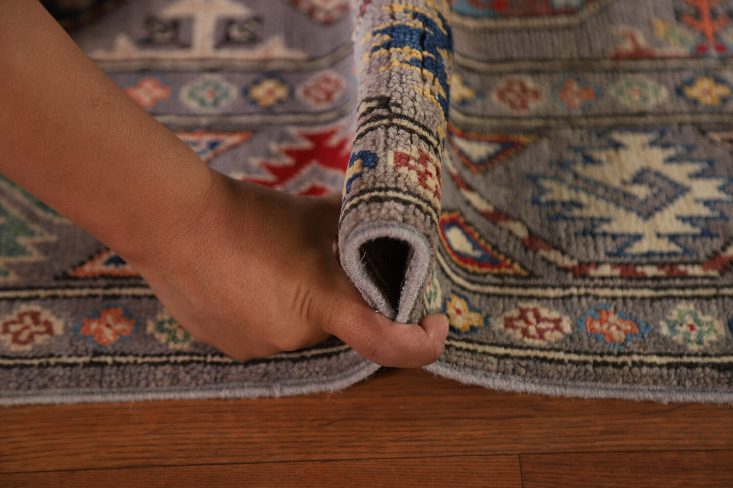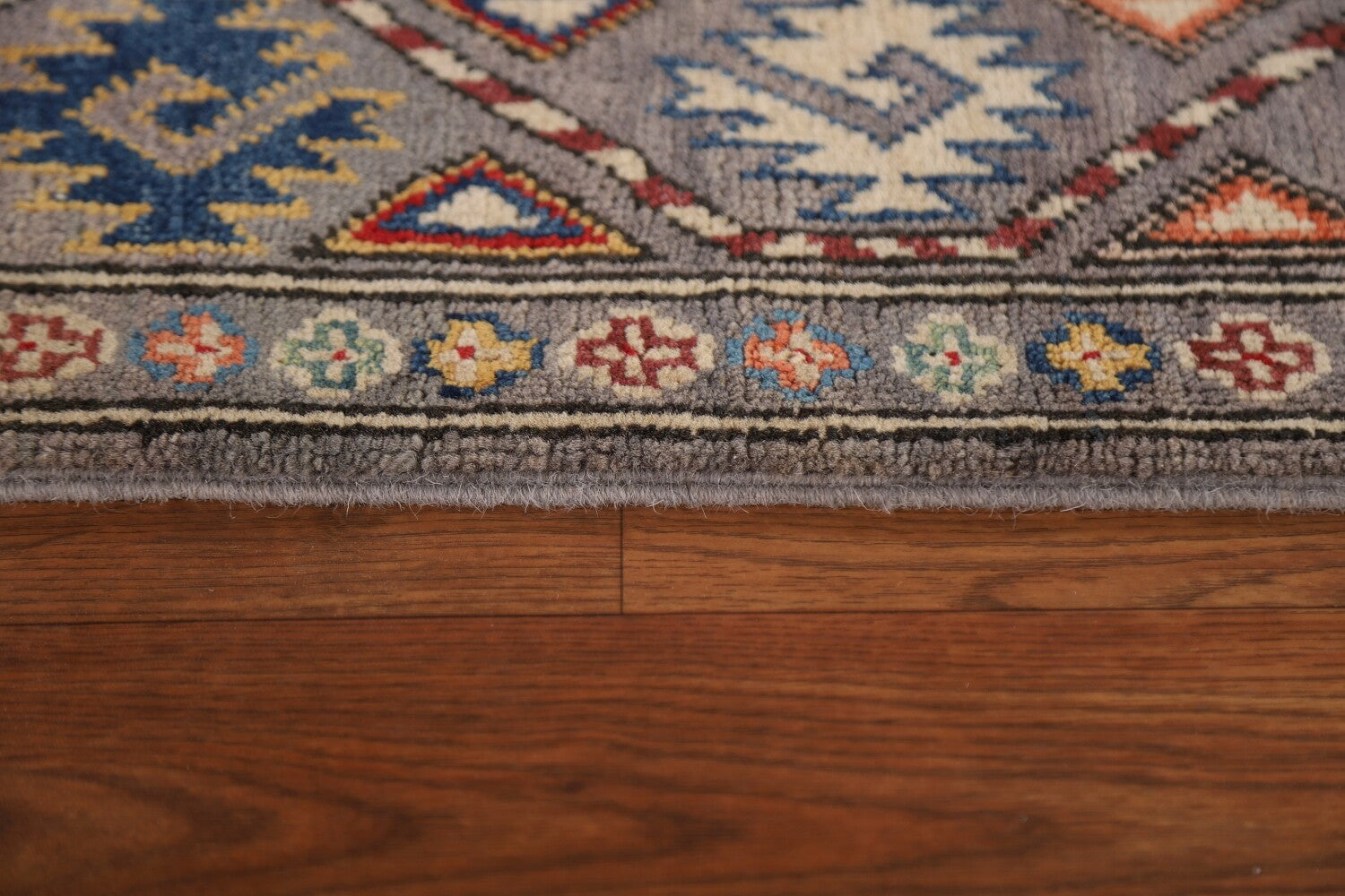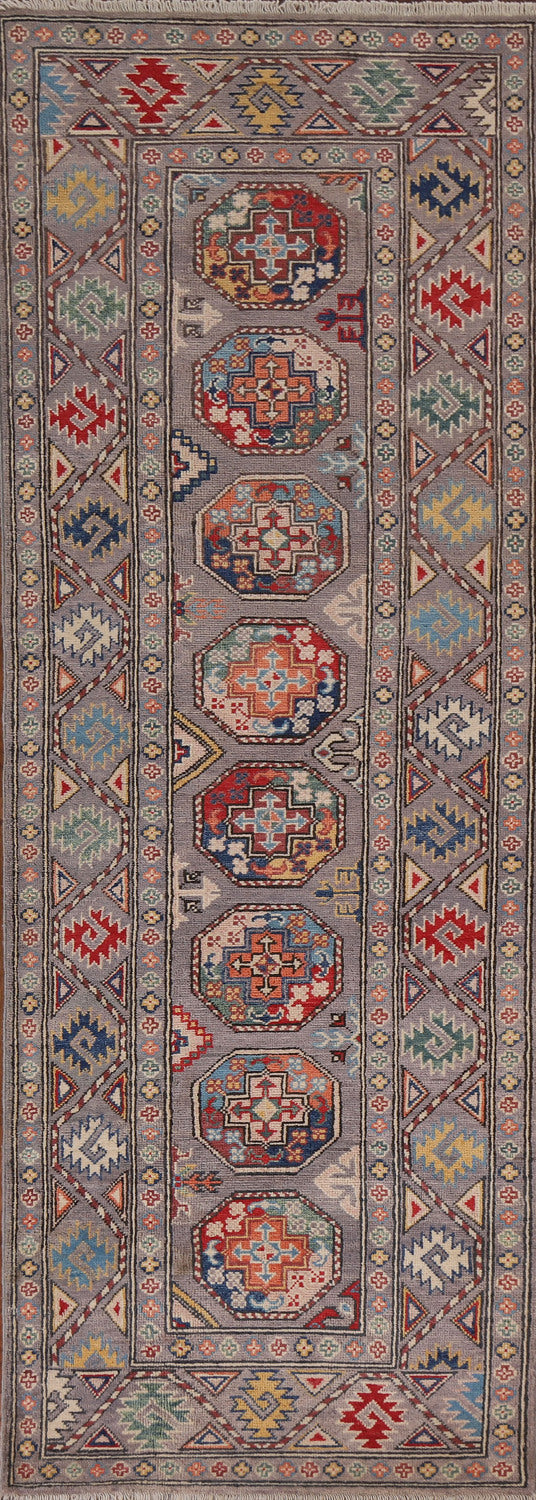 A Beautiful Genuine Pakistan Kazak rug is Hand Knotted by skillful weavers in Pakistan with 100% Wool Material. This rug is in New, First Quality condition. dimensions are 8' 2'' X 2' 7'' in foot and 249 X 79 in centimeter. the primary color is Brown.