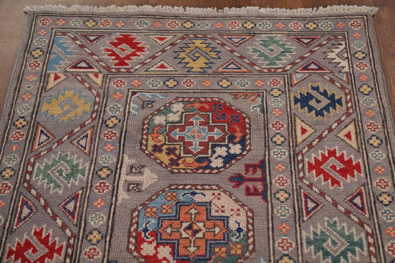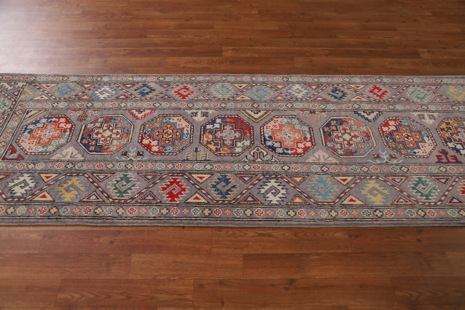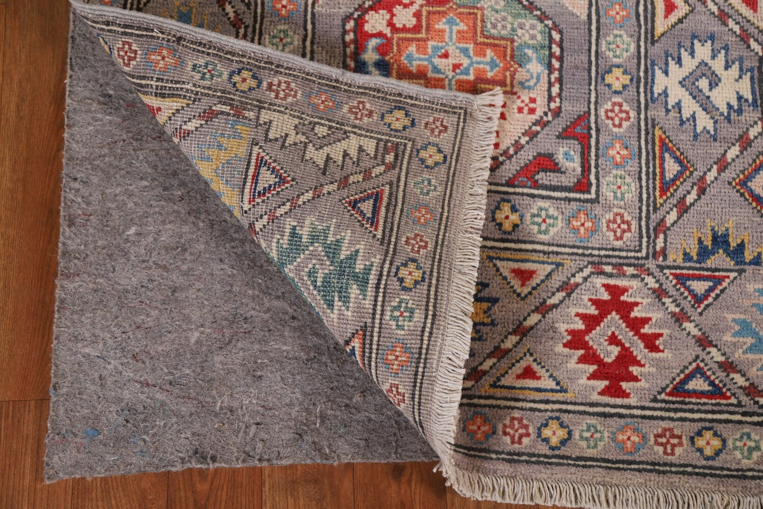 A Beautiful Genuine Pakistan Kazak rug is Hand Knotted by skillful weavers in Pakistan with 100% Wool Material. This rug is in New, First Quality condition. dimensions are 8' 2'' X 2' 7'' in foot and 249 X 79 in centimeter. the primary color is Brown.