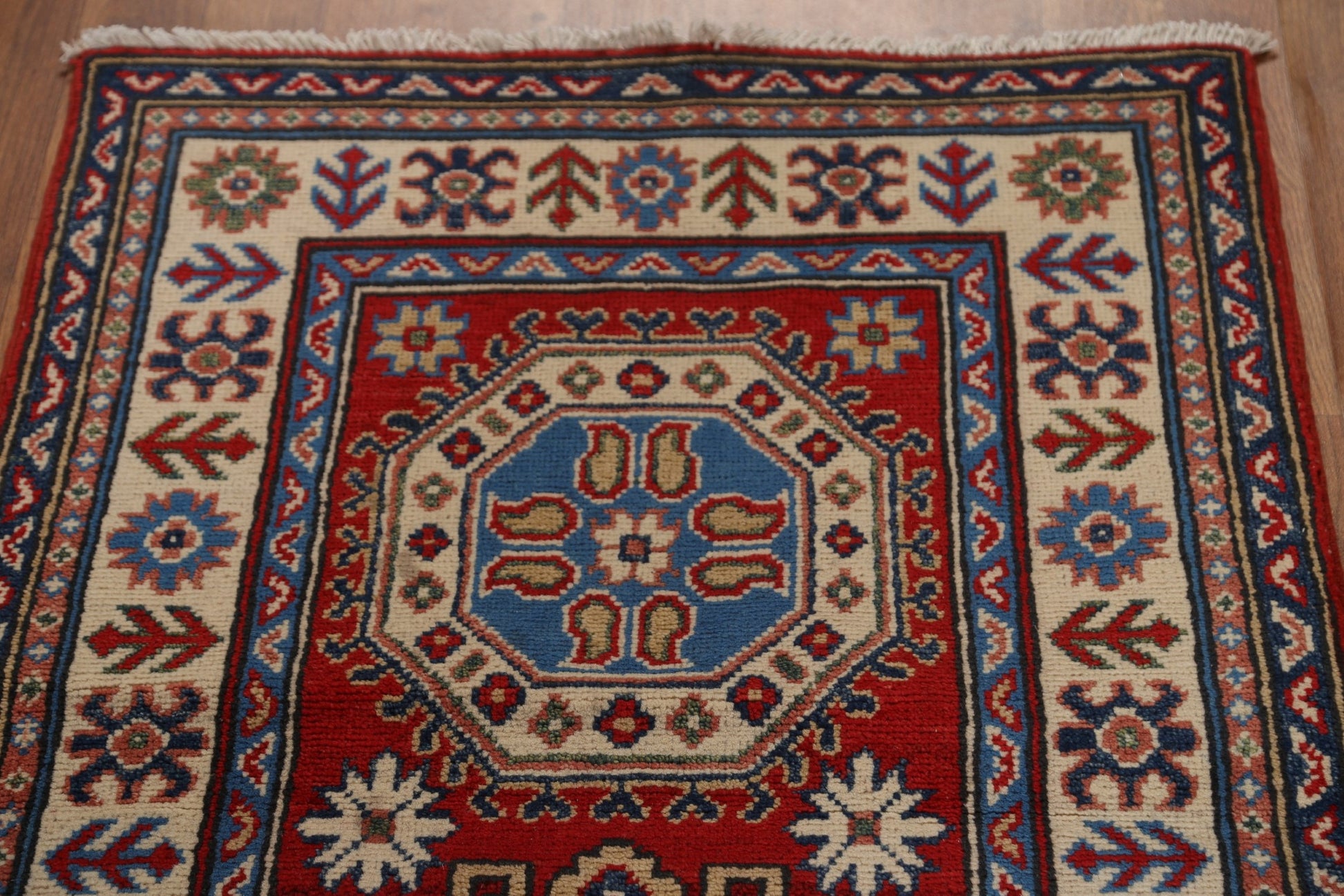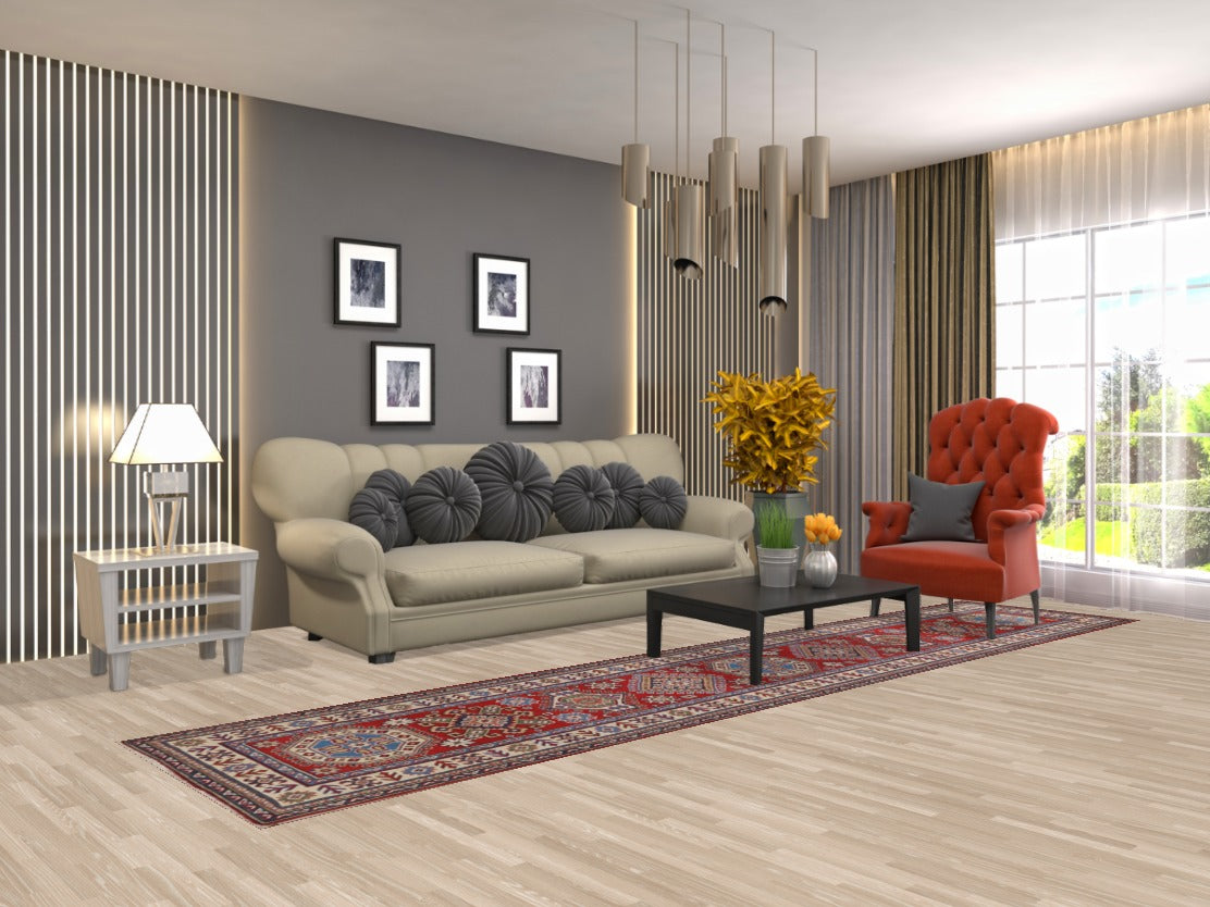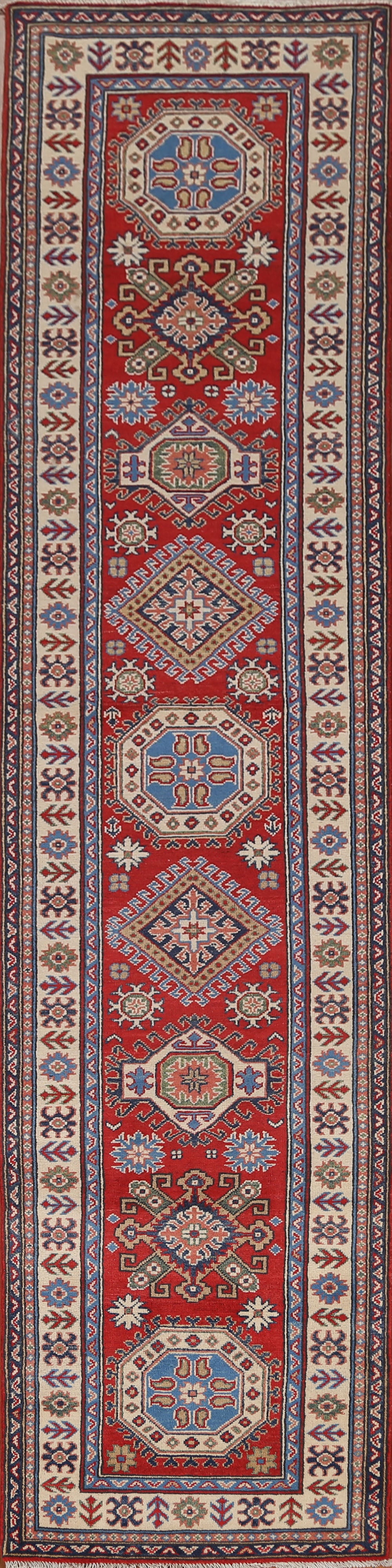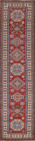 Handmade Kazak Red Wool Runner Rug 3x13