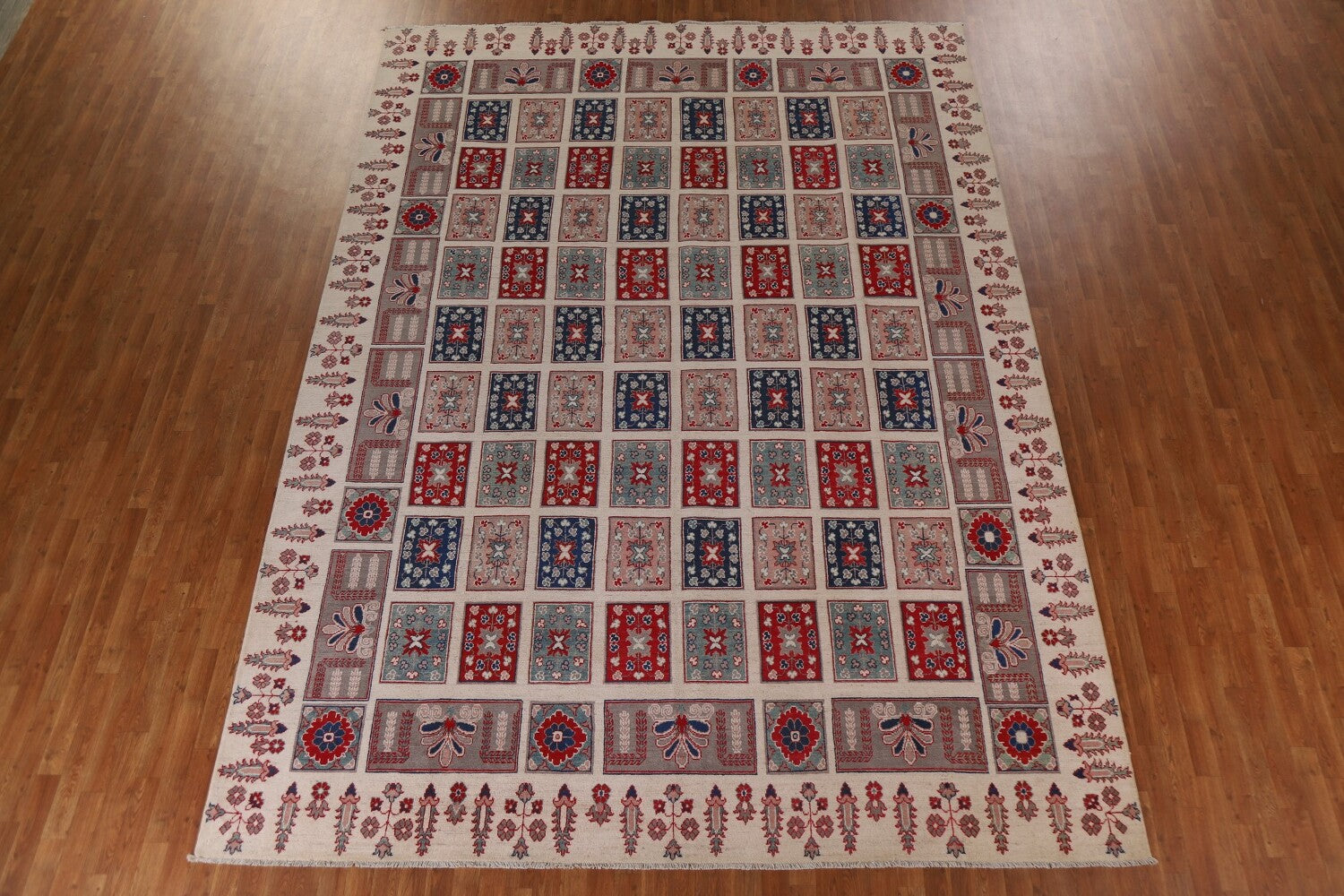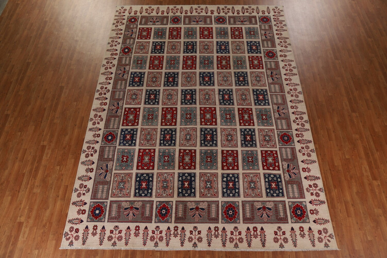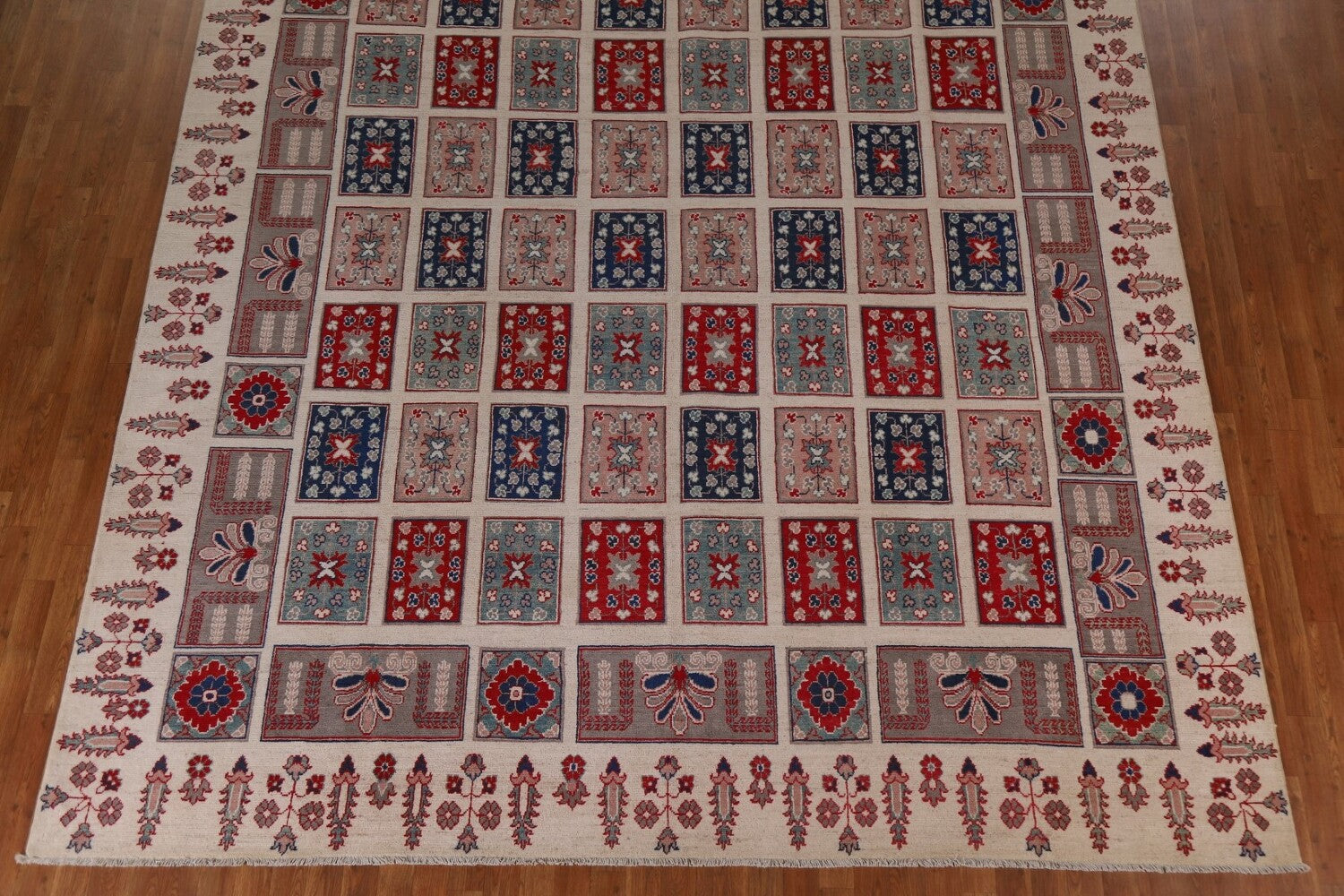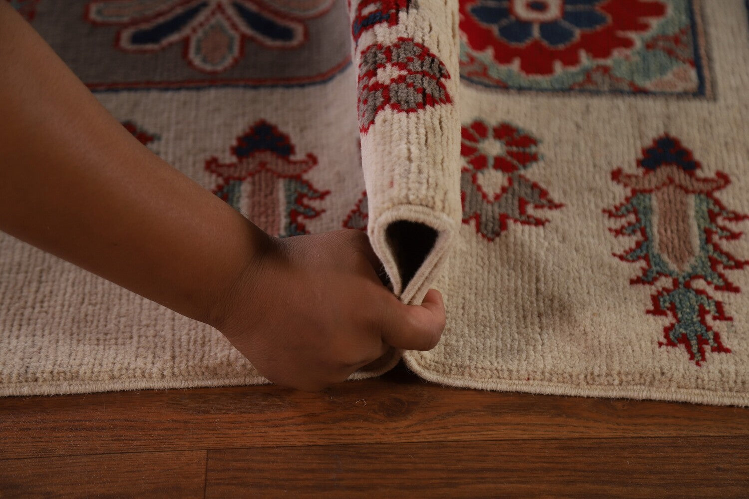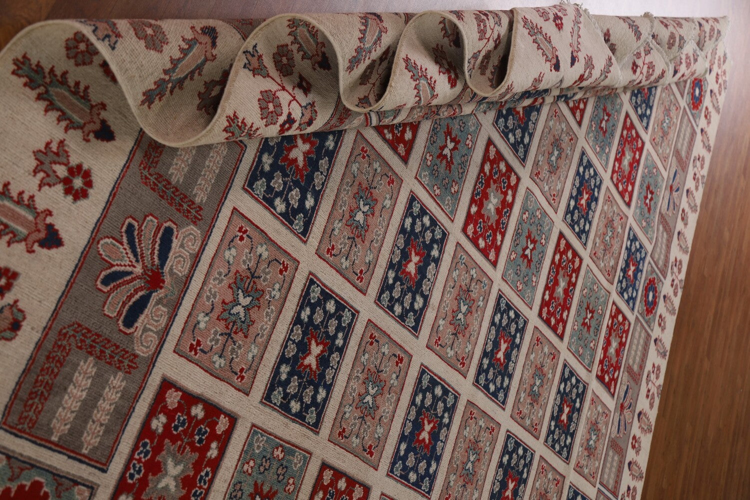 A Beautiful Genuine Pakistan Kazak rug is Hand Knotted by skillful weavers in Pakistan with 100% Wool Material. This rug is in condition. dimensions are 13' 6'' X 9' 10'' in foot and 411 X 300 in centimeter. the primary color is Beige & Ivories.