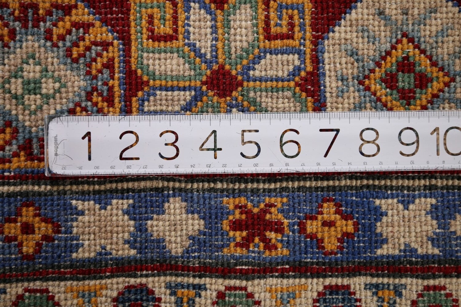 A Beautiful Genuine Pakistan Kazak rug is Hand Knotted by skillful weavers in Pakistan with 100% Wool Material. This rug is in New, First Quality condition. dimensions are 6' 9'' X 5' 3'' in foot and 206 X 160 in centimeter. the primary color is Navy Blue & Blues.