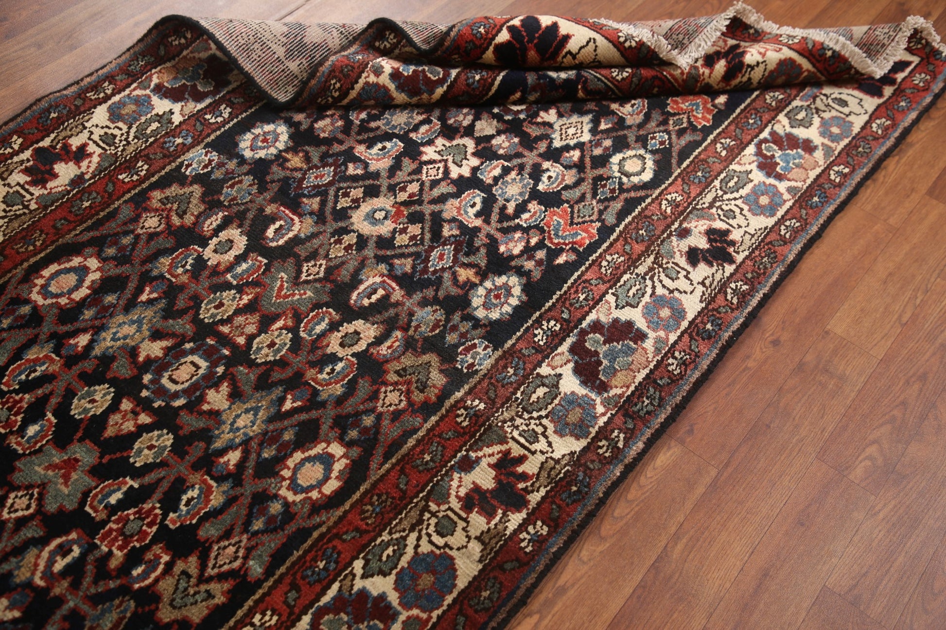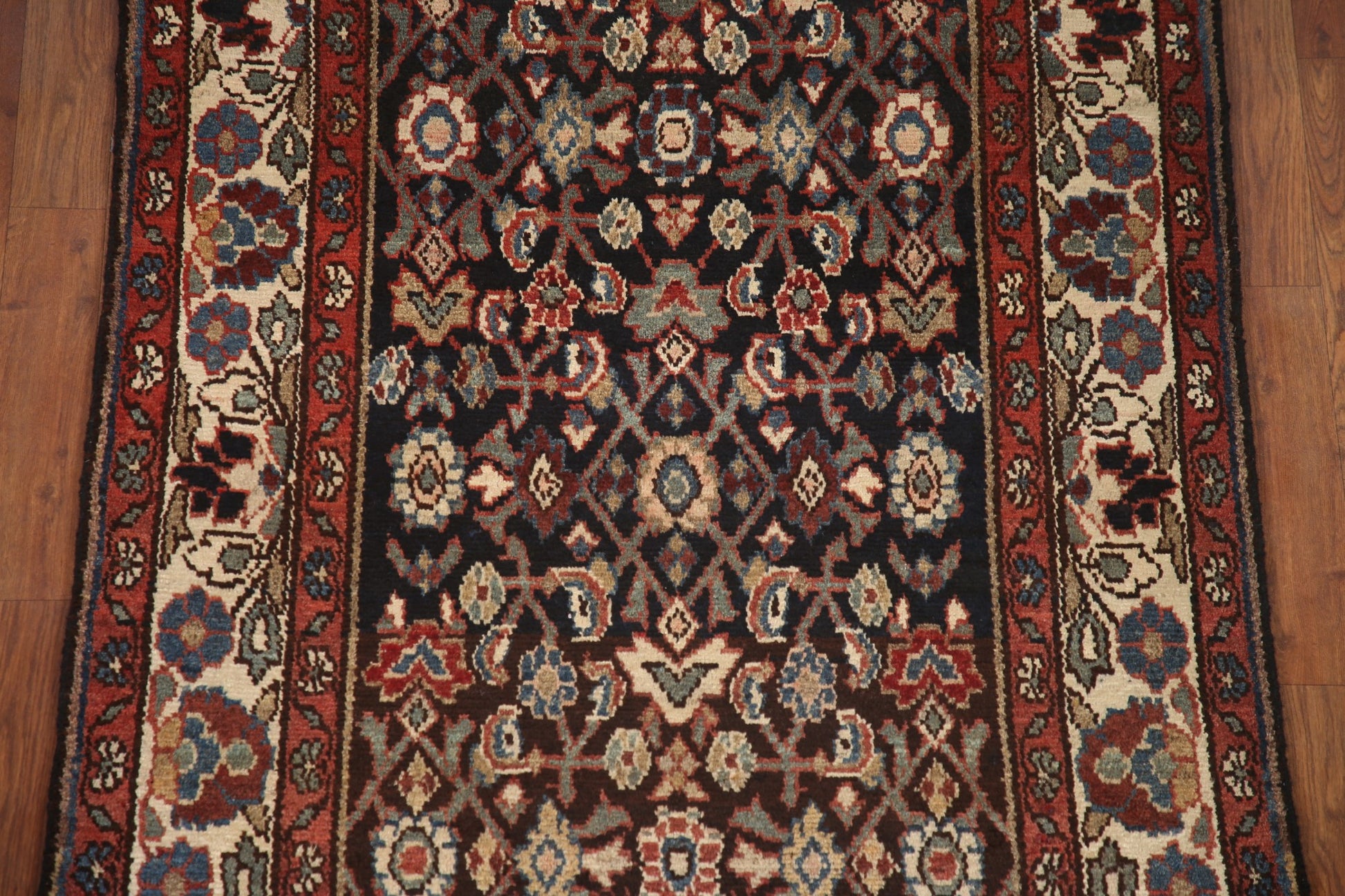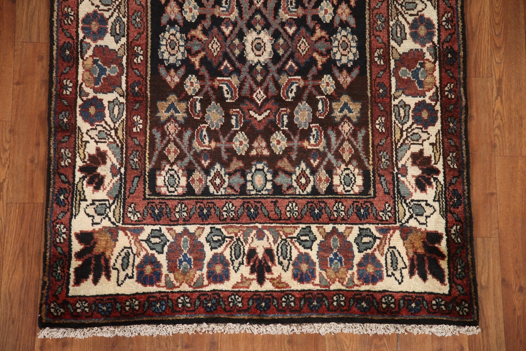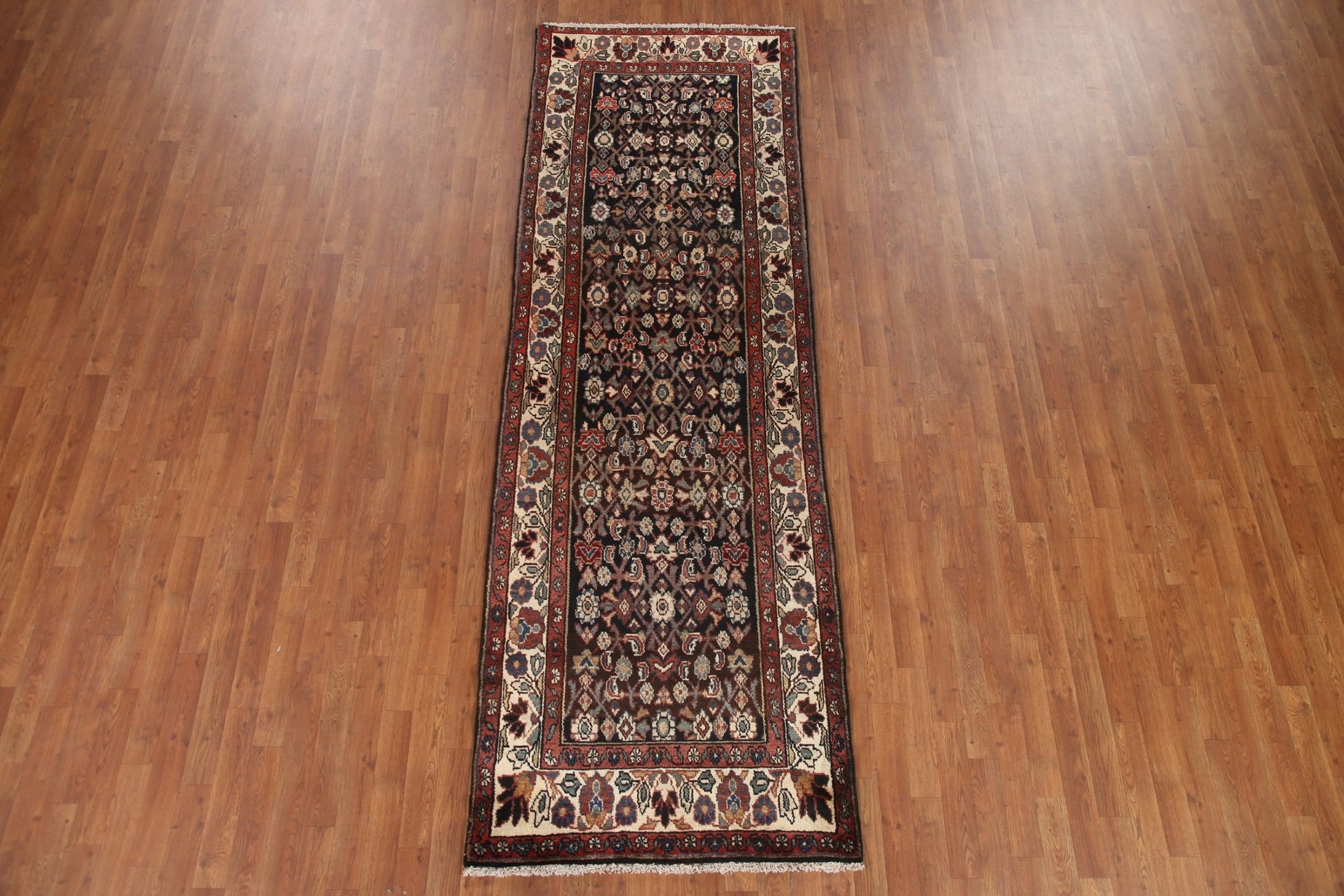 A Beautiful Genuine Persia ( Persia ) Malayer rug is Hand Knotted by skillful weavers in Persia ( Persia ) with 100% Wool Material. This rug is in Very Good condition. dimensions are 10' 3'' X 3' 4'' in foot and 312 X 102 in centimeter. the primary color is Black.
