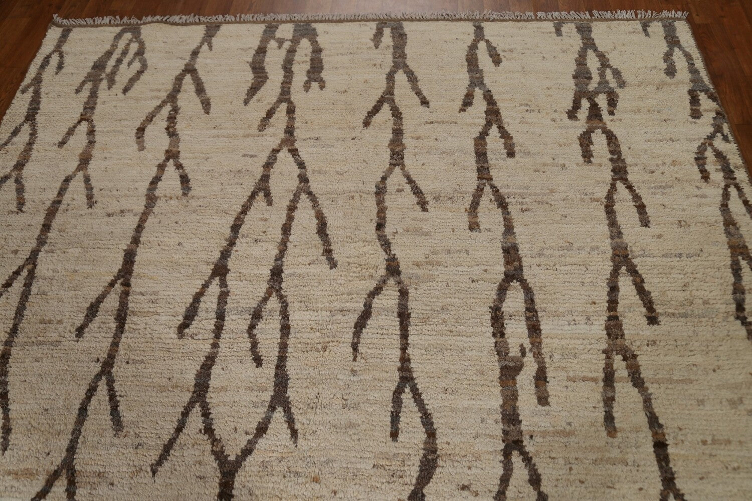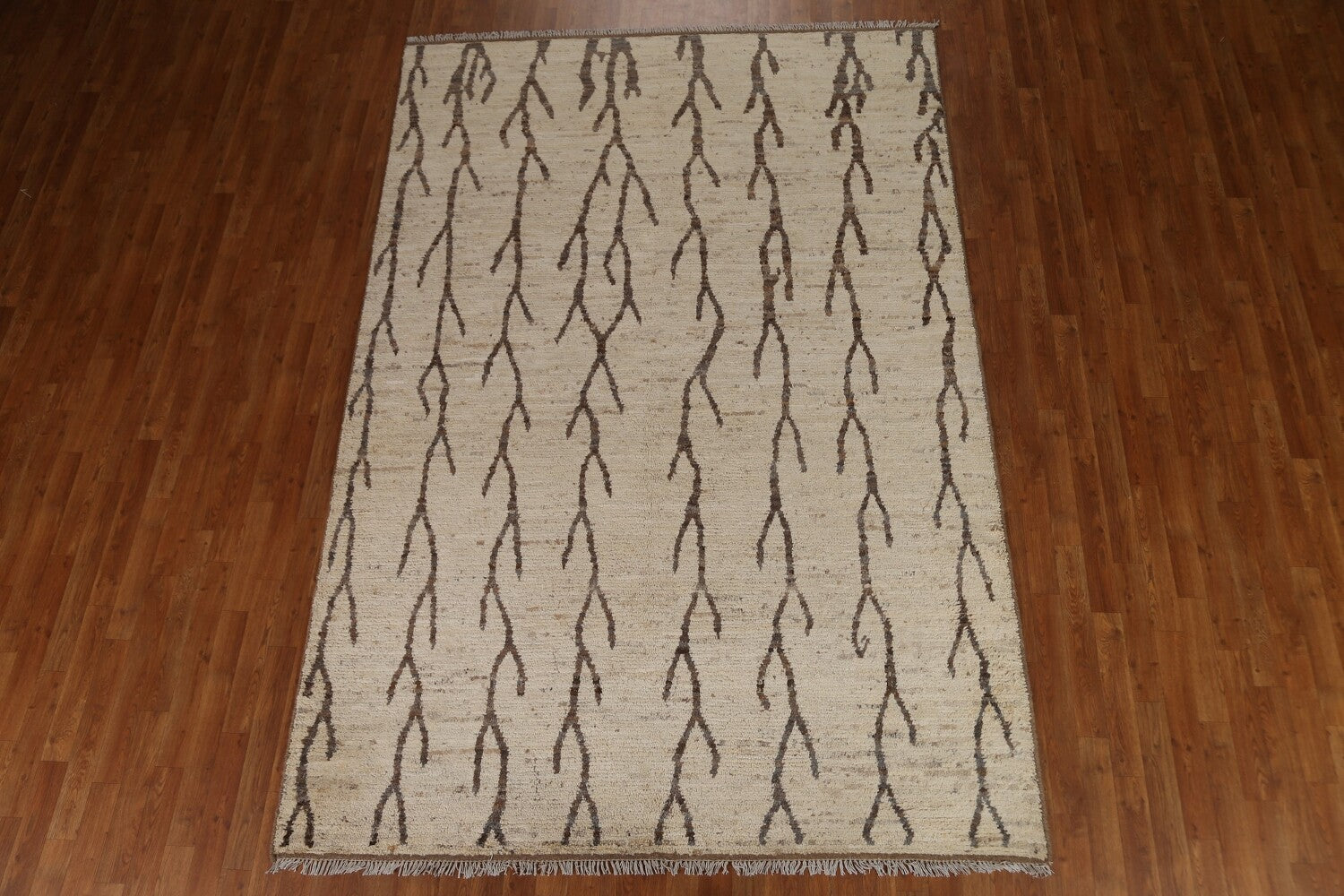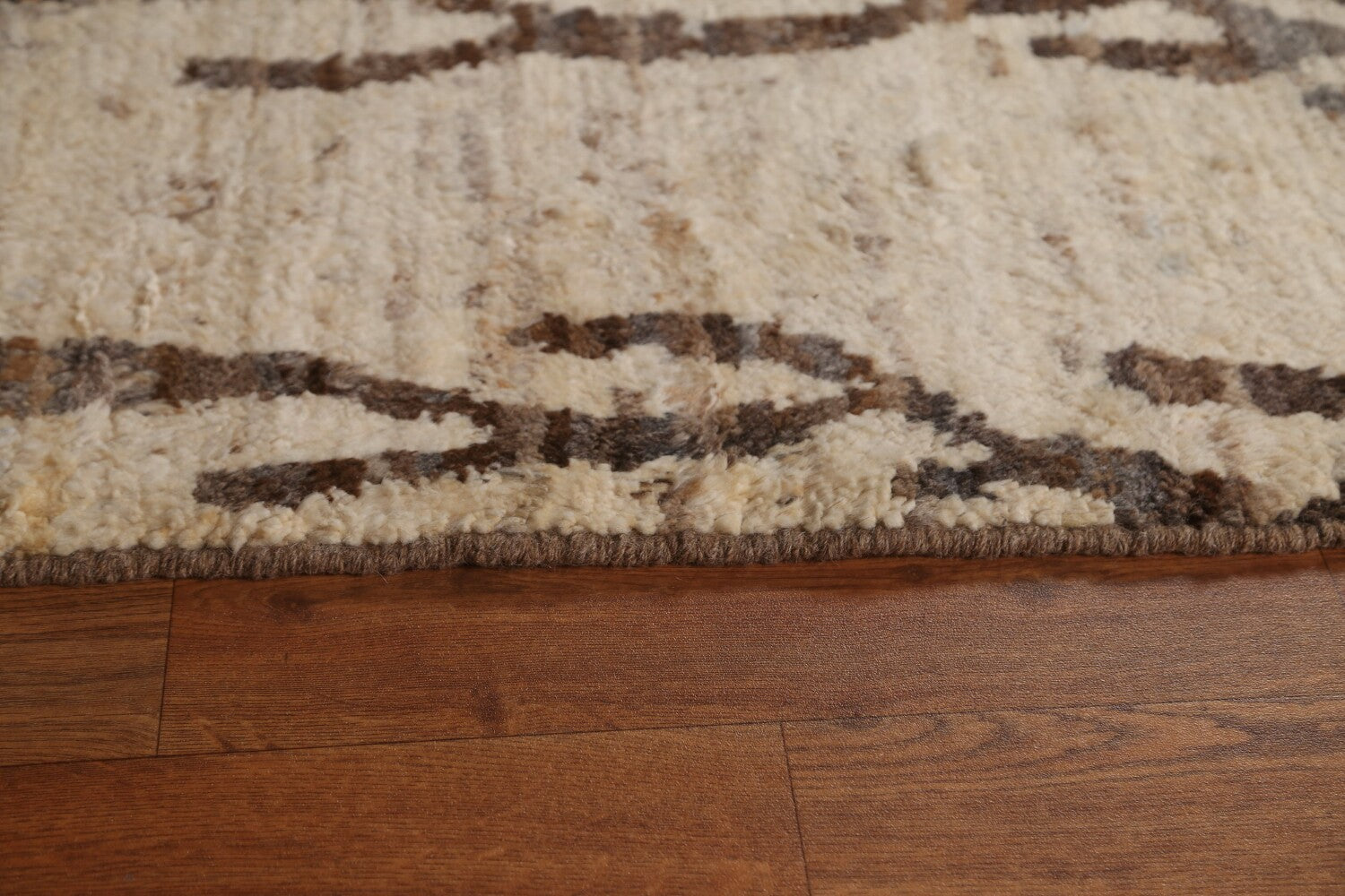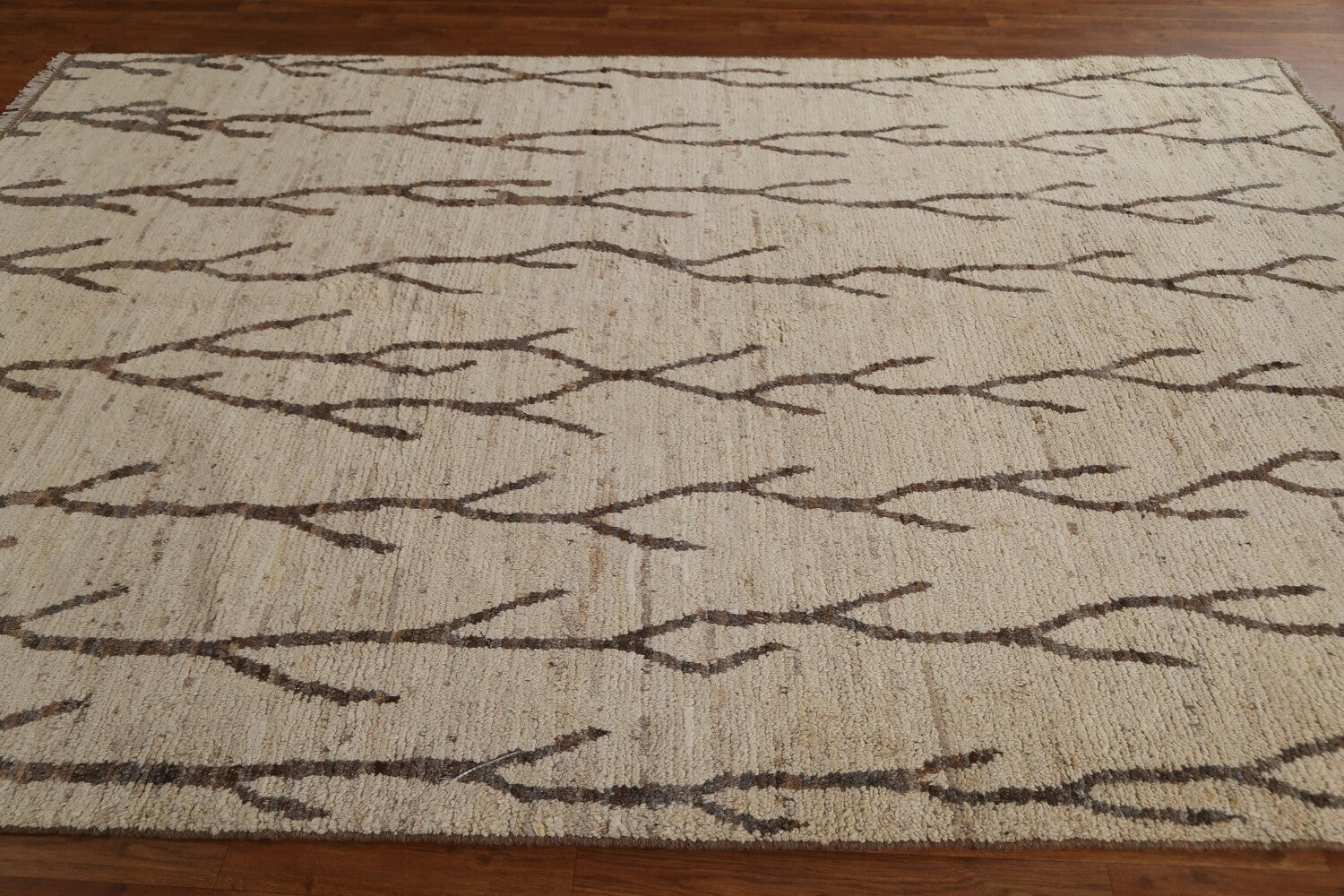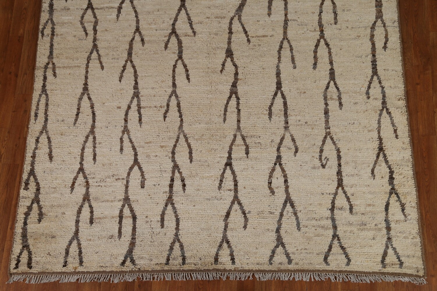 A Beautiful Genuine Pakistan Moroccan rug is Hand Knotted by skillful weavers in Pakistan with 100% Wool Material. This rug is in condition. dimensions are 9' 10'' X 6' 8'' in foot and 300 X 203 in centimeter. the primary color is Beige & Ivories.