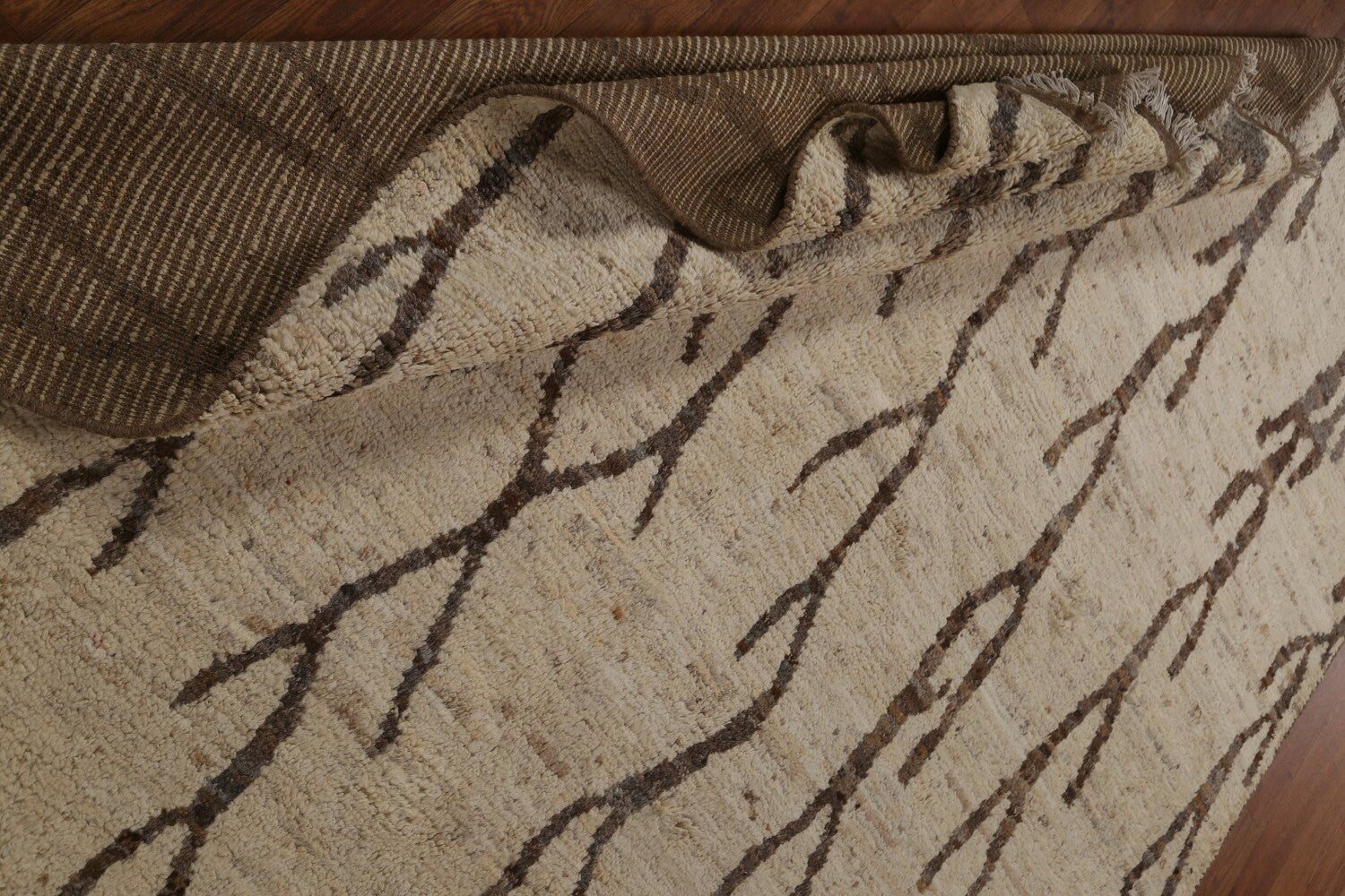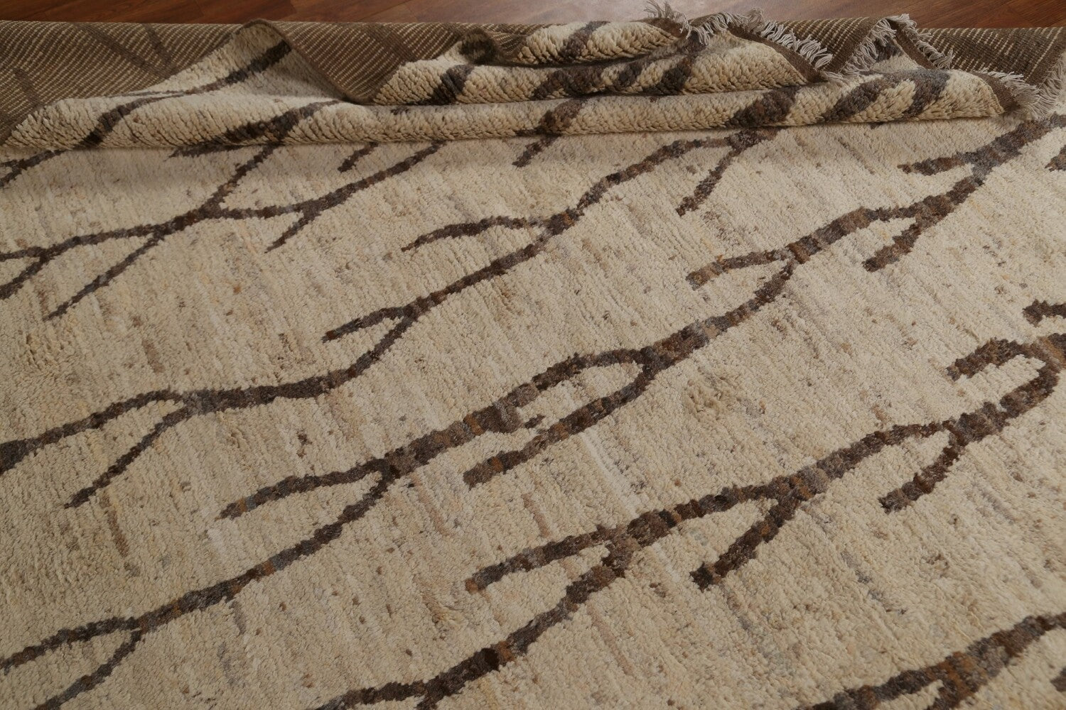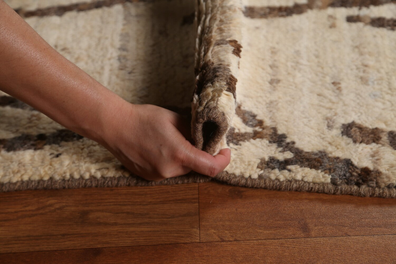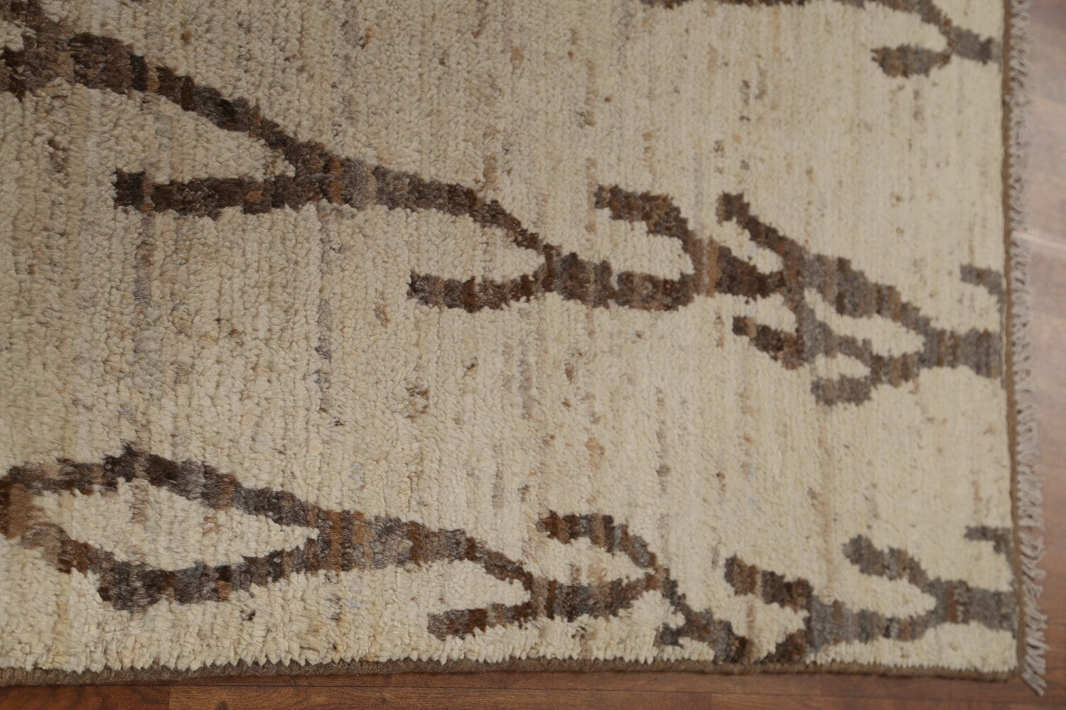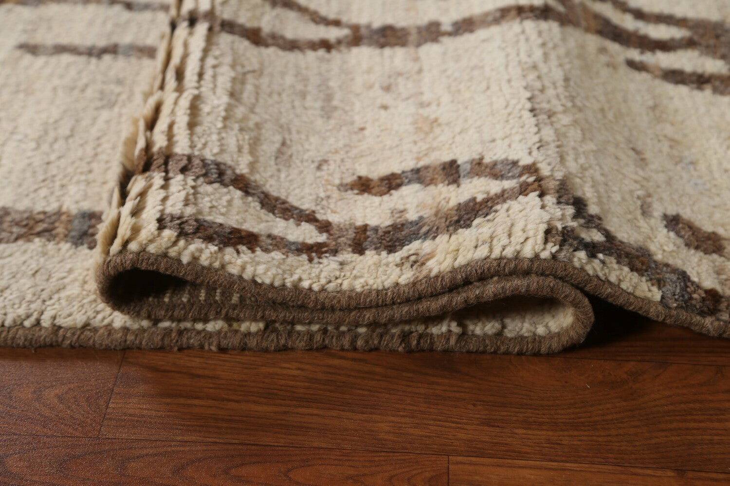 A Beautiful Genuine Pakistan Moroccan rug is Hand Knotted by skillful weavers in Pakistan with 100% Wool Material. This rug is in condition. dimensions are 9' 10'' X 6' 8'' in foot and 300 X 203 in centimeter. the primary color is Beige & Ivories.