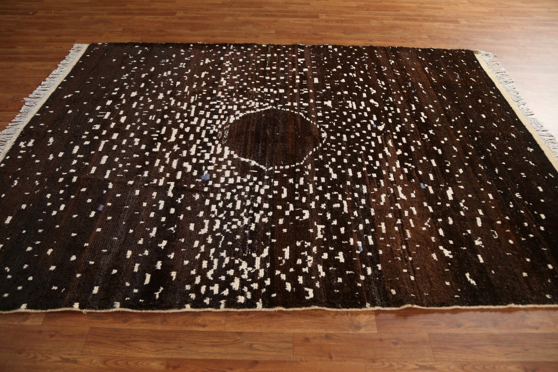 A Beautiful Genuine Pakistan Moroccan rug is Hand Knotted by skillful weavers in Pakistan with 100% Wool Material. This rug is in New, First Quality condition. dimensions are 8' 0'' X 5' 8'' in foot and 244 X 173 in centimeter. the primary color is Brown.