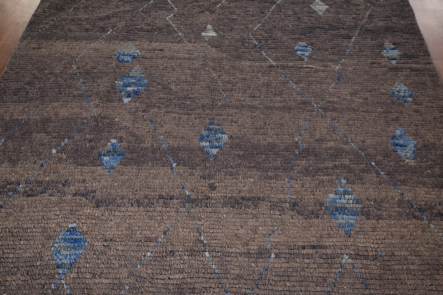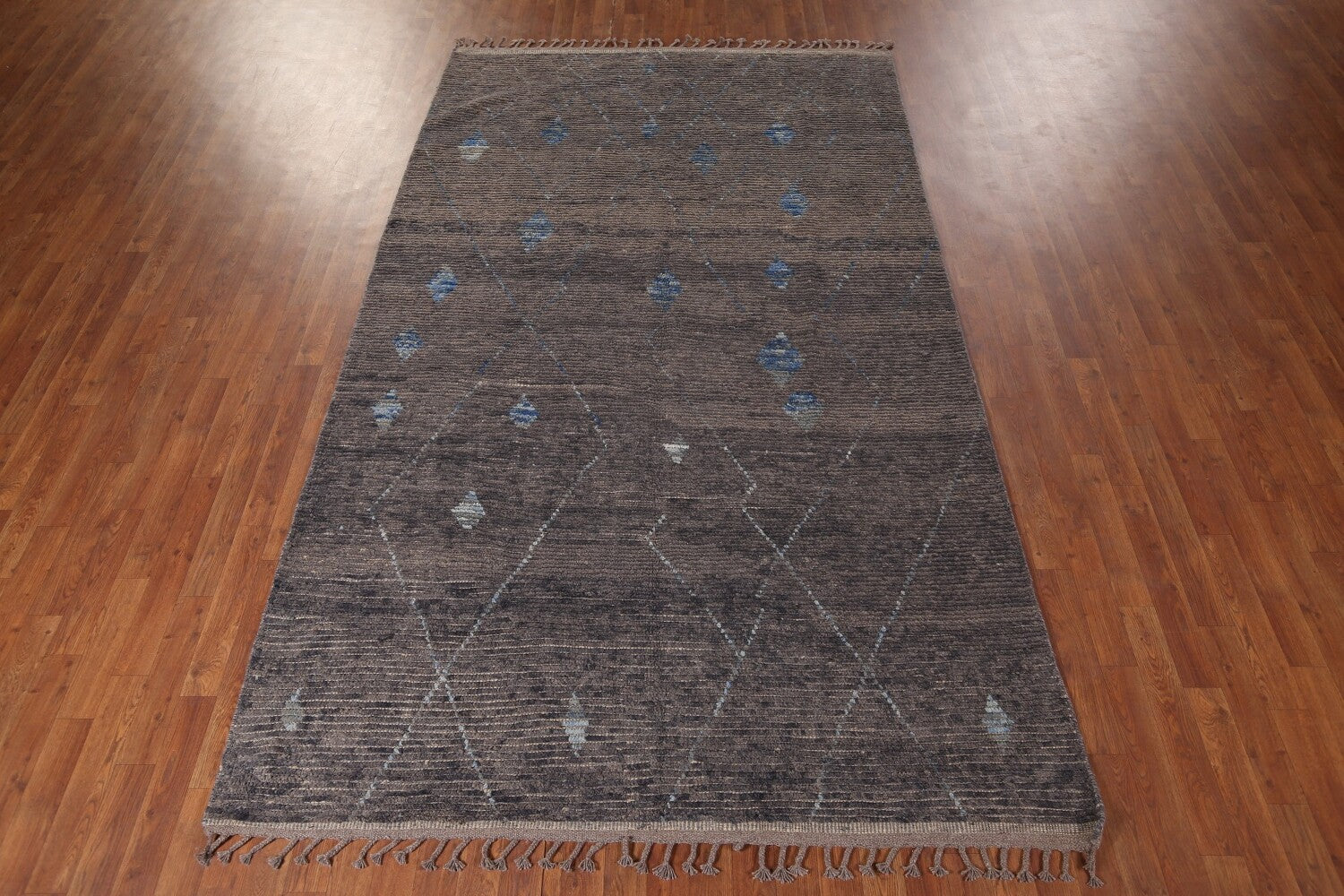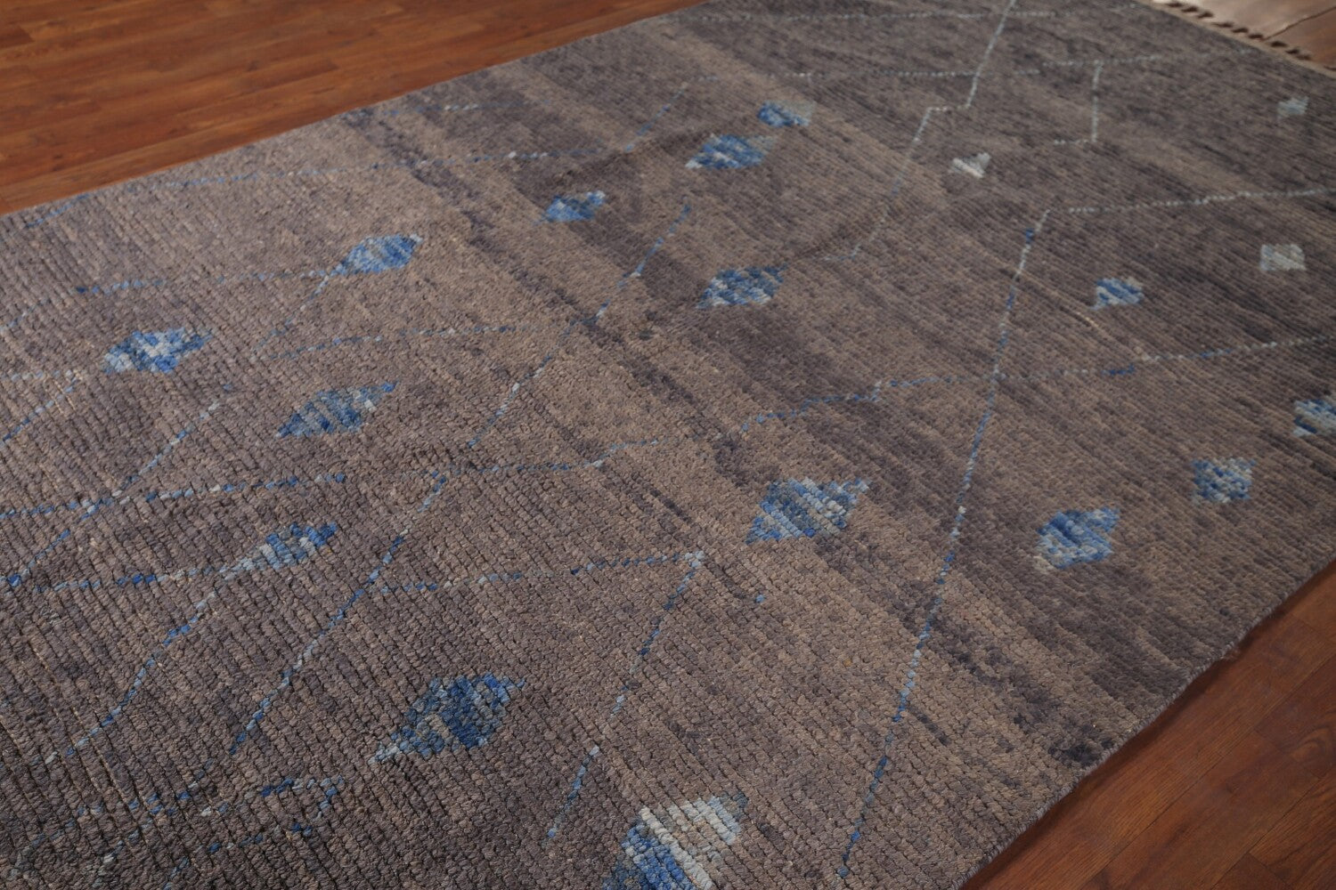 A Beautiful Genuine Pakistan Moroccan rug is Hand Knotted by skillful weavers in Pakistan with 100% Wool Material. This rug is in New, First Quality condition. dimensions are 10' 0'' X 5' 10'' in foot and 305 X 178 in centimeter. the primary color is Greys & Charcoal.