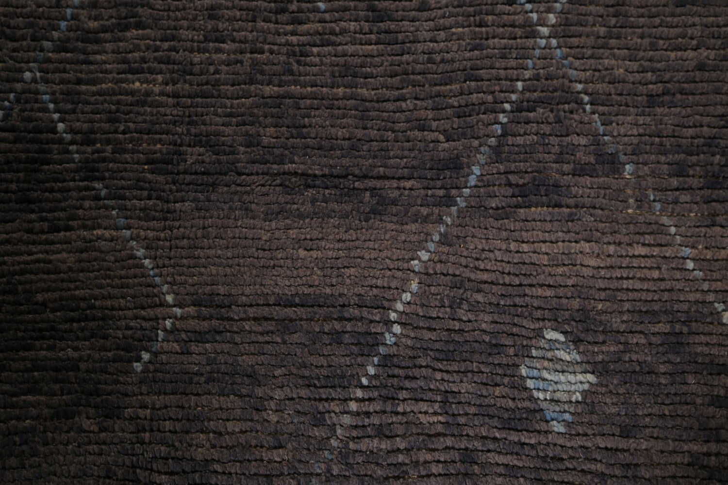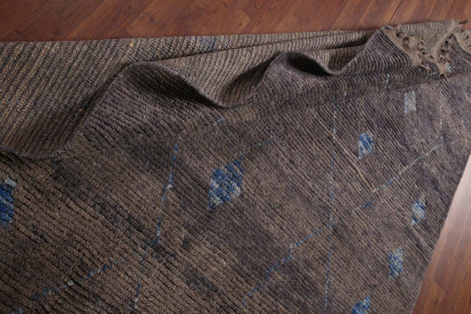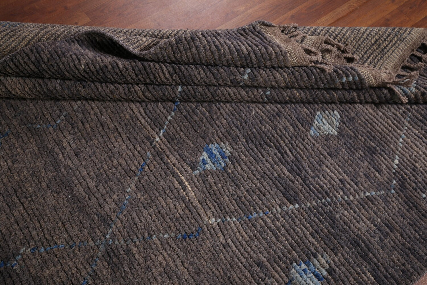 A Beautiful Genuine Pakistan Moroccan rug is Hand Knotted by skillful weavers in Pakistan with 100% Wool Material. This rug is in New, First Quality condition. dimensions are 10' 0'' X 5' 10'' in foot and 305 X 178 in centimeter. the primary color is Greys & Charcoal.