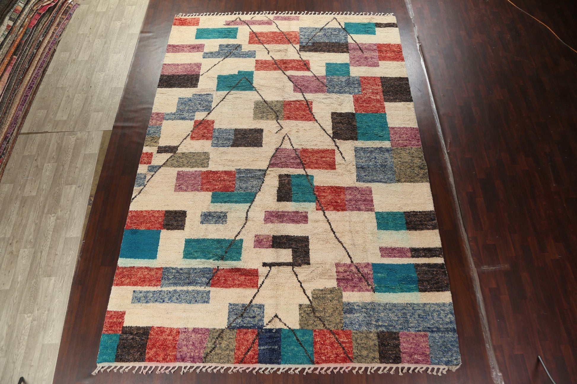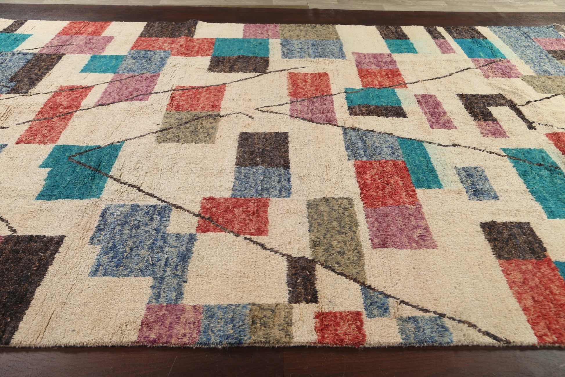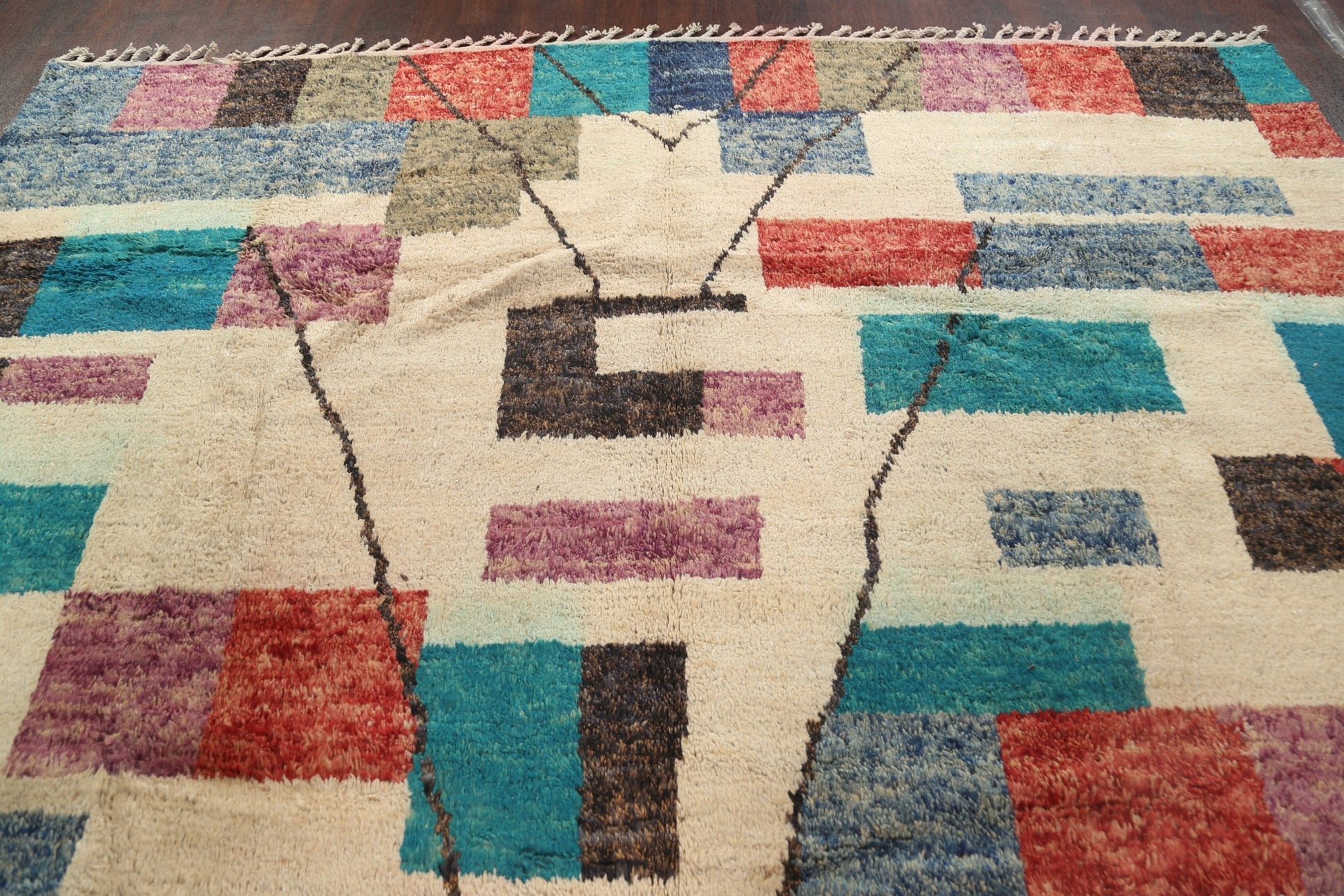 A Beautiful Genuine Morocco Moroccan rug is Hand Knotted by skillful weavers in Morocco with 100% Wool Material. This rug is in New, First Quality condition. dimensions are 14' 7'' X 9' 11'' in foot and 445 X 302 in centimeter. the primary color is Beige & Ivories.