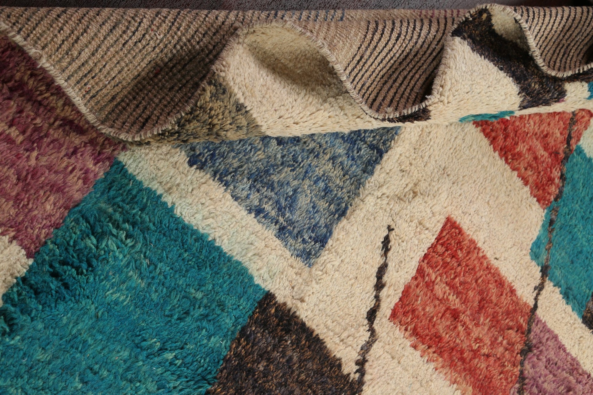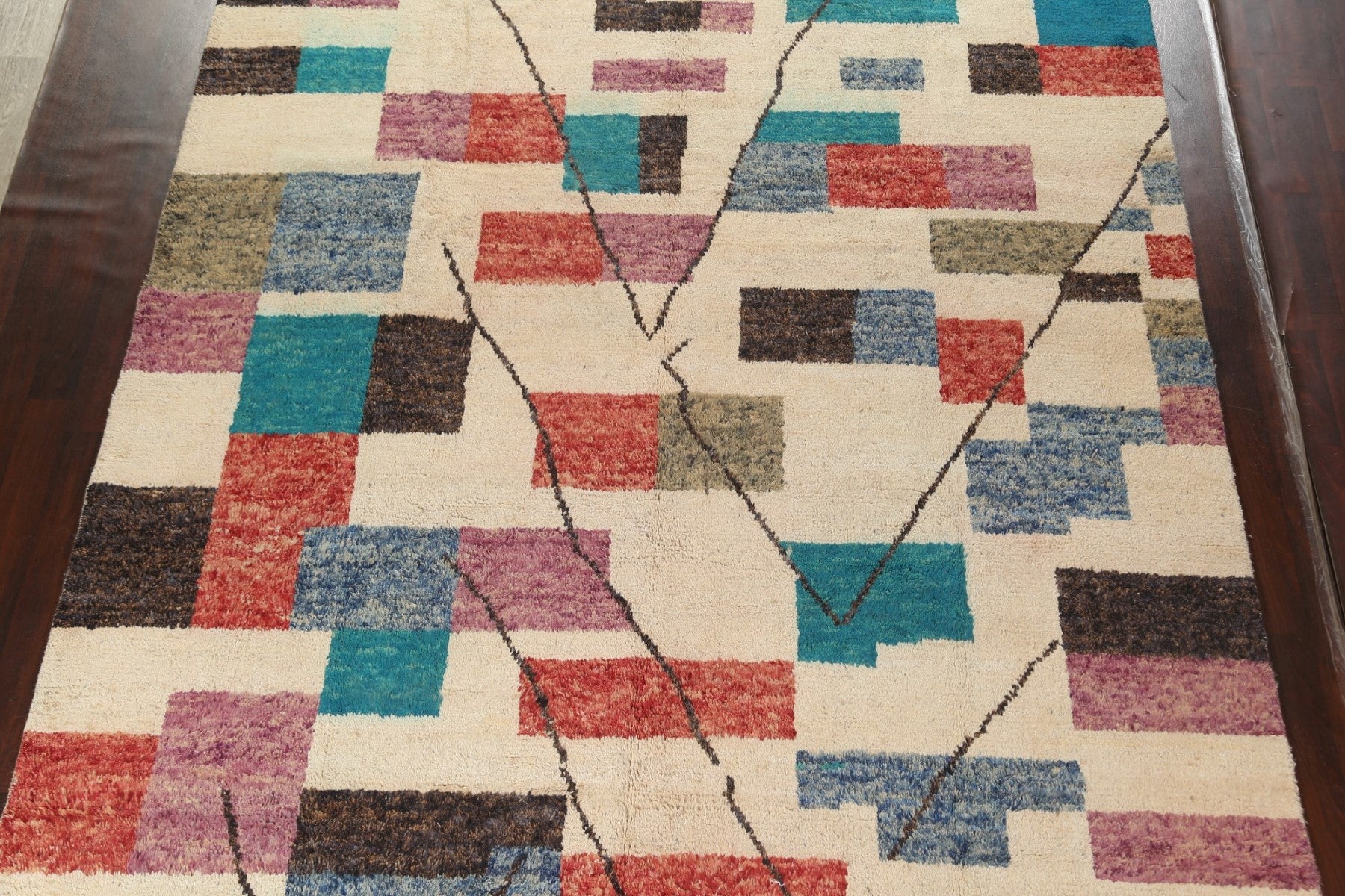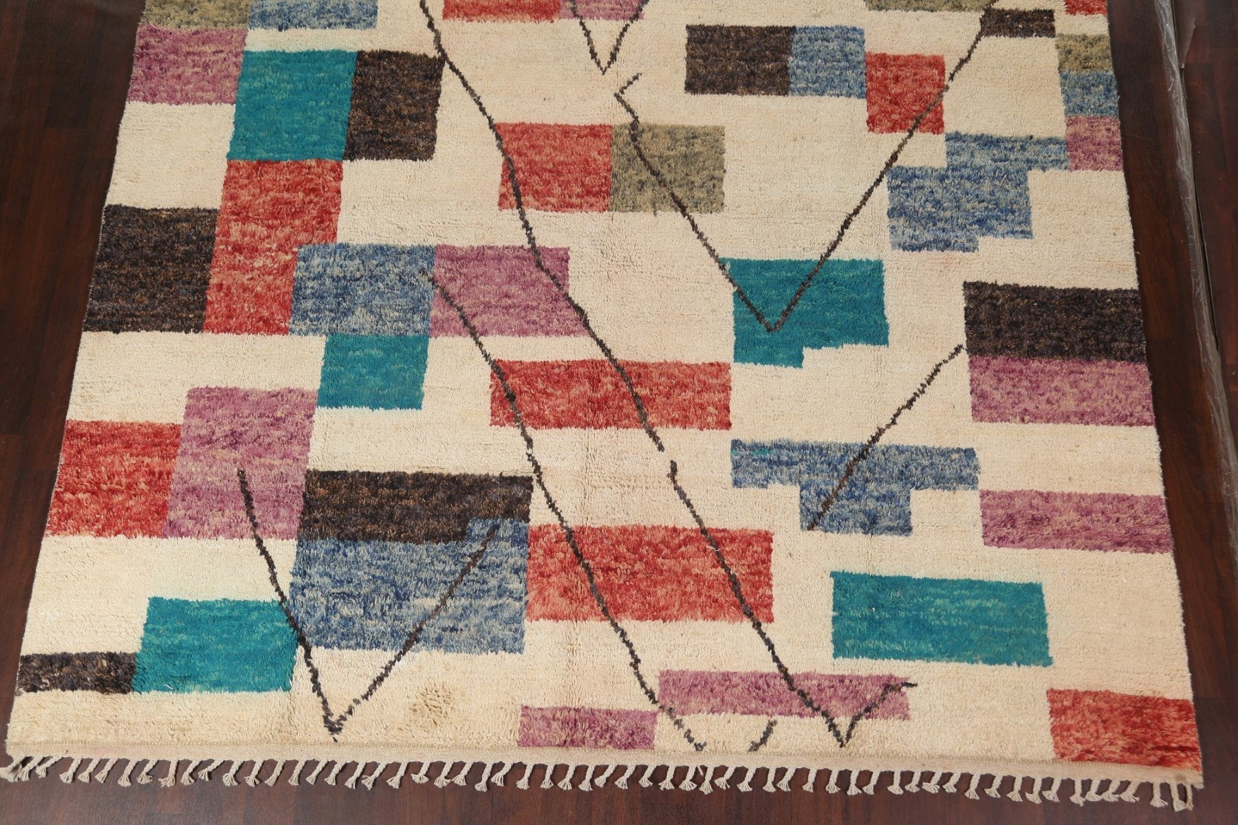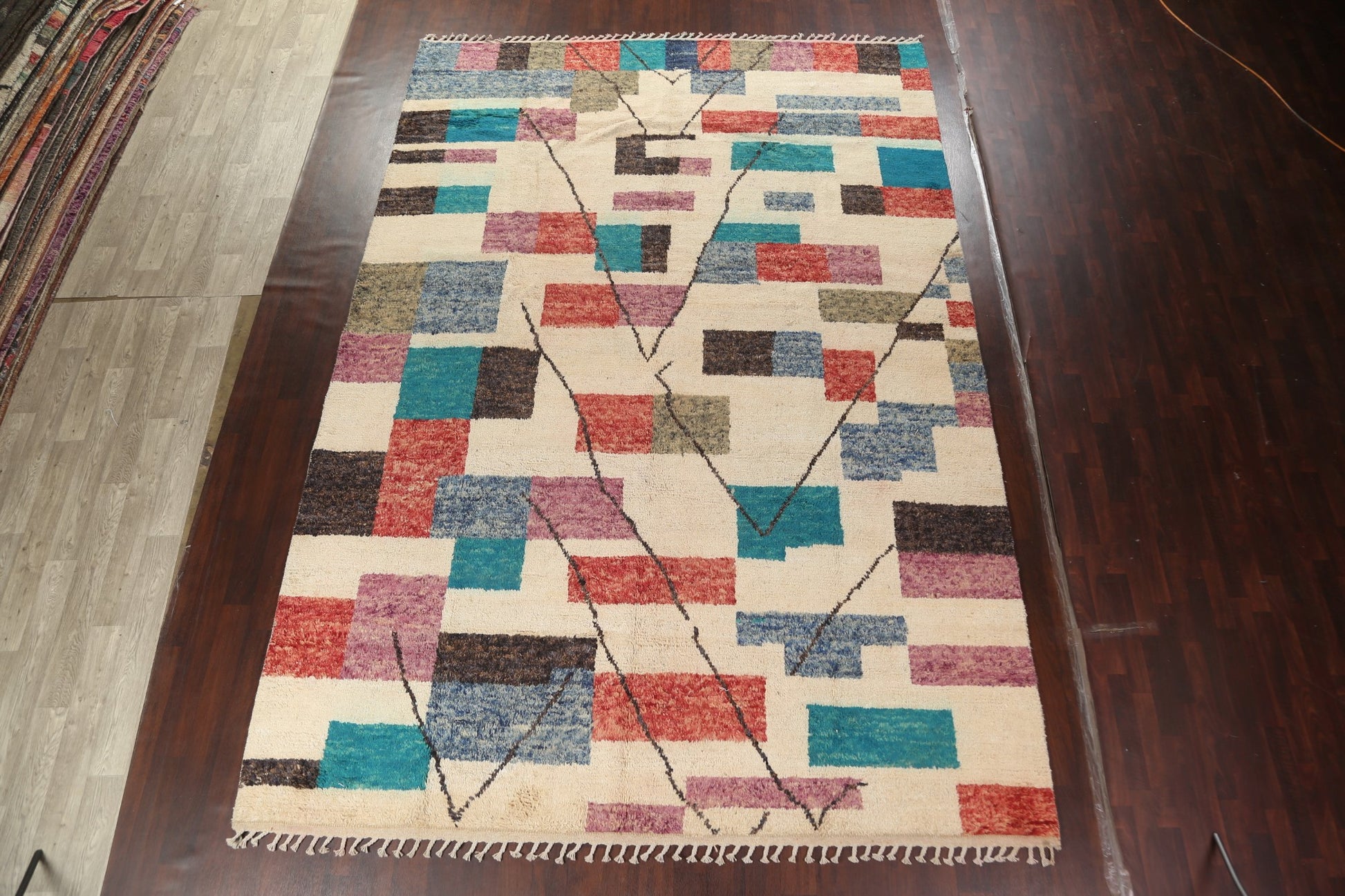 A Beautiful Genuine Morocco Moroccan rug is Hand Knotted by skillful weavers in Morocco with 100% Wool Material. This rug is in New, First Quality condition. dimensions are 14' 7'' X 9' 11'' in foot and 445 X 302 in centimeter. the primary color is Beige & Ivories.