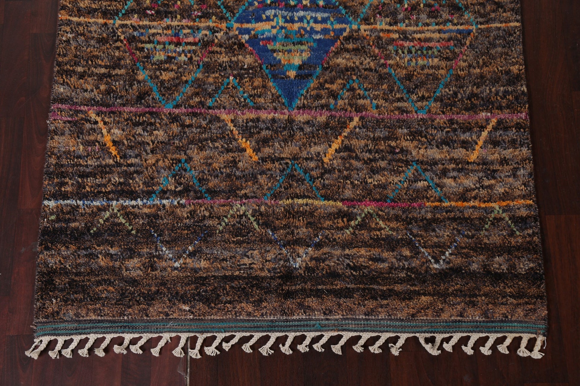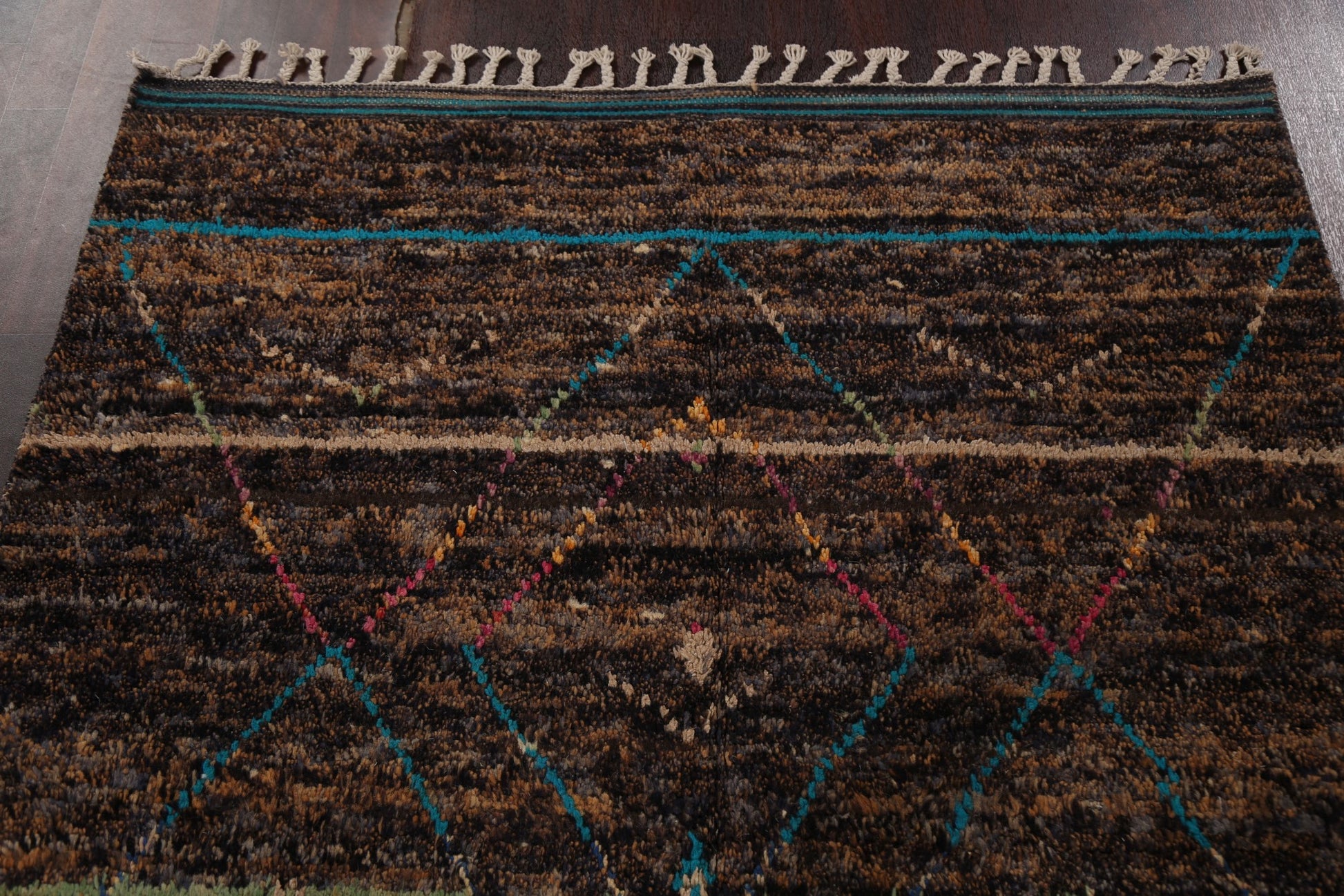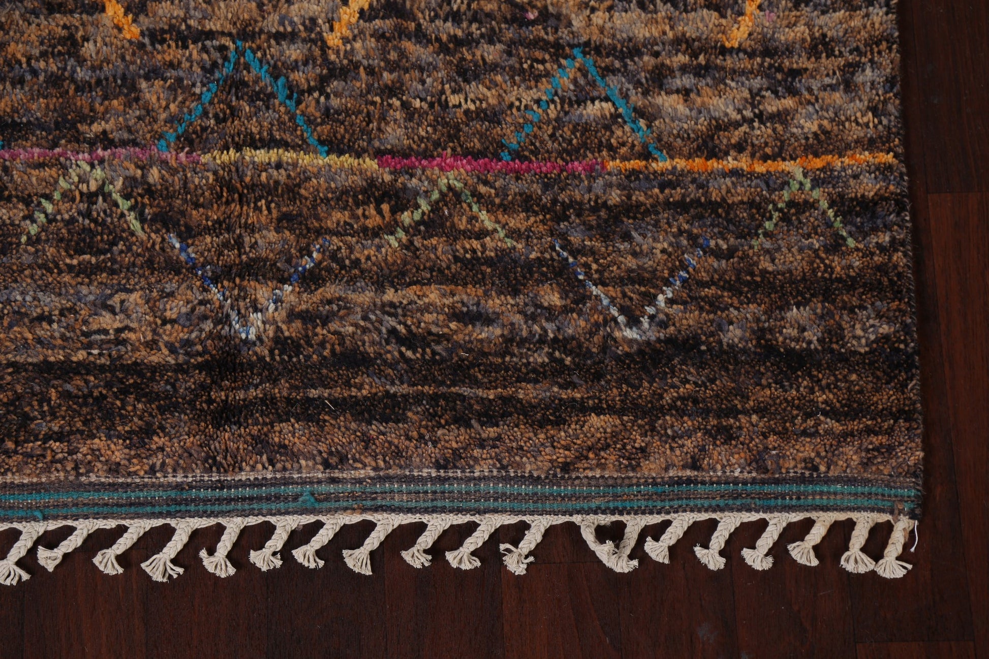 A Beautiful Genuine Morocco Moroccan rug is Hand Knotted by skillful weavers in Morocco with 100% Wool Material. This rug is in New, First Quality condition. dimensions are 8' 11'' X 5' 0'' in foot and 272 X 152 in centimeter. the primary color is Brown.