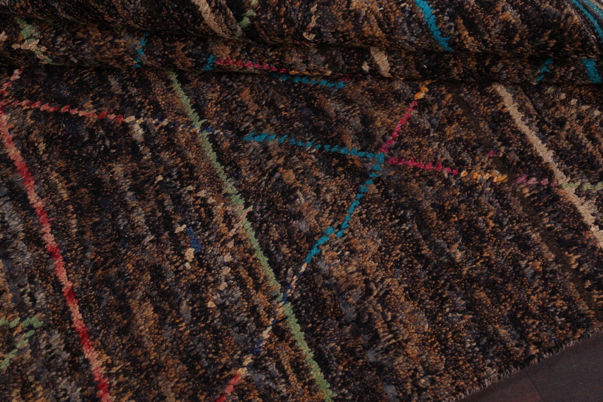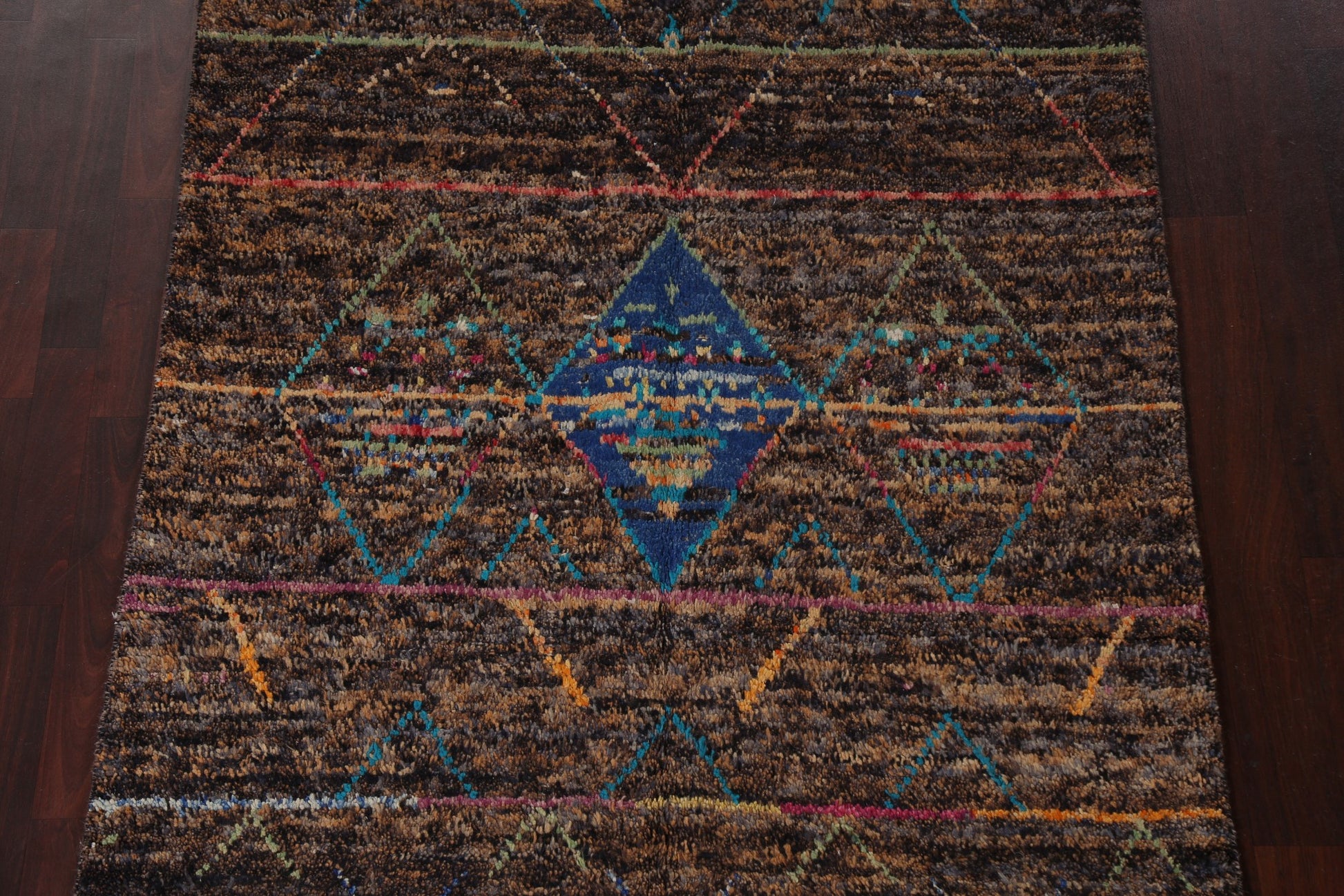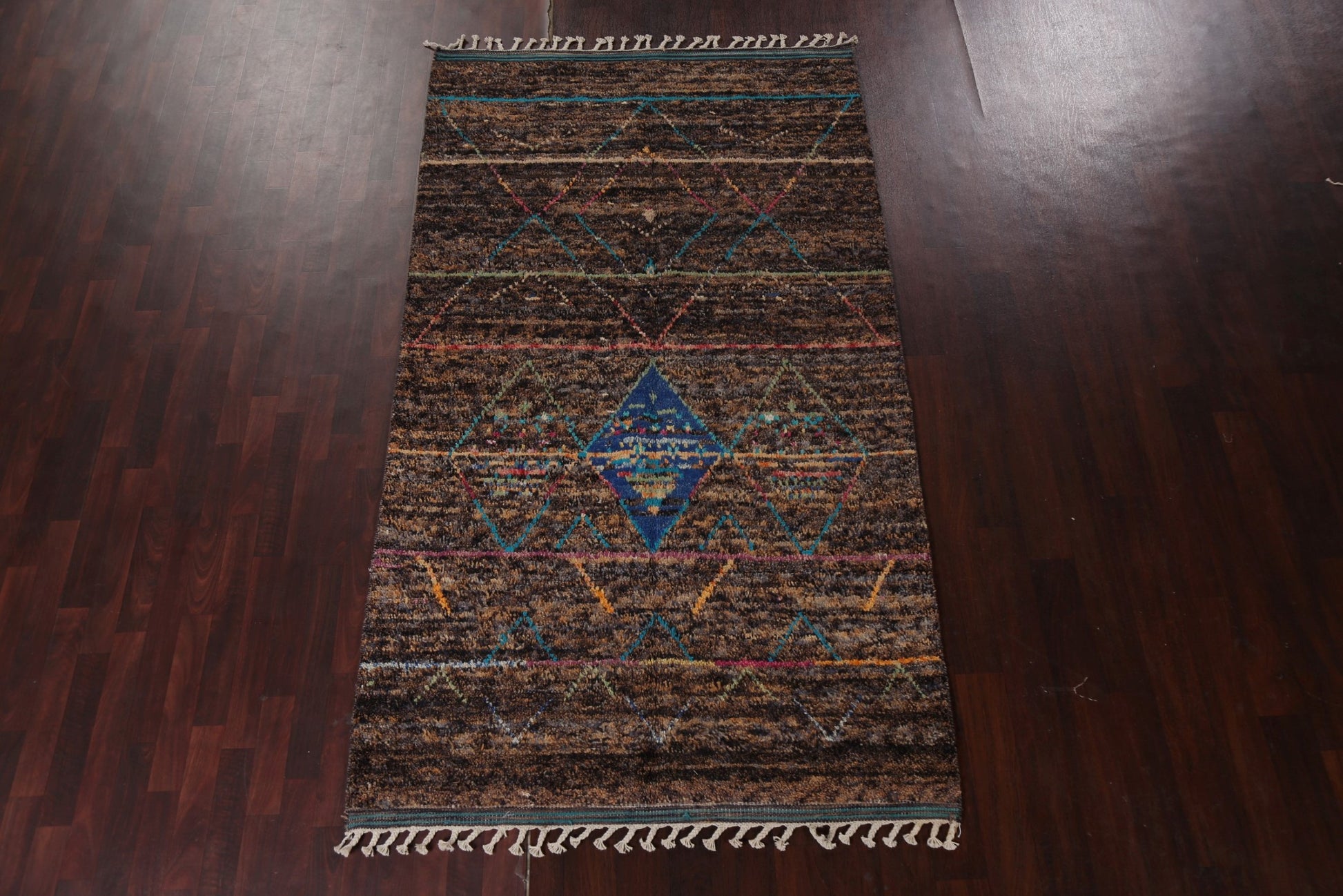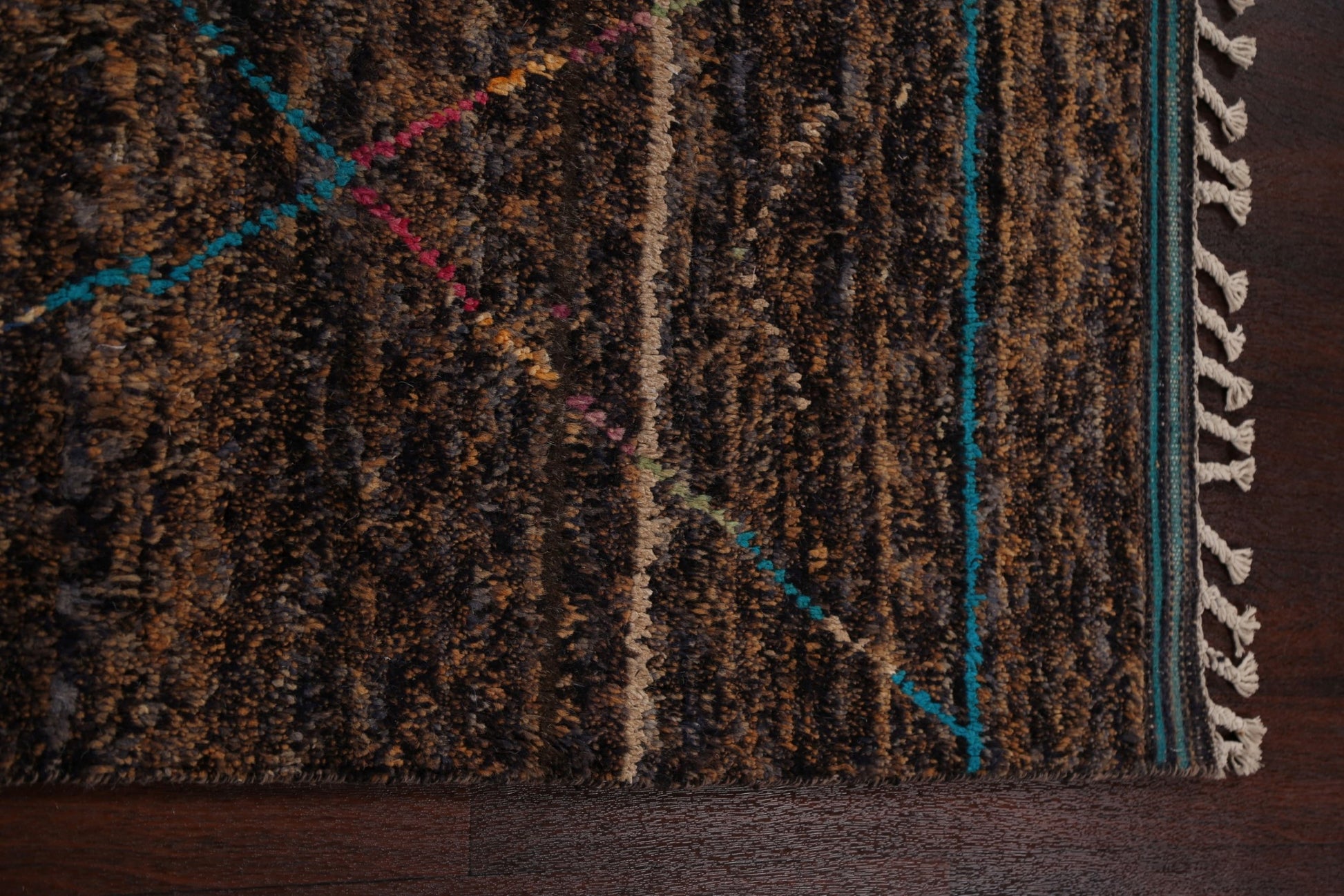 A Beautiful Genuine Morocco Moroccan rug is Hand Knotted by skillful weavers in Morocco with 100% Wool Material. This rug is in New, First Quality condition. dimensions are 8' 11'' X 5' 0'' in foot and 272 X 152 in centimeter. the primary color is Brown.