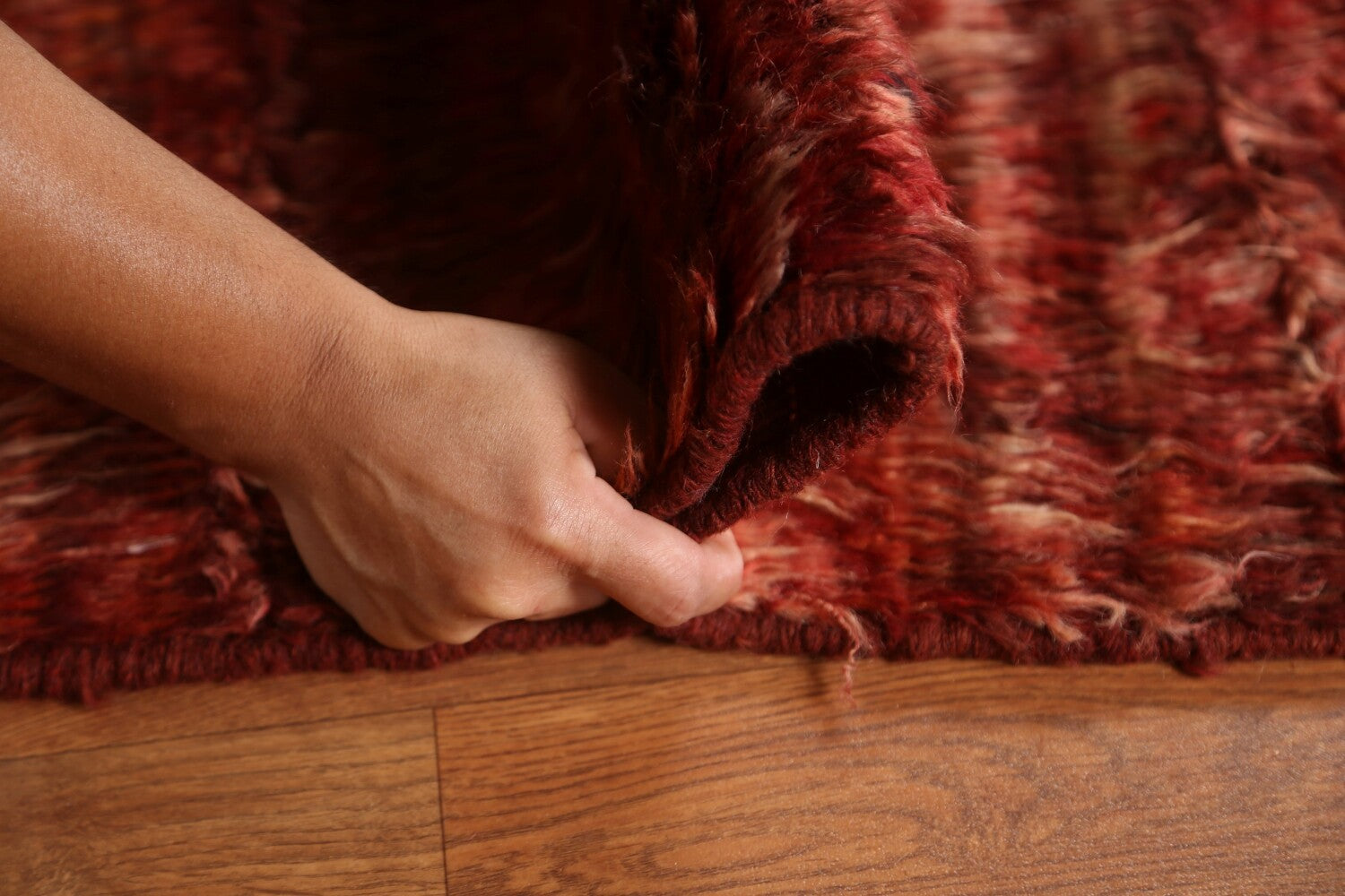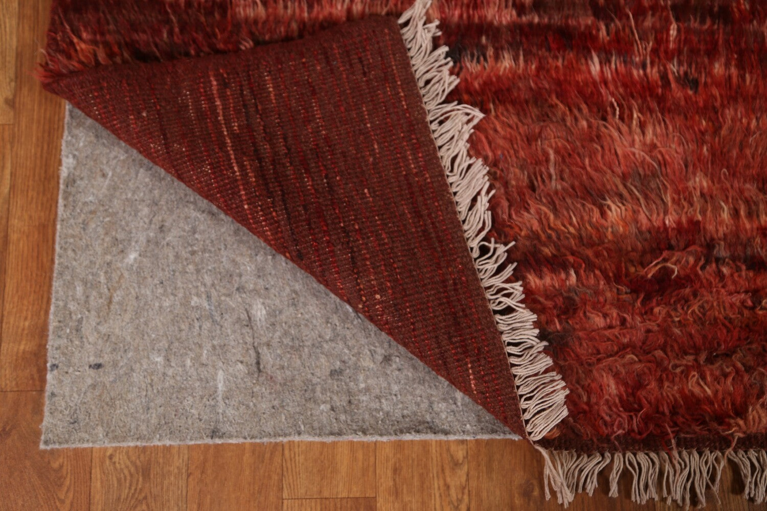 A Beautiful Genuine Pakistan Moroccan rug is Hand Knotted by skillful weavers in Pakistan with 100% Wool Material. This rug is in condition. dimensions are 9' 7'' X 6' 5'' in foot and 292 X 196 in centimeter. the primary color is Red.