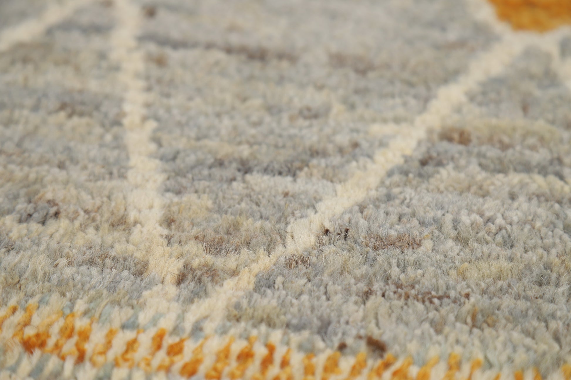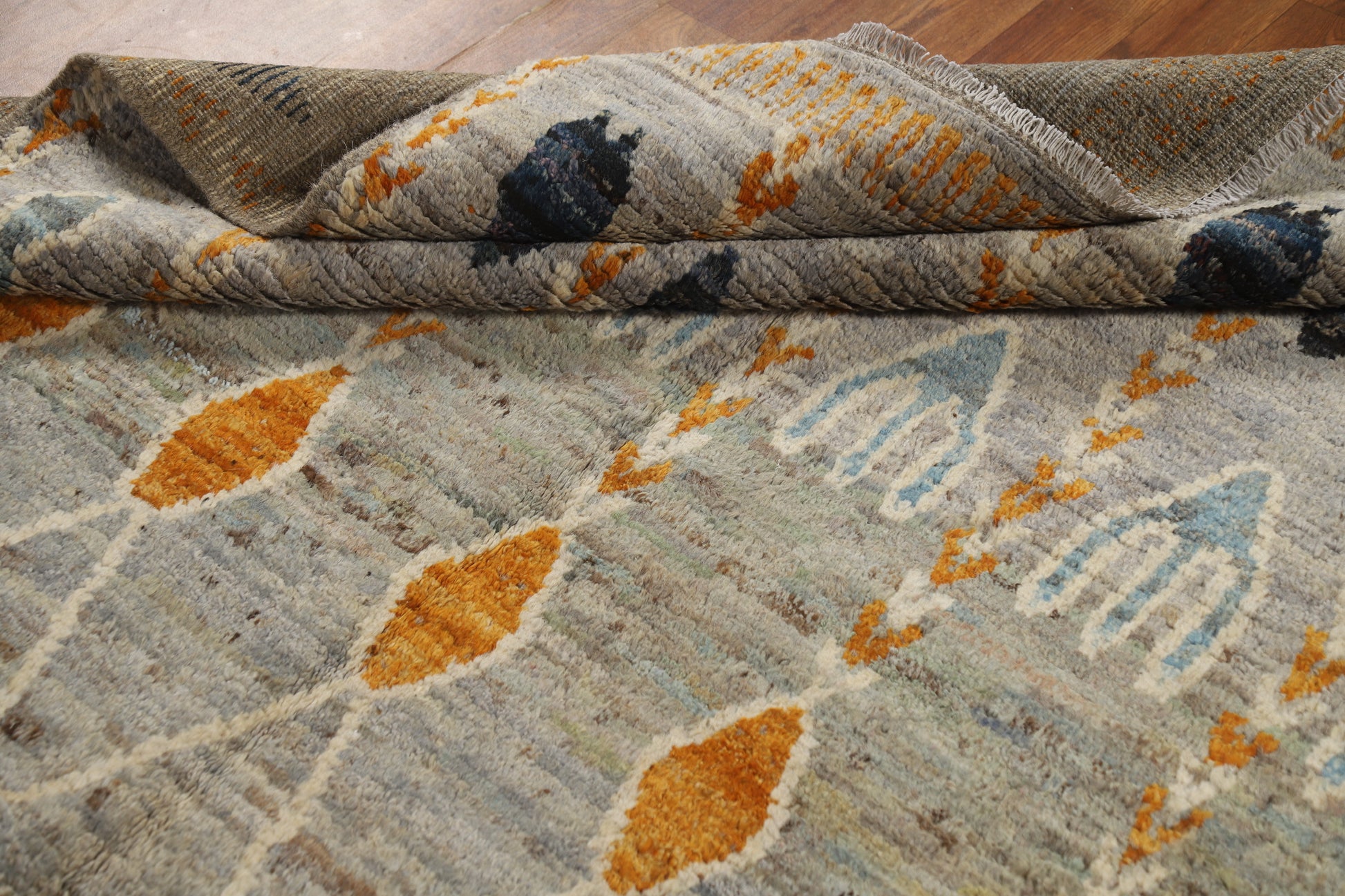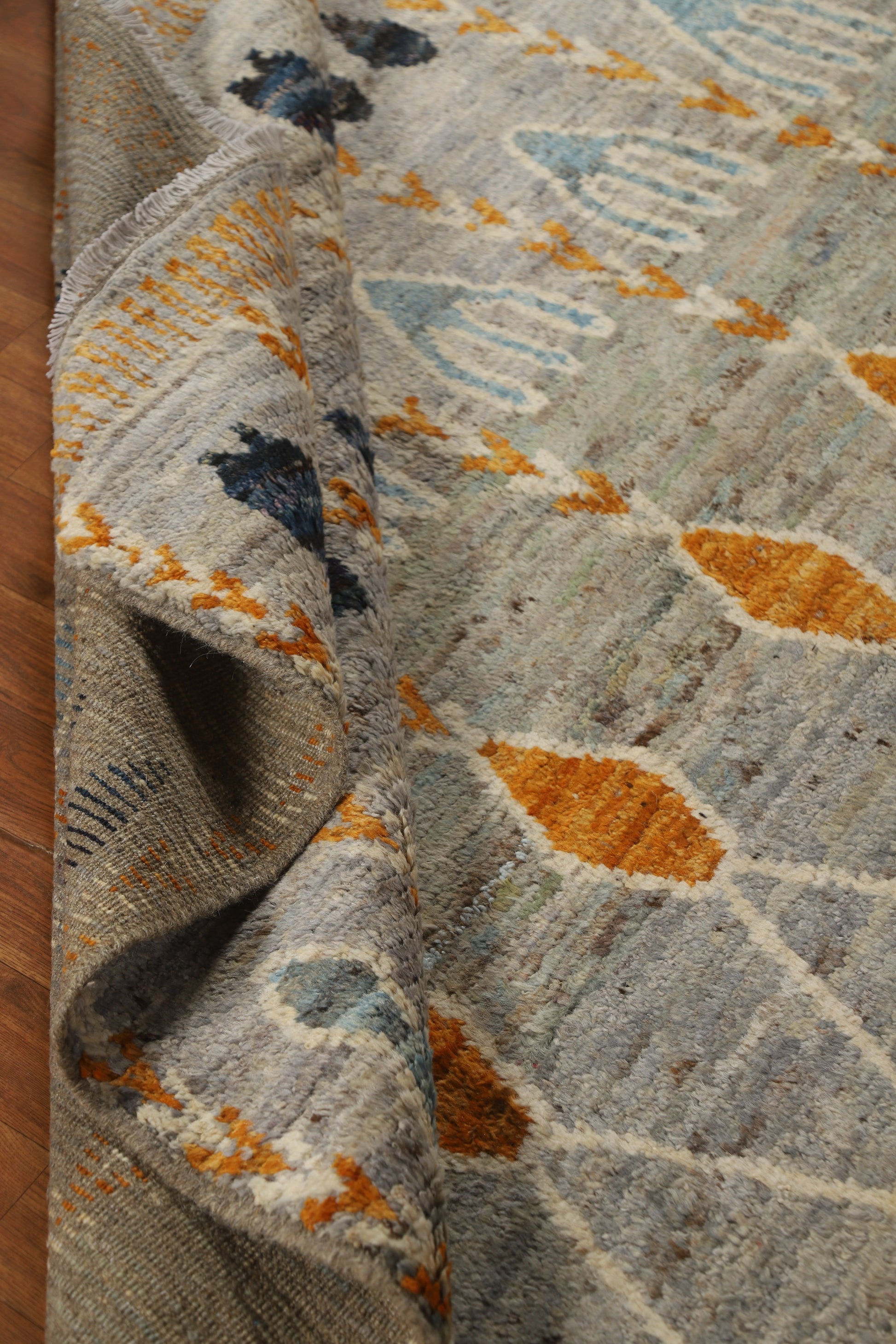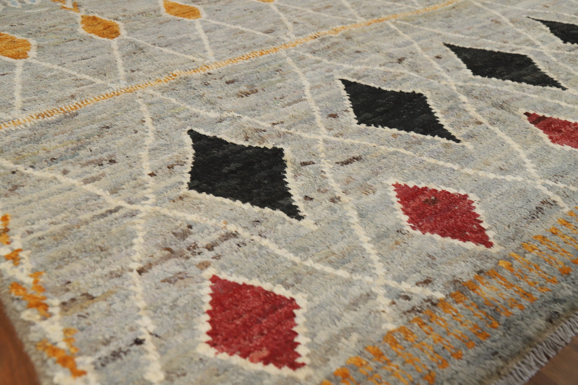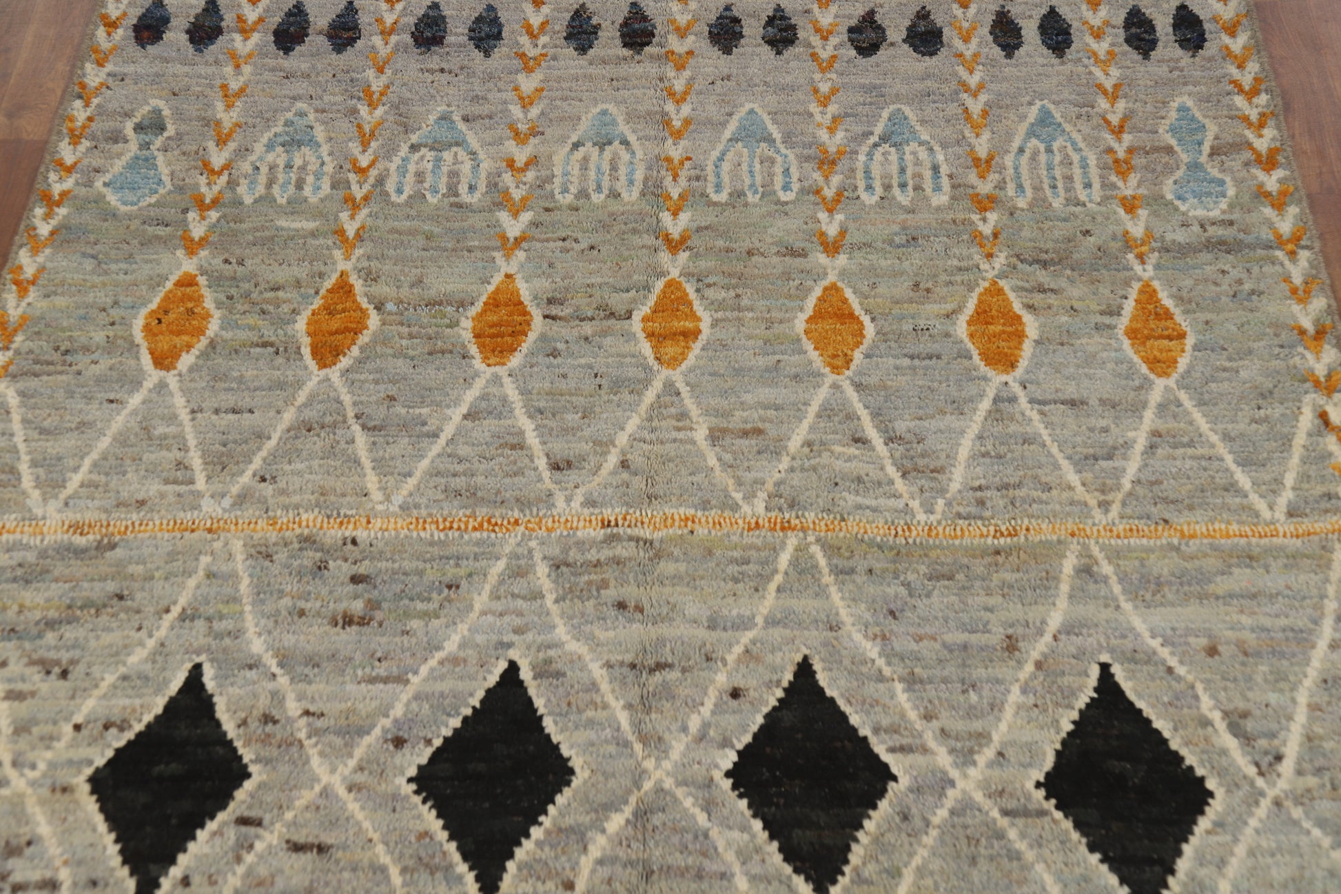 A Beautiful Genuine Pakistan Moroccan rug is Hand Knotted by skillful weavers in Pakistan with 100% Wool Material. This rug is in New, First Quality condition. dimensions are 8' 0'' X 6' 0'' in foot and 244 X 183 in centimeter. the primary color is Greys & Charcoal.