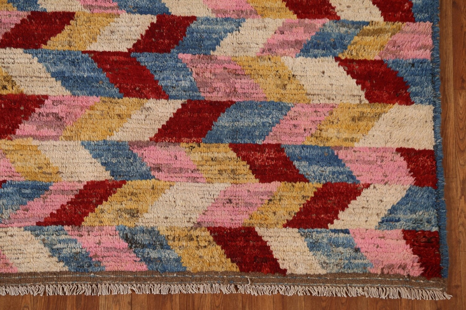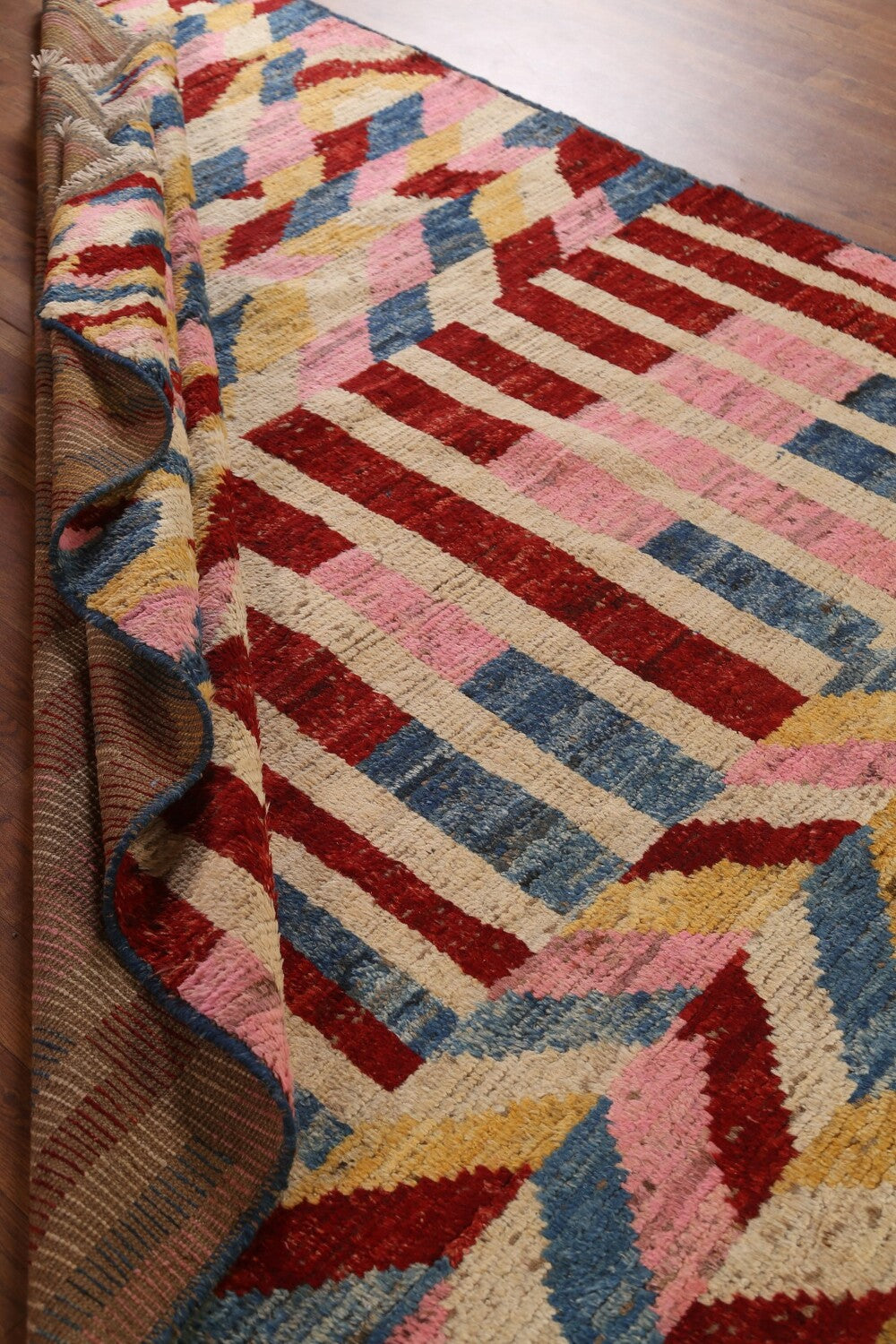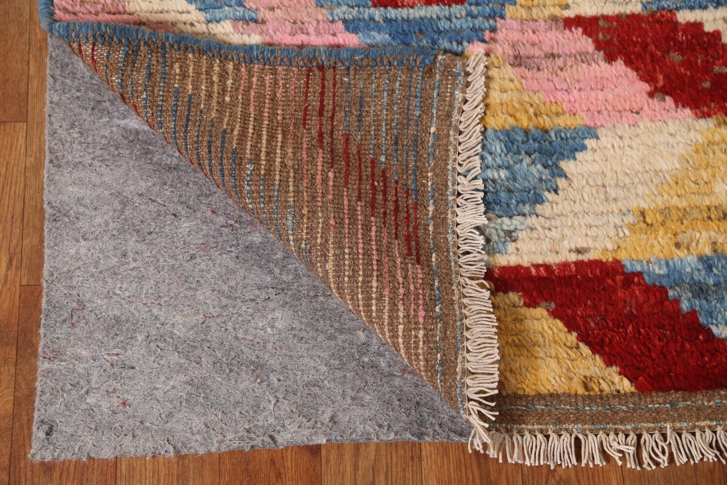 A Beautiful Genuine Pakistan Moroccan rug is Hand Knotted by skillful weavers in Pakistan with 100% Wool Material. This rug is in condition. dimensions are 10' 3'' X 6' 7'' in foot and 312 X 201 in centimeter. the primary color is Multi-Colored.