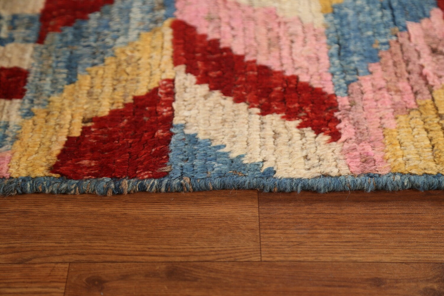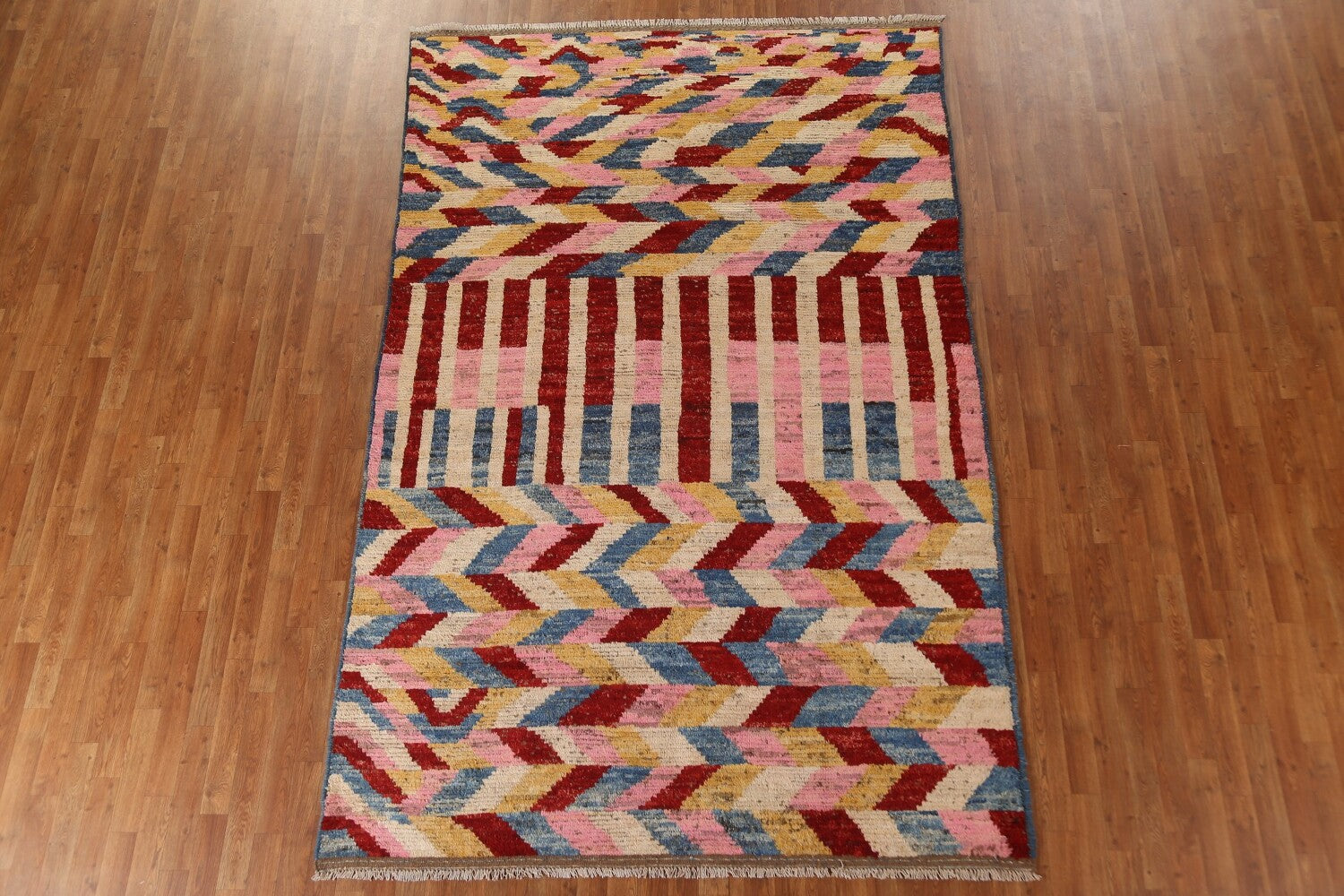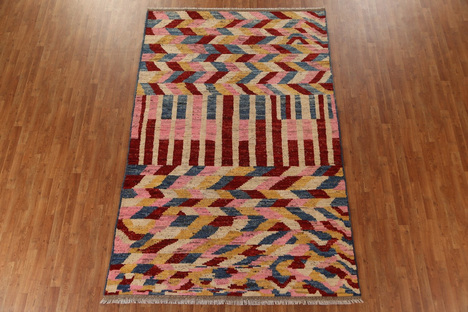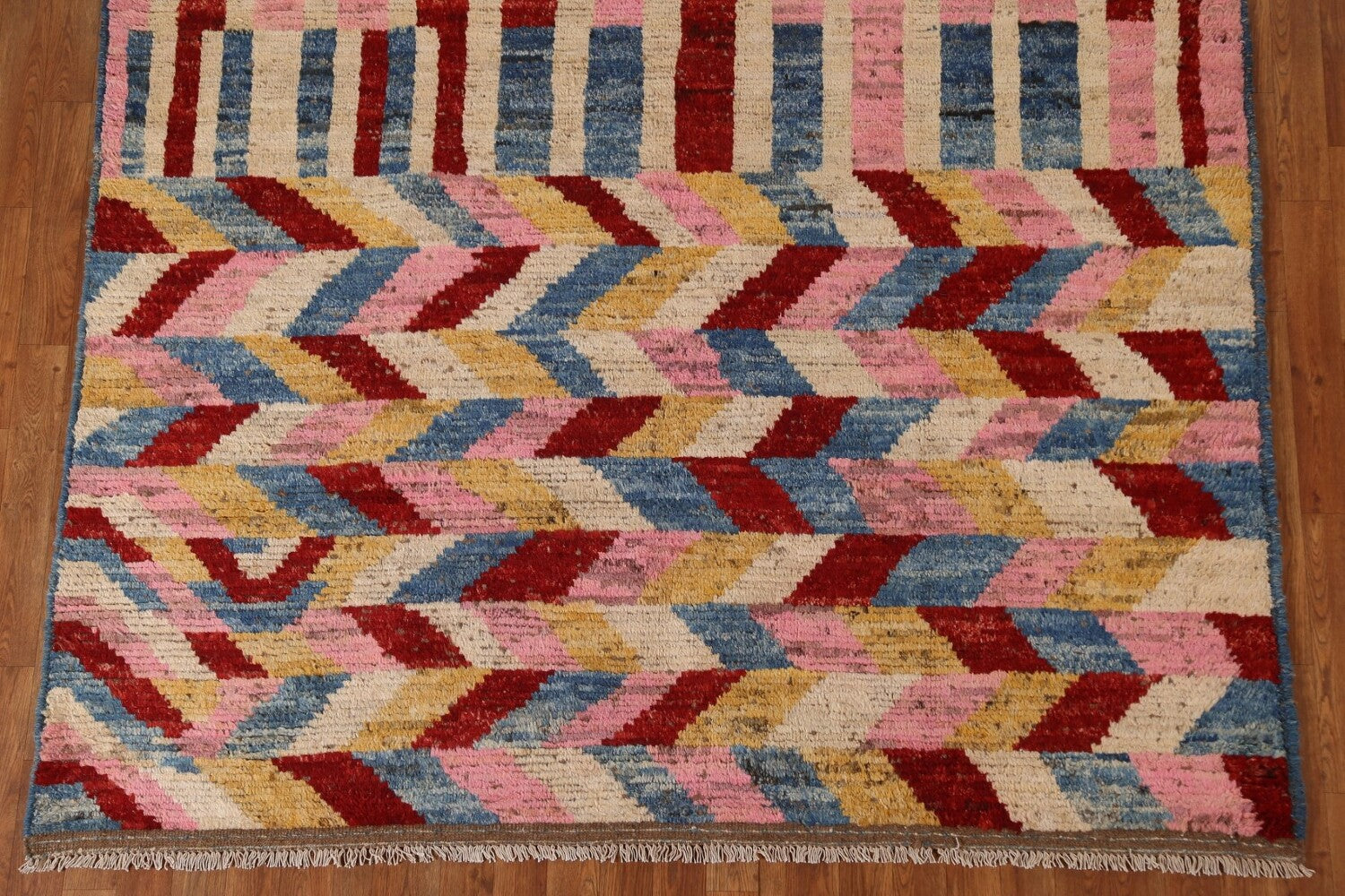 A Beautiful Genuine Pakistan Moroccan rug is Hand Knotted by skillful weavers in Pakistan with 100% Wool Material. This rug is in condition. dimensions are 10' 3'' X 6' 7'' in foot and 312 X 201 in centimeter. the primary color is Multi-Colored.
