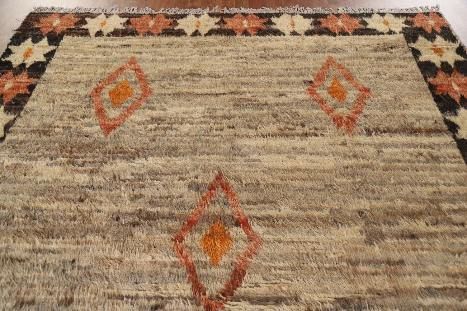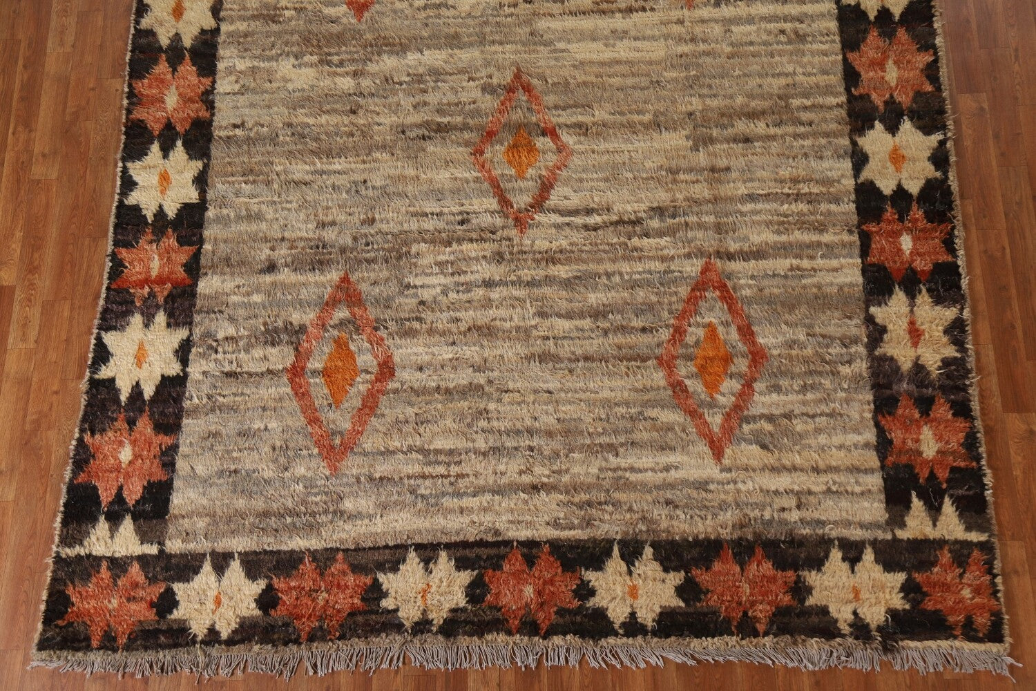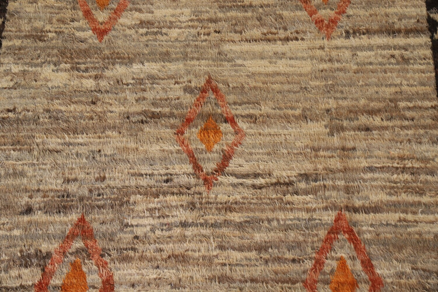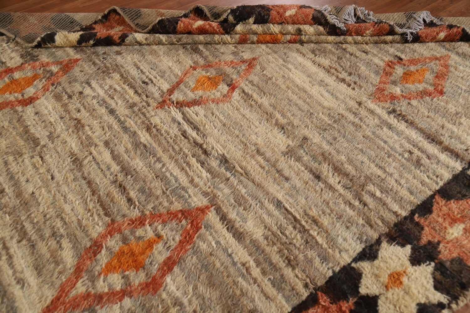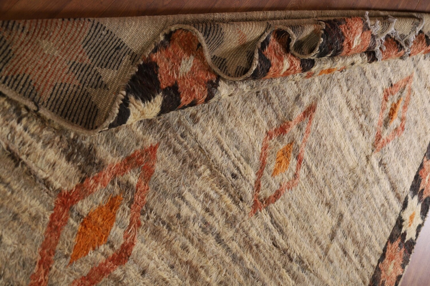 A Beautiful Genuine Pakistan Moroccan rug is Hand Knotted by skillful weavers in Pakistan with 100% Wool Material. This rug is in condition. dimensions are 9' 10'' X 8' 2'' in foot and 300 X 249 in centimeter. the primary color is Beige & Ivories.