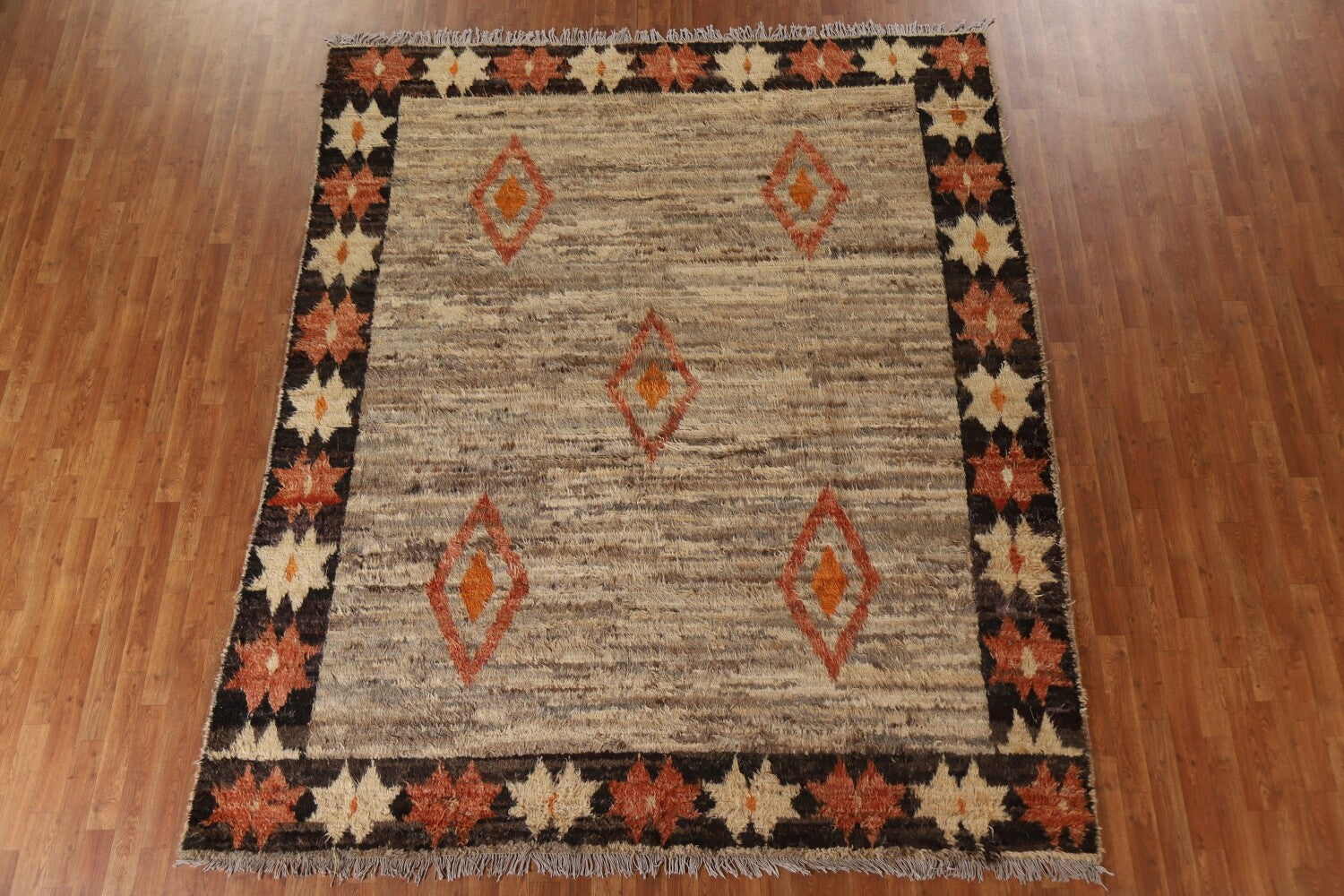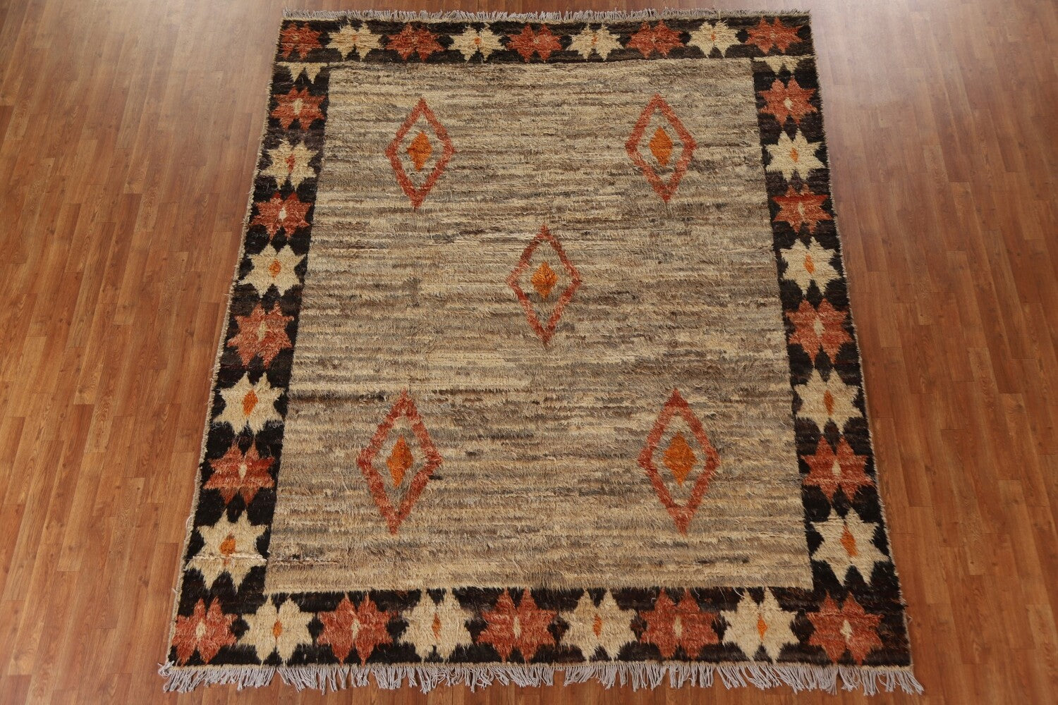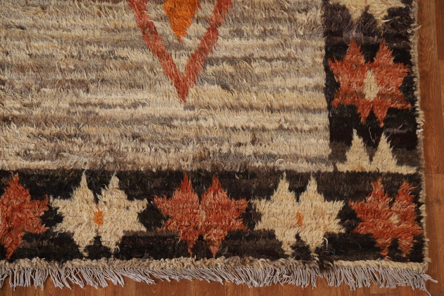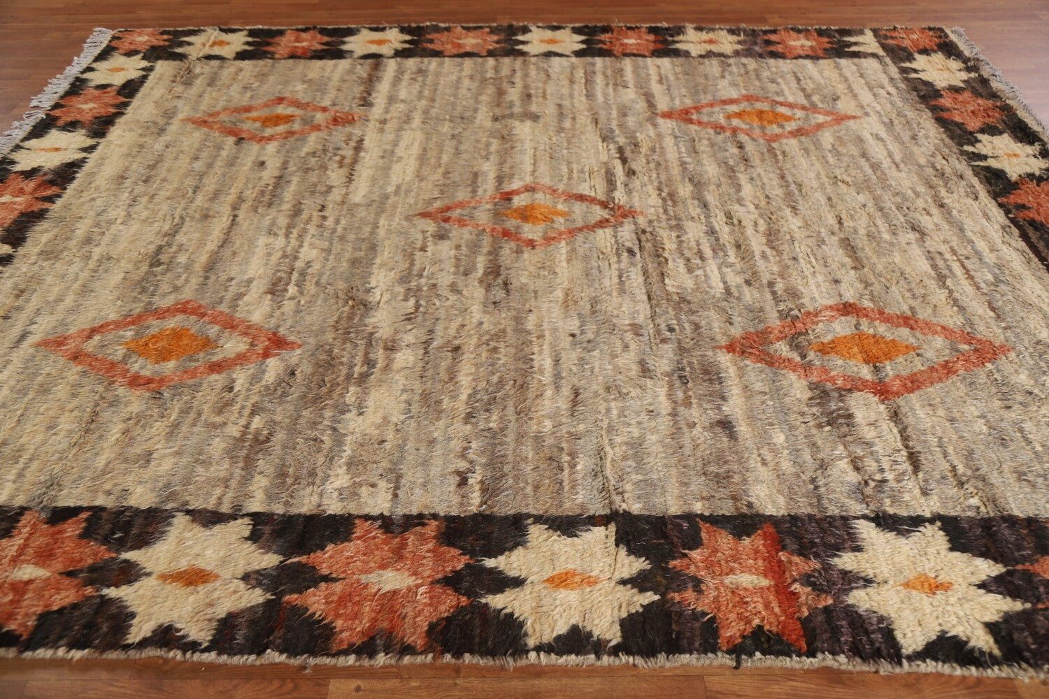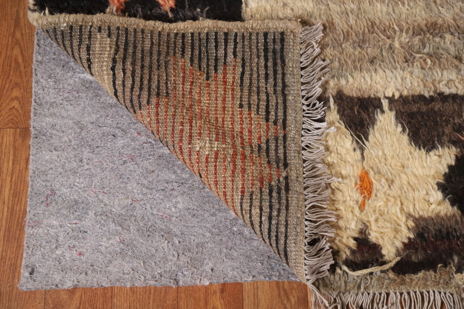 A Beautiful Genuine Pakistan Moroccan rug is Hand Knotted by skillful weavers in Pakistan with 100% Wool Material. This rug is in condition. dimensions are 9' 10'' X 8' 2'' in foot and 300 X 249 in centimeter. the primary color is Beige & Ivories.
