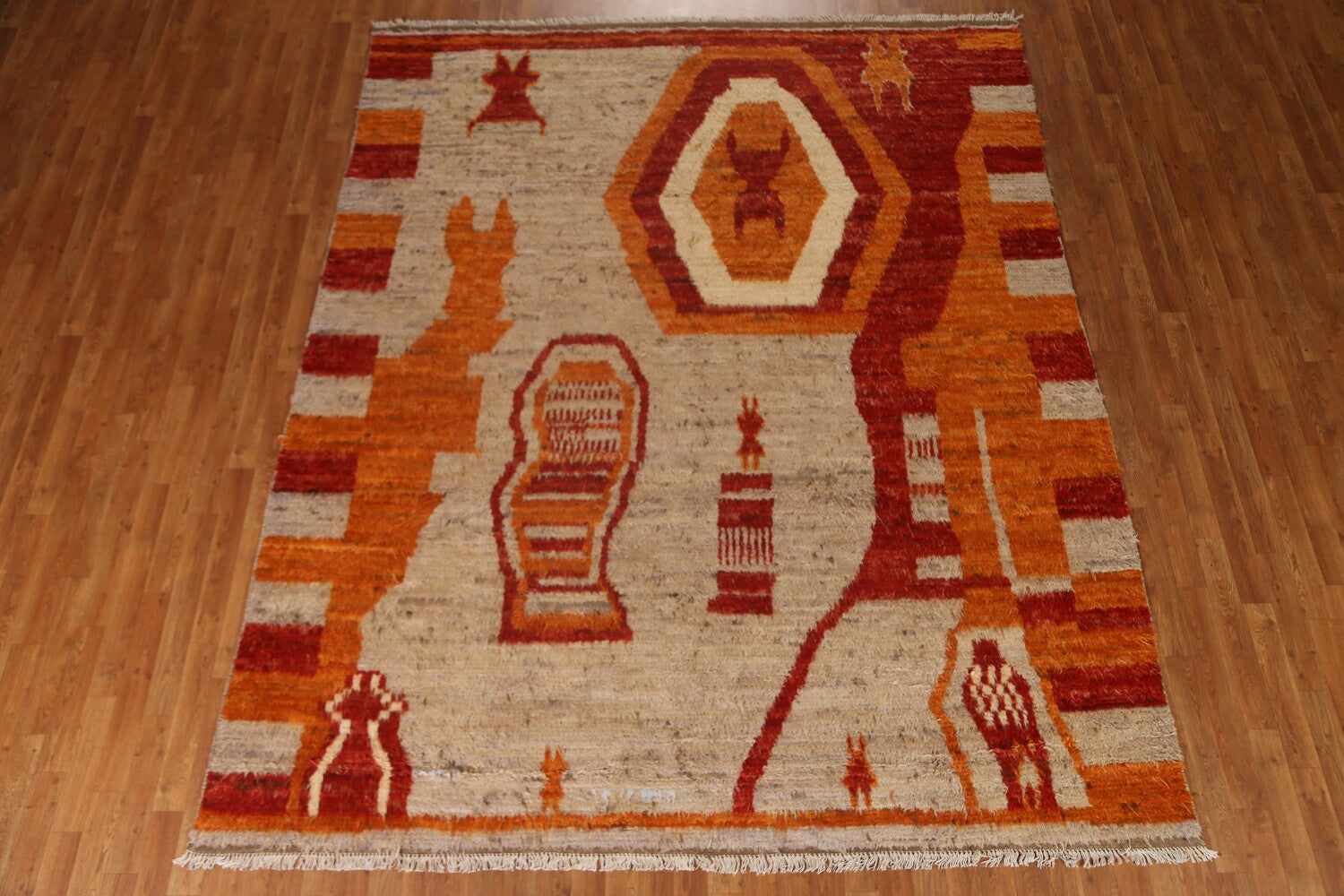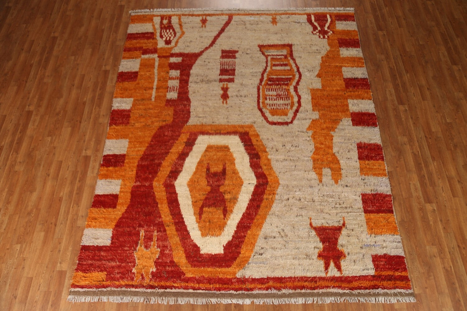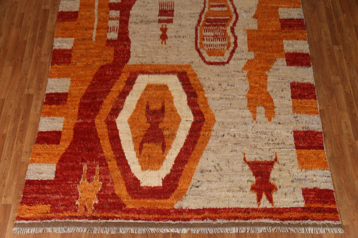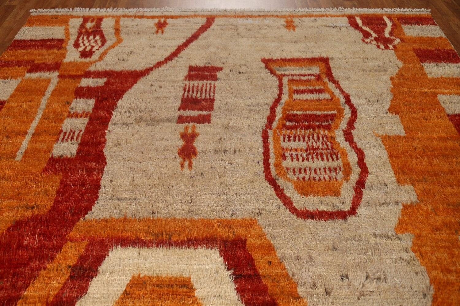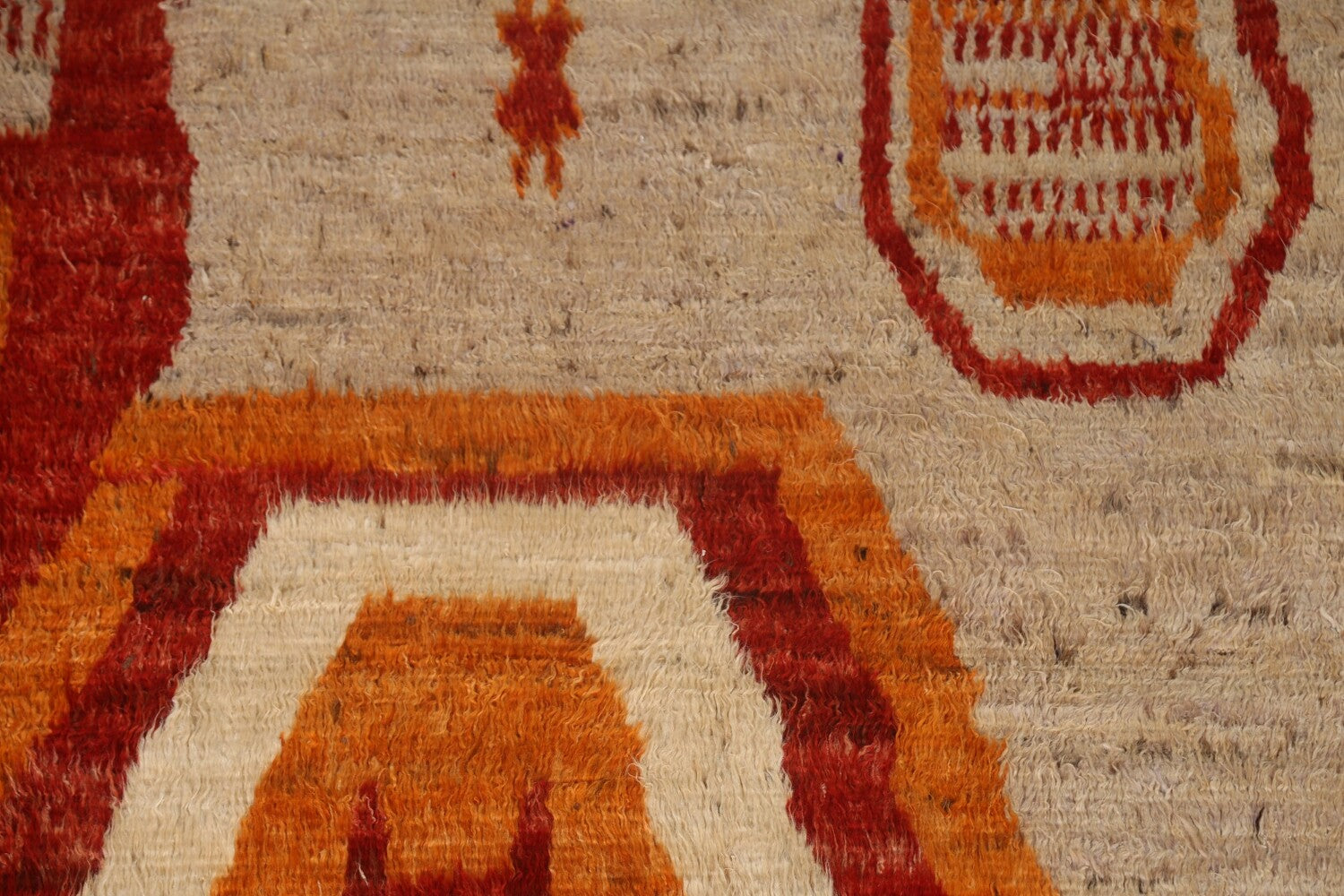 A Beautiful Genuine Pakistan Moroccan rug is Hand Knotted by skillful weavers in Pakistan with 100% Wool Material. This rug is in condition. dimensions are 10' 2'' X 8' 1'' in foot and 310 X 246 in centimeter. the primary color is Beige & Ivories.