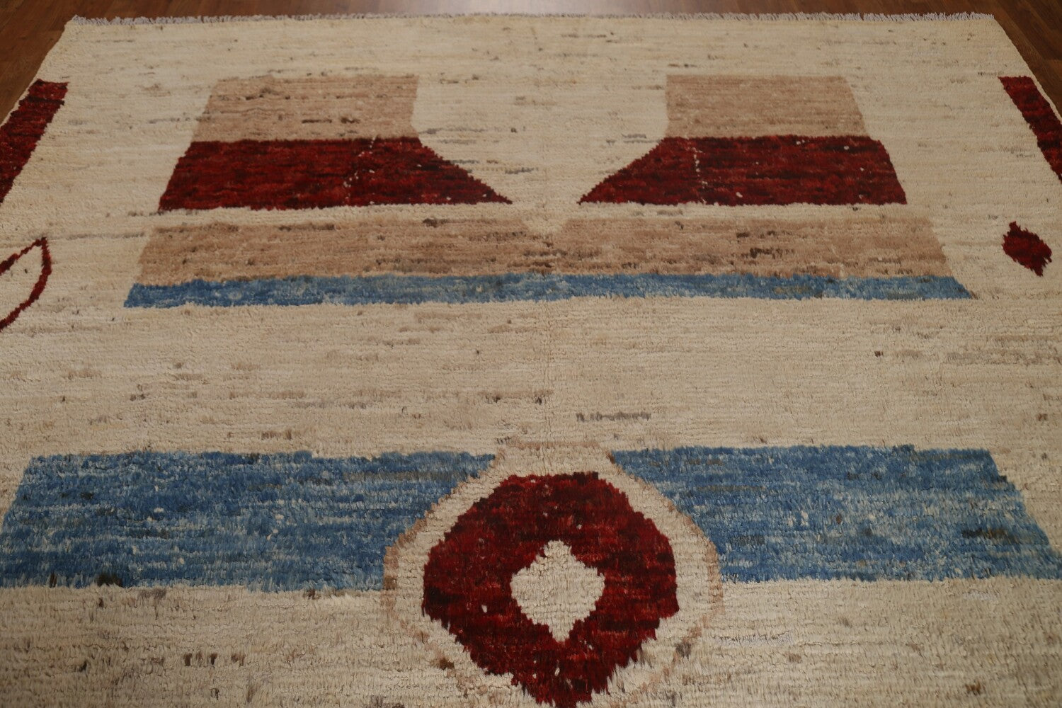 A Beautiful Genuine Pakistan Moroccan rug is Hand Knotted by skillful weavers in Pakistan with 100% Wool Material. This rug is in condition. dimensions are 10' 1'' X 8' 3'' in foot and 307 X 251 in centimeter. the primary color is Beige & Ivories.