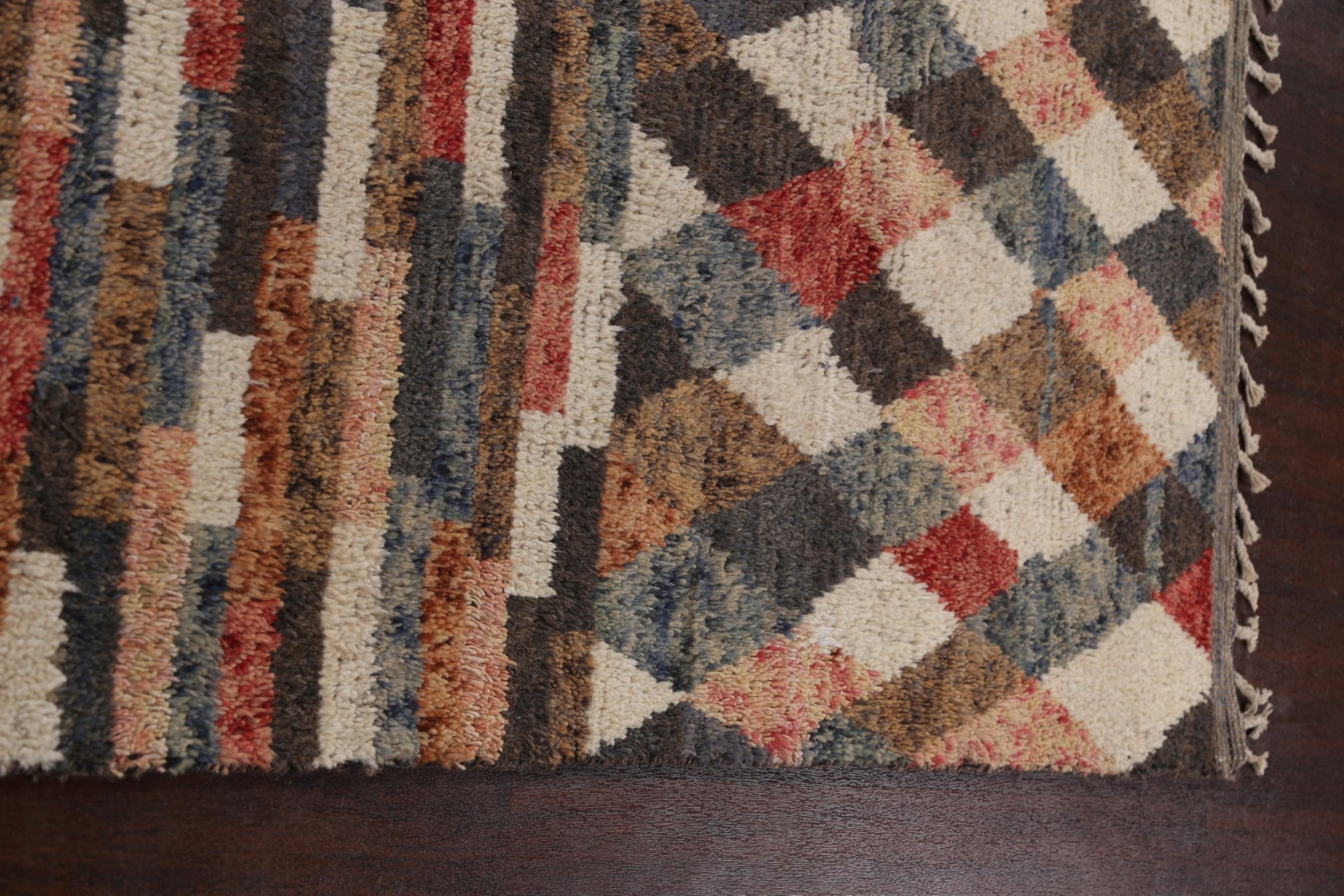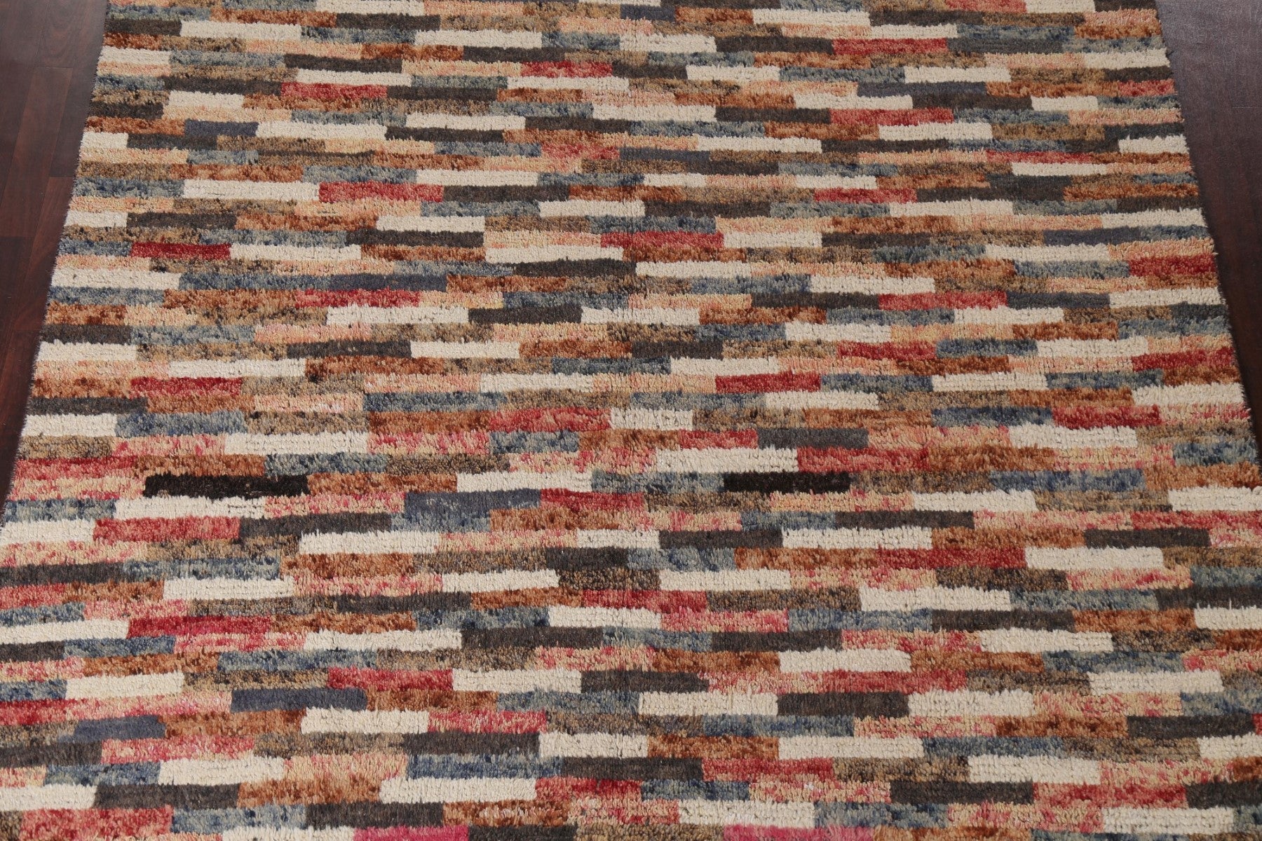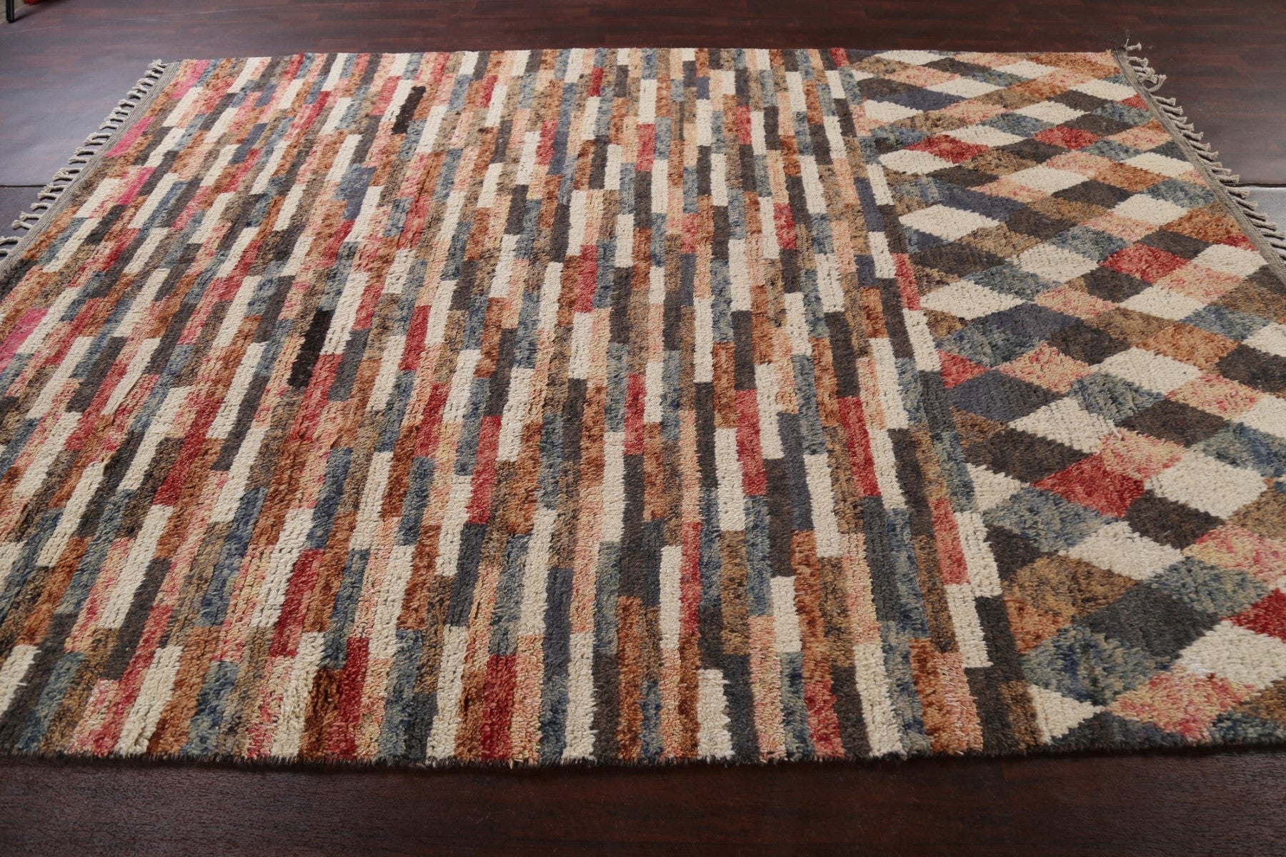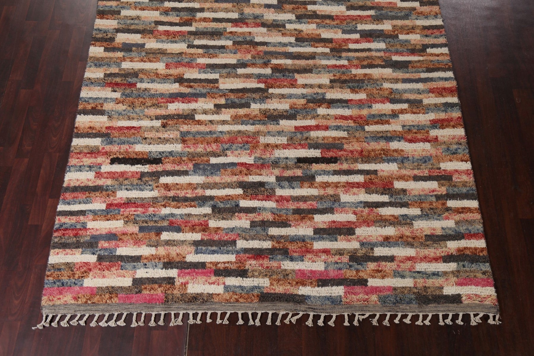 A Beautiful Genuine Morocco Moroccan rug is Hand Knotted by skillful weavers in Morocco with 100% Wool Material. This rug is in New, First Quality condition. dimensions are 10' 7'' X 7' 11'' in foot and 323 X 241 in centimeter. the primary color is Multi-Colored.