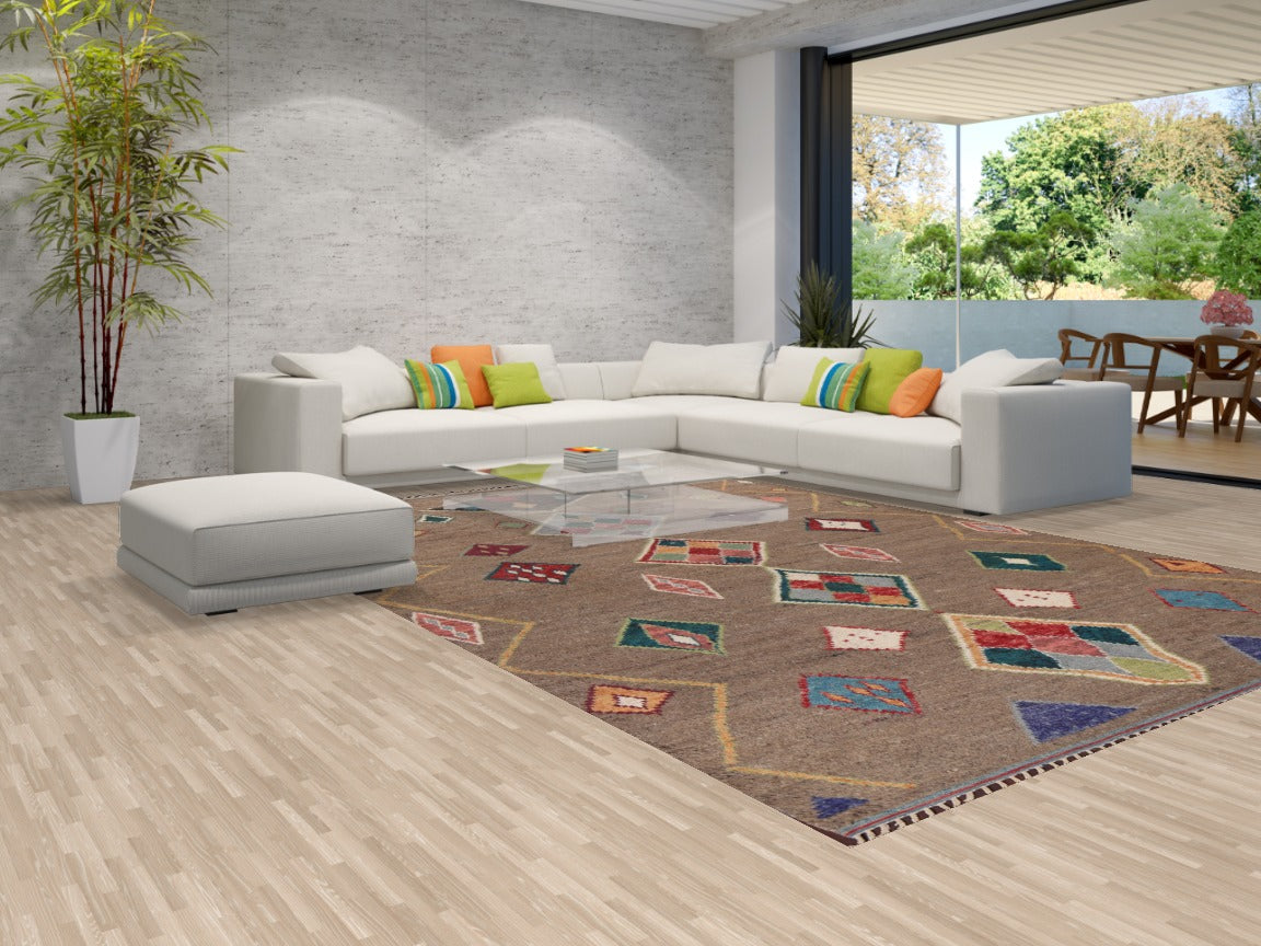 A Beautiful Genuine Morocco Moroccan rug is Hand Knotted by skillful weavers in Morocco with 100% Wool Material. This rug is in New, First Quality condition. dimensions are 13' 3'' X 9' 3'' in foot and 404 X 282 in centimeter. the primary color is Brown.