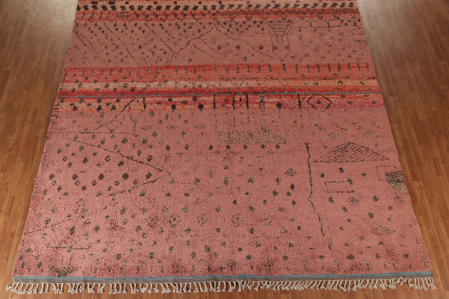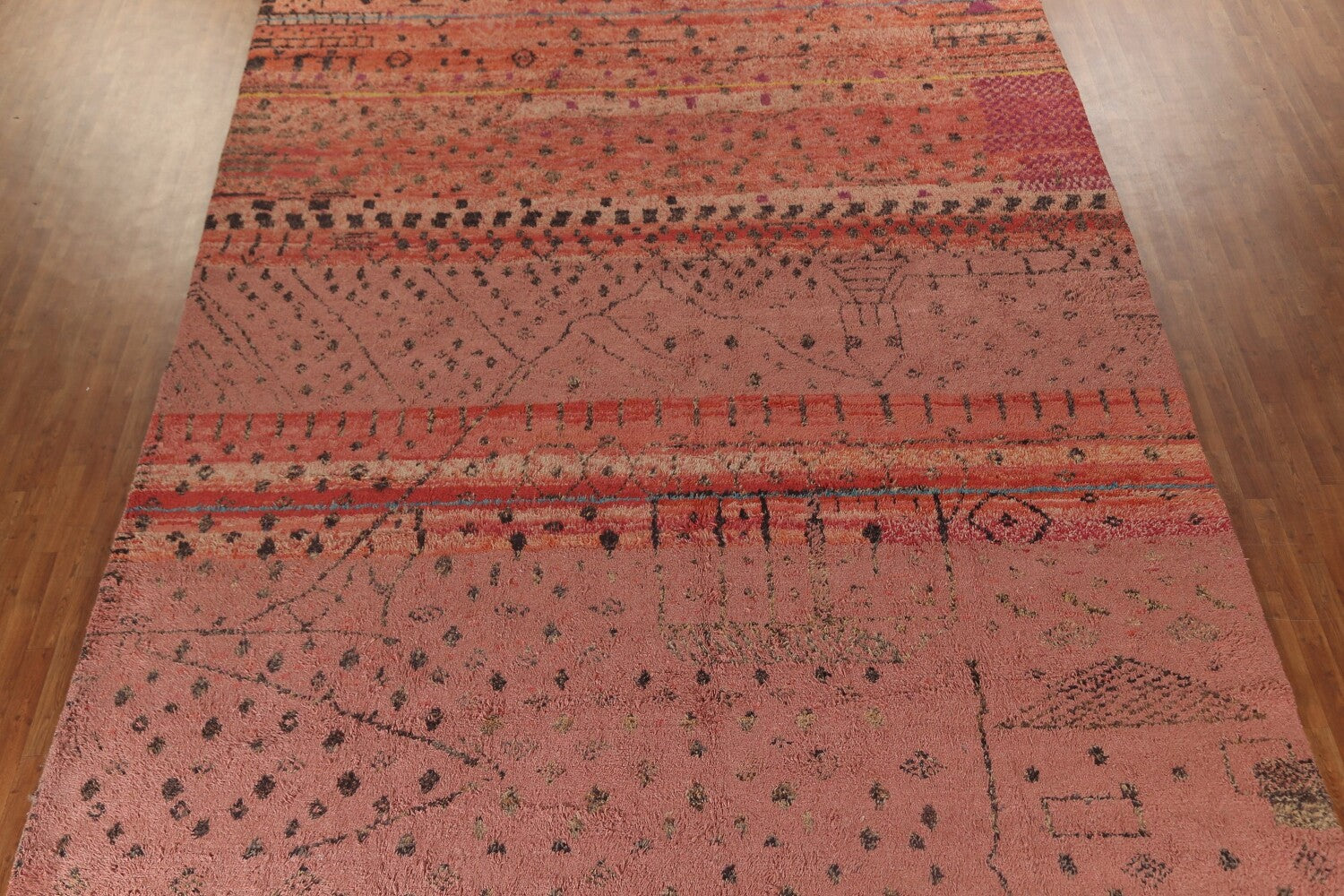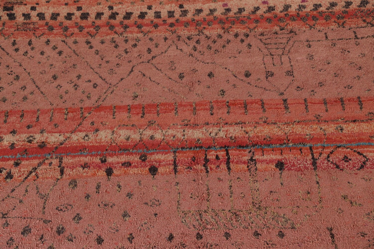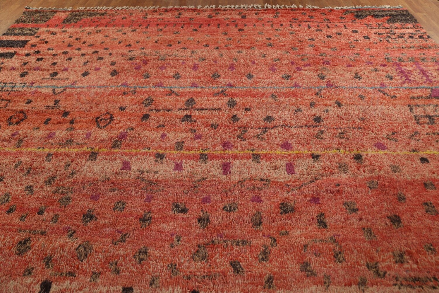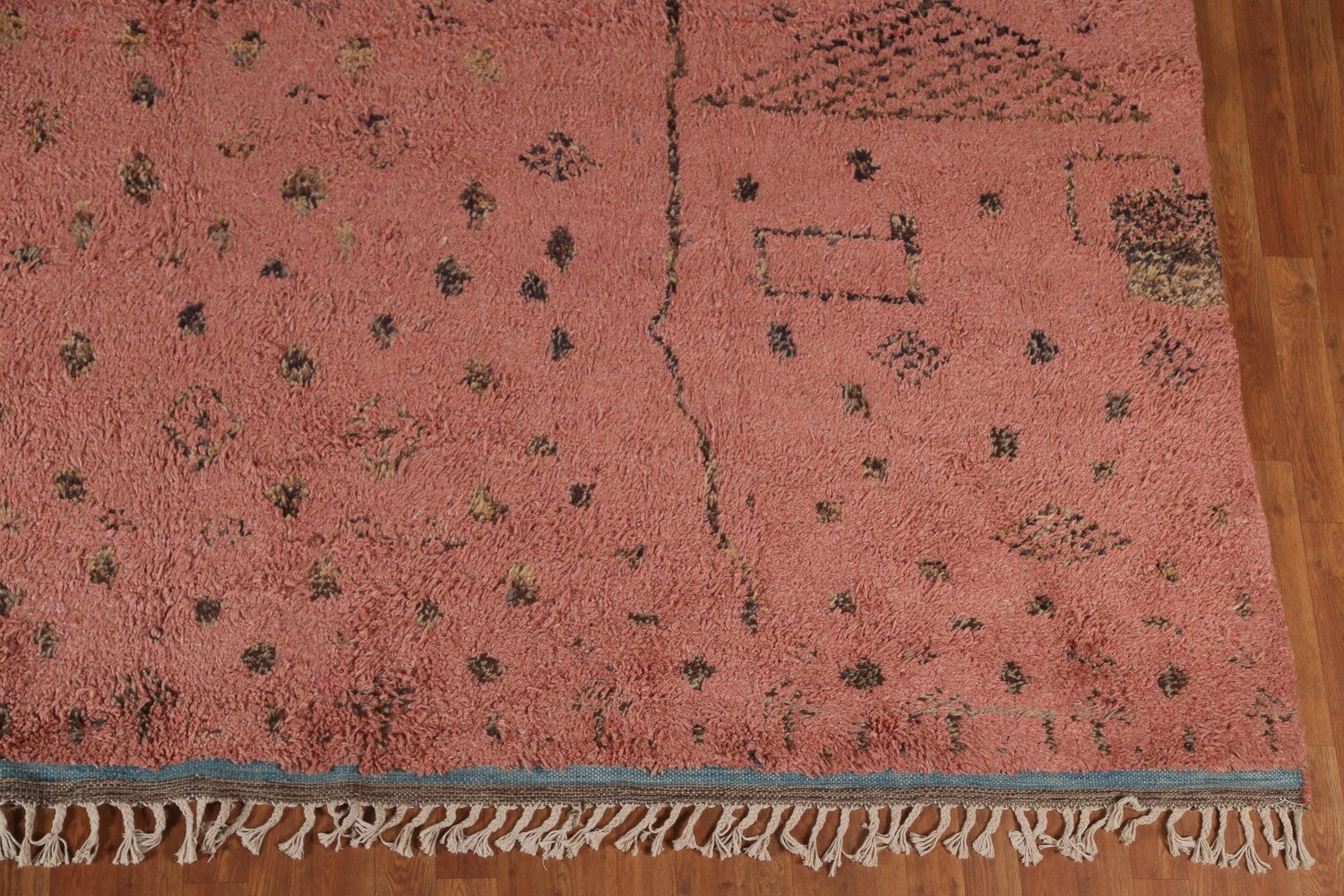 A Beautiful Genuine Pakistan Moroccan rug is Hand Knotted by skillful weavers in Pakistan with 100% Wool Material. This rug is in New, First Quality condition. dimensions are 19' 5'' X 11' 4'' in foot and 592 X 345 in centimeter. the primary color is Coral.