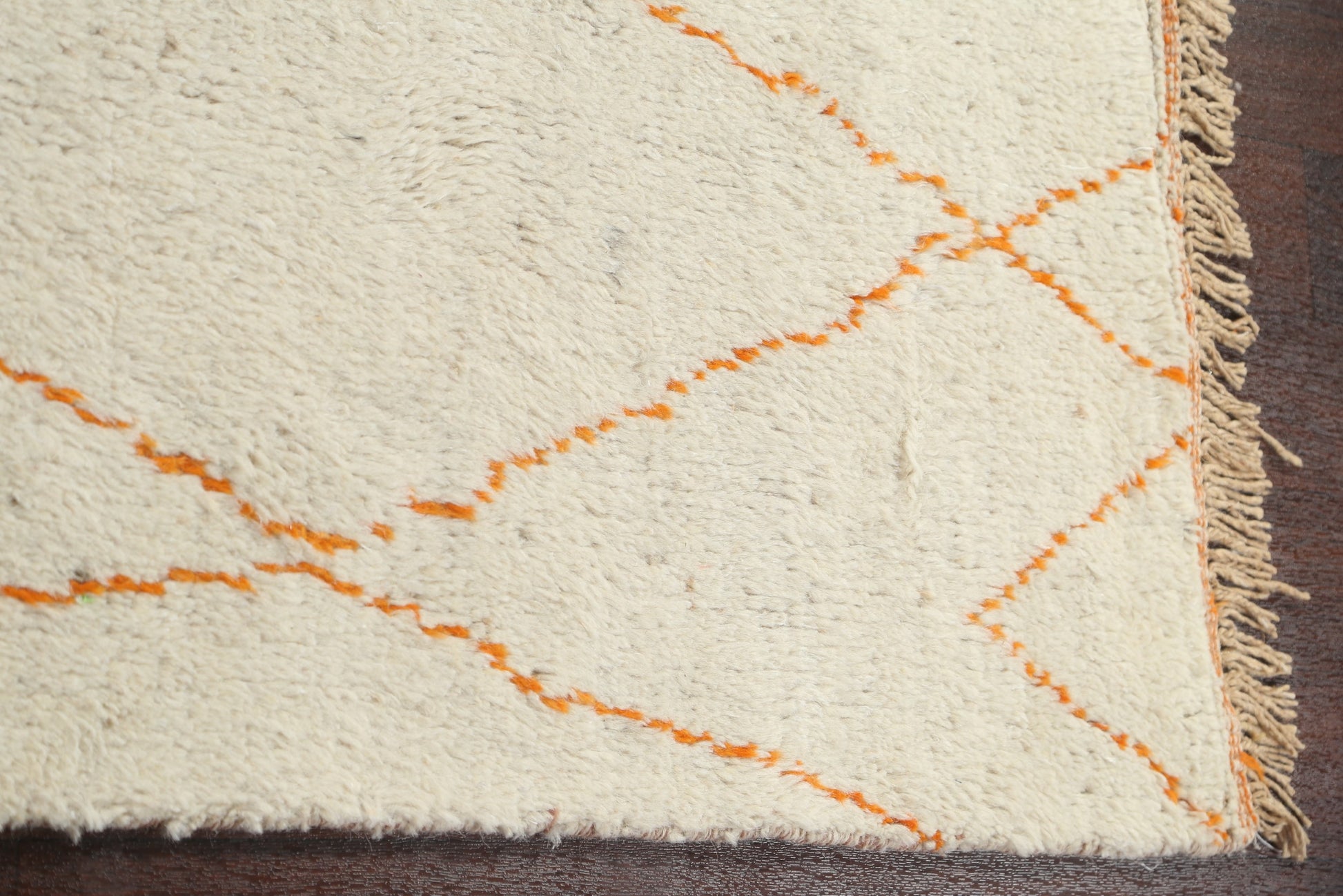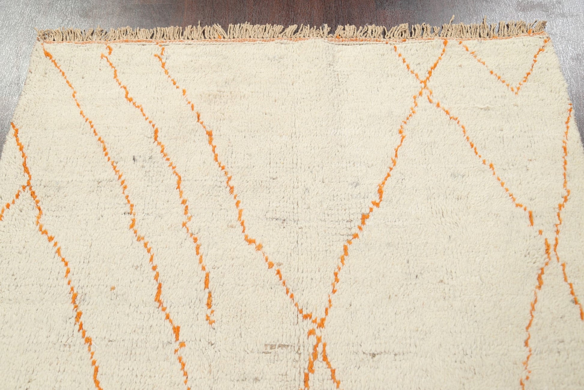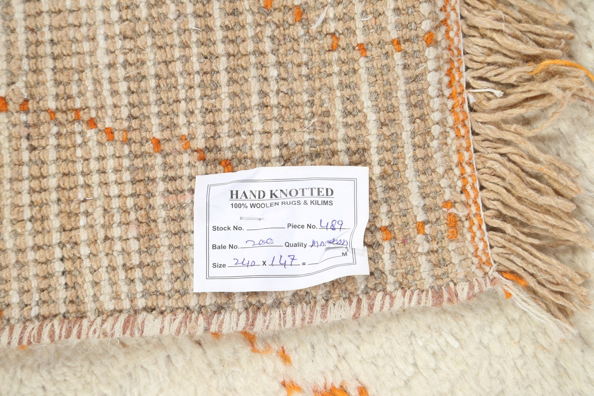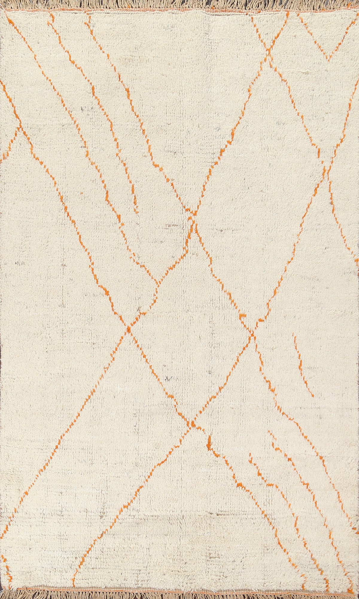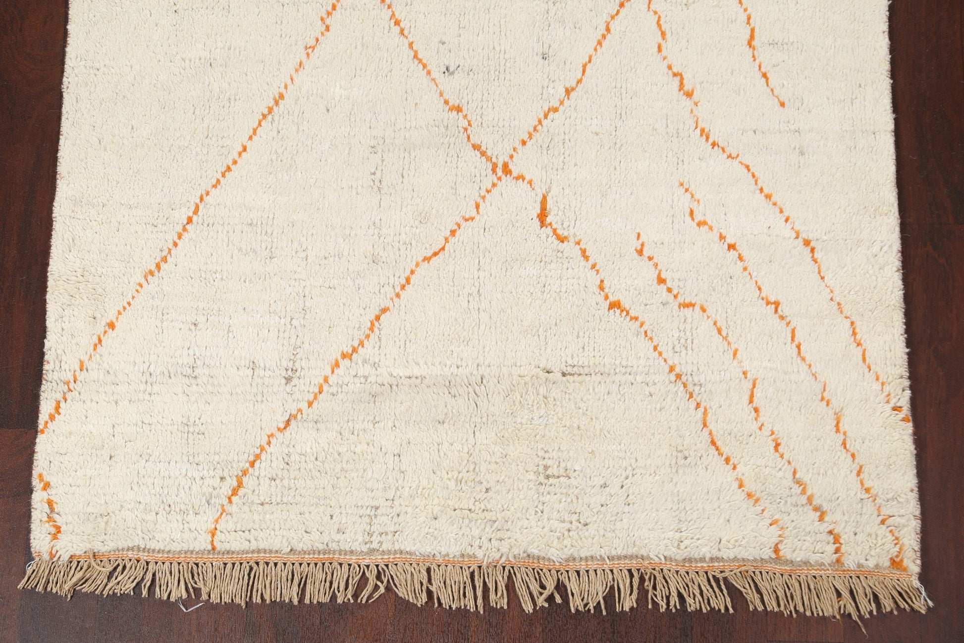 A Beautiful Genuine Morocco Moroccan rug is Hand Knotted by skillful weavers in Morocco with 100% Wool Material. This rug is in New, First Quality condition. dimensions are 8' 0'' X 4' 11'' in foot and 244 X 150 in centimeter. the primary color is Beige & Ivories.